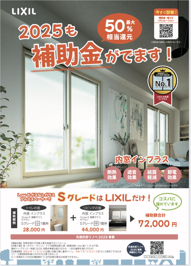 【リフォーム補助金】先進的窓リノベ2025事業ご紹介