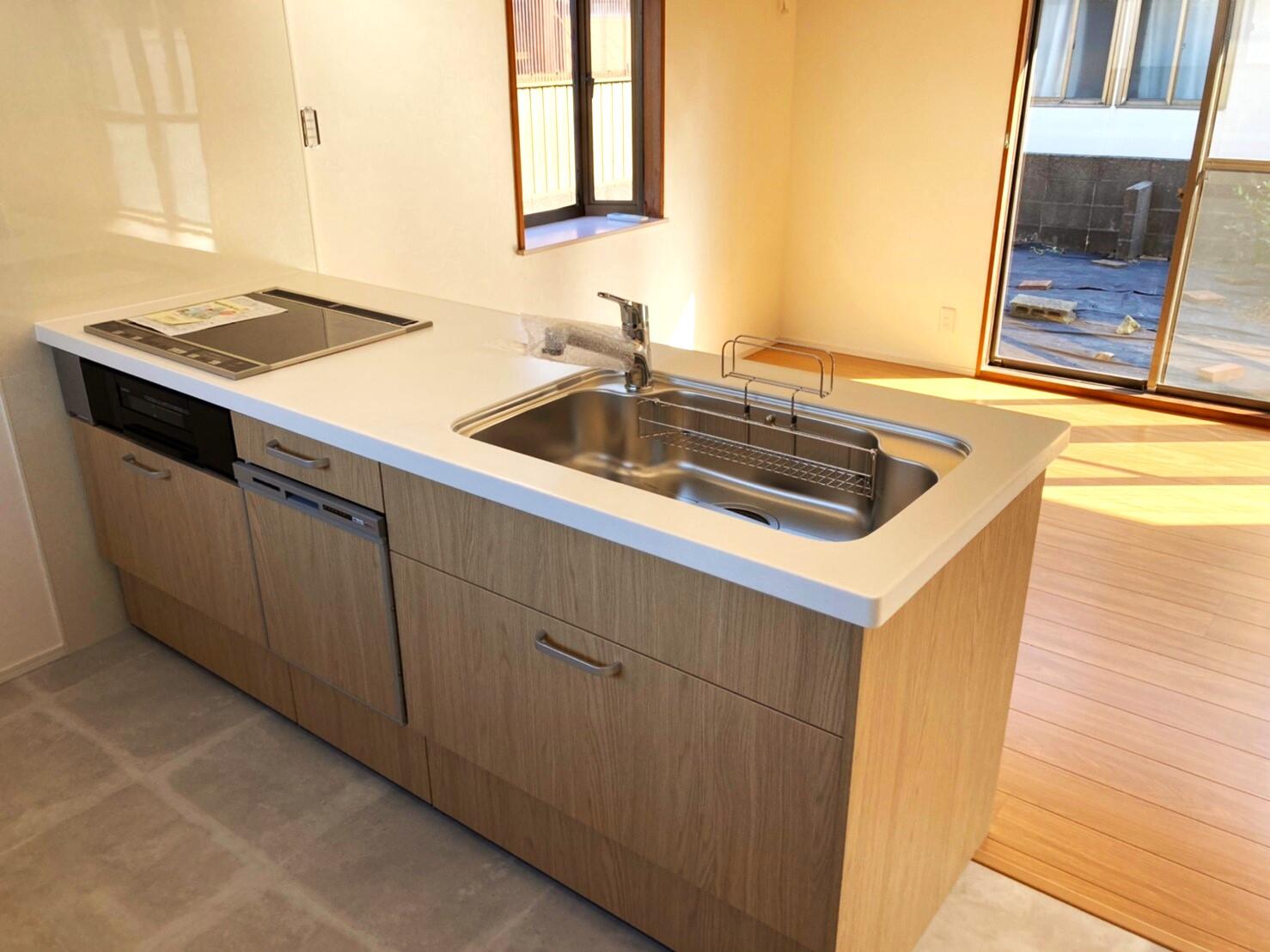 Y様邸では、キッチンを従来の壁付けから対面キッチンにリフォームしました。これにより、家族とコミュニケーションを取りながら料理ができる開放的で明るい空間が実現しました。対面キッチンならではの広々としたカウンターを活かし、料理や食事の準備がしやすく、リビングやダイニングとの一体感も生まれました。