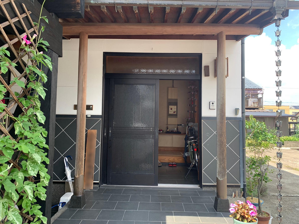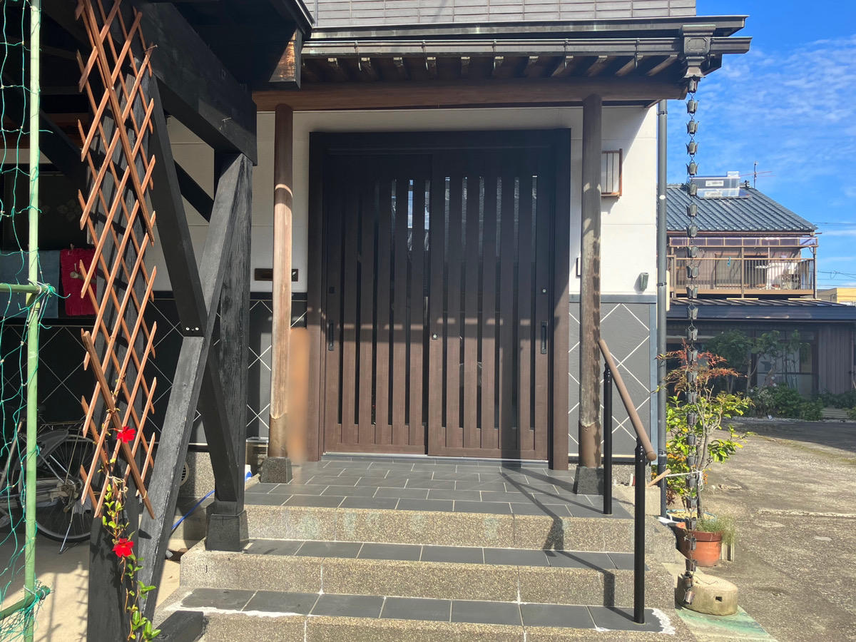 この度、N様邸では玄関の取替えと補助手すりの取付けを行いました。玄関引き戸には、リシェントをご選択いただき、デザイン性と機能性の両立を実現しました。