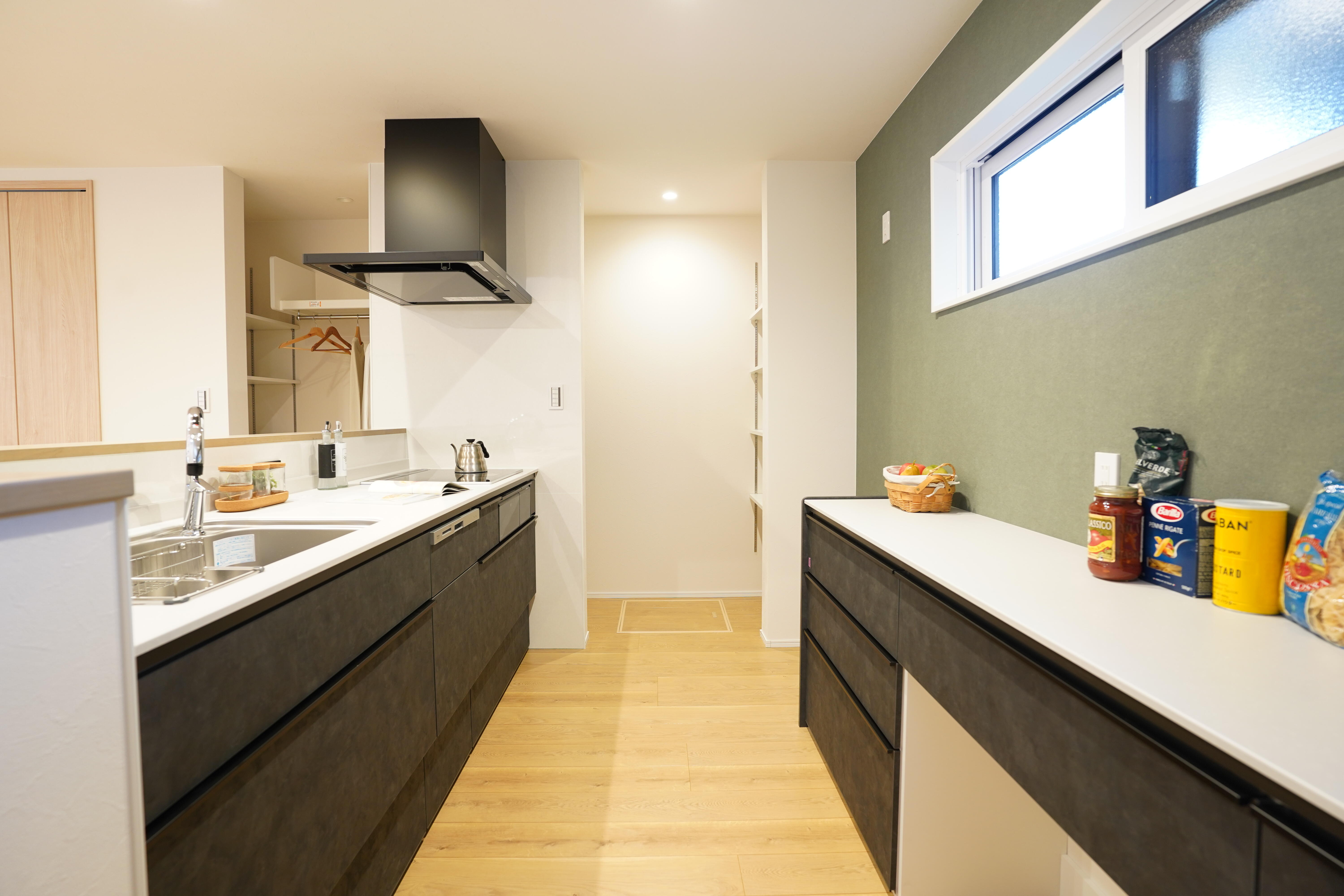 調理器具やストック品もすっきり収まり、動線もスムーズに。