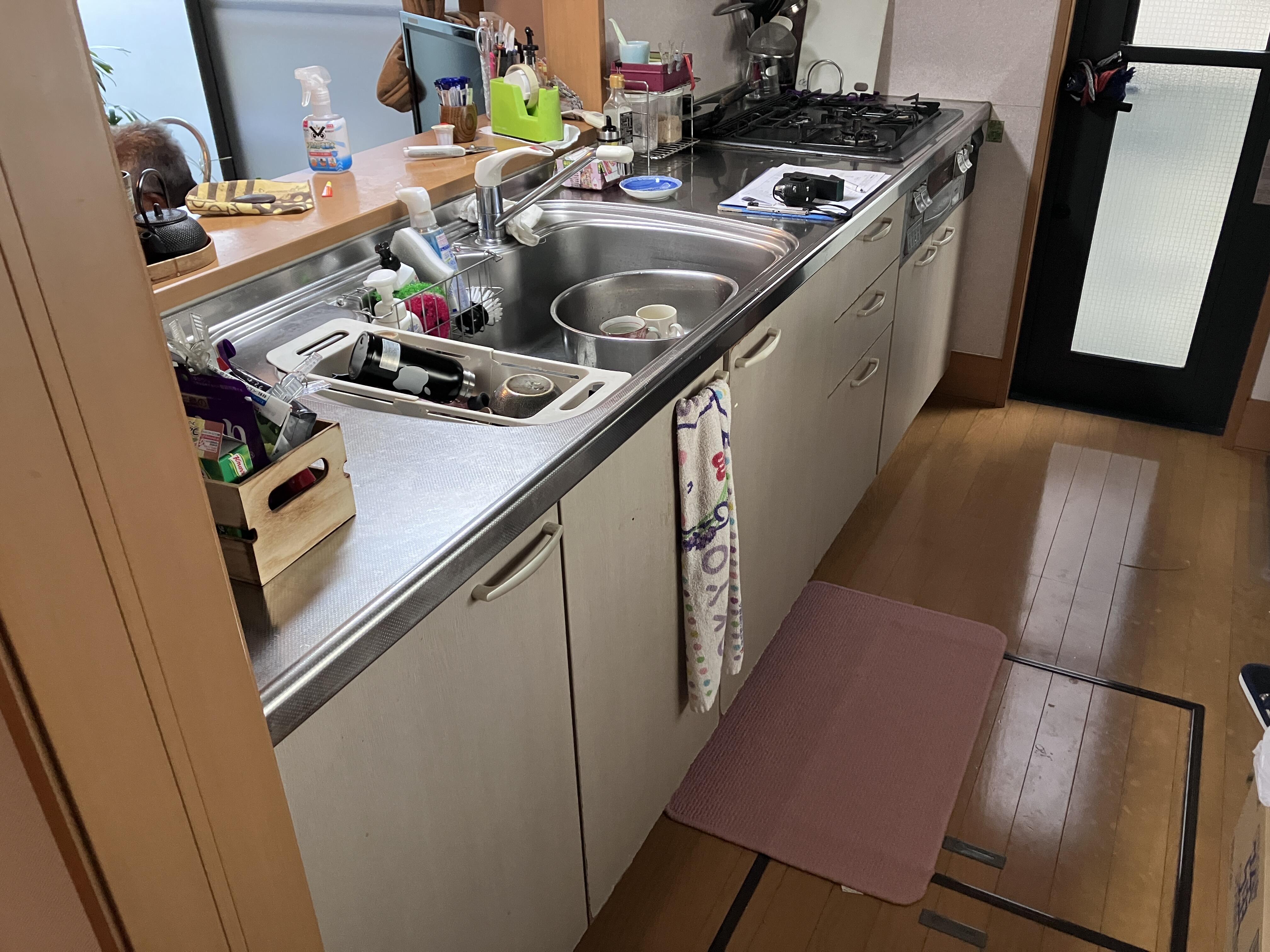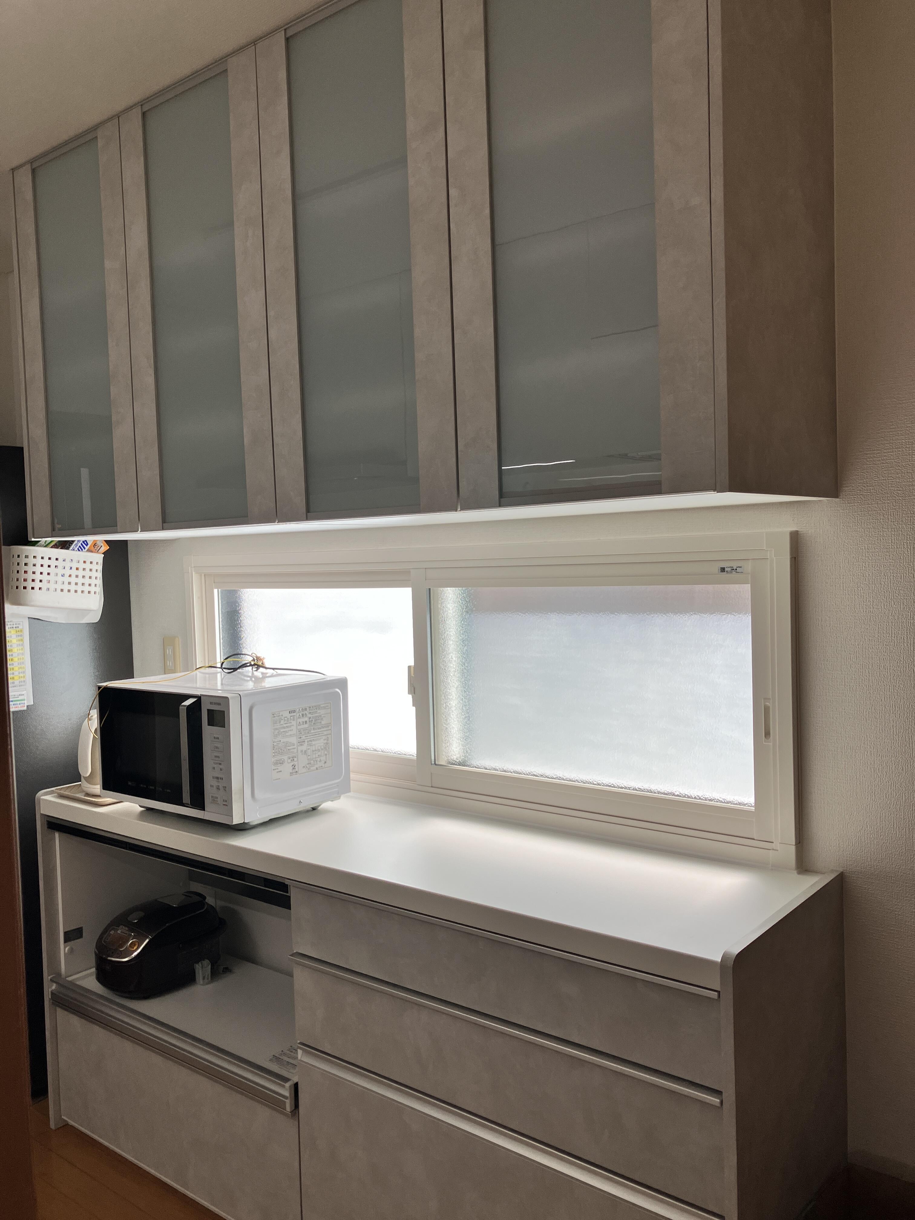 また、キッチン背面にはカップボードを設置し、収納力と作業効率をさらに向上。