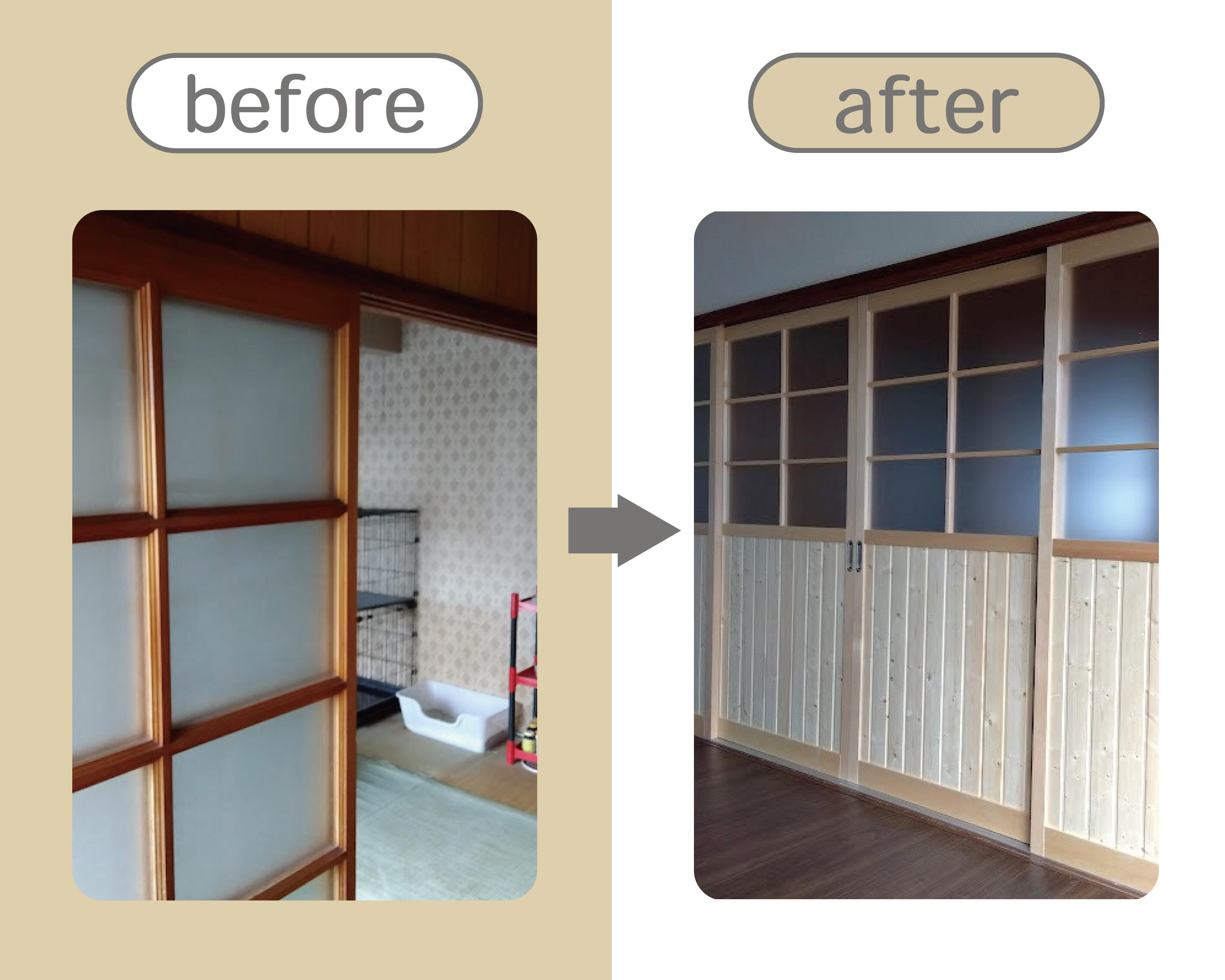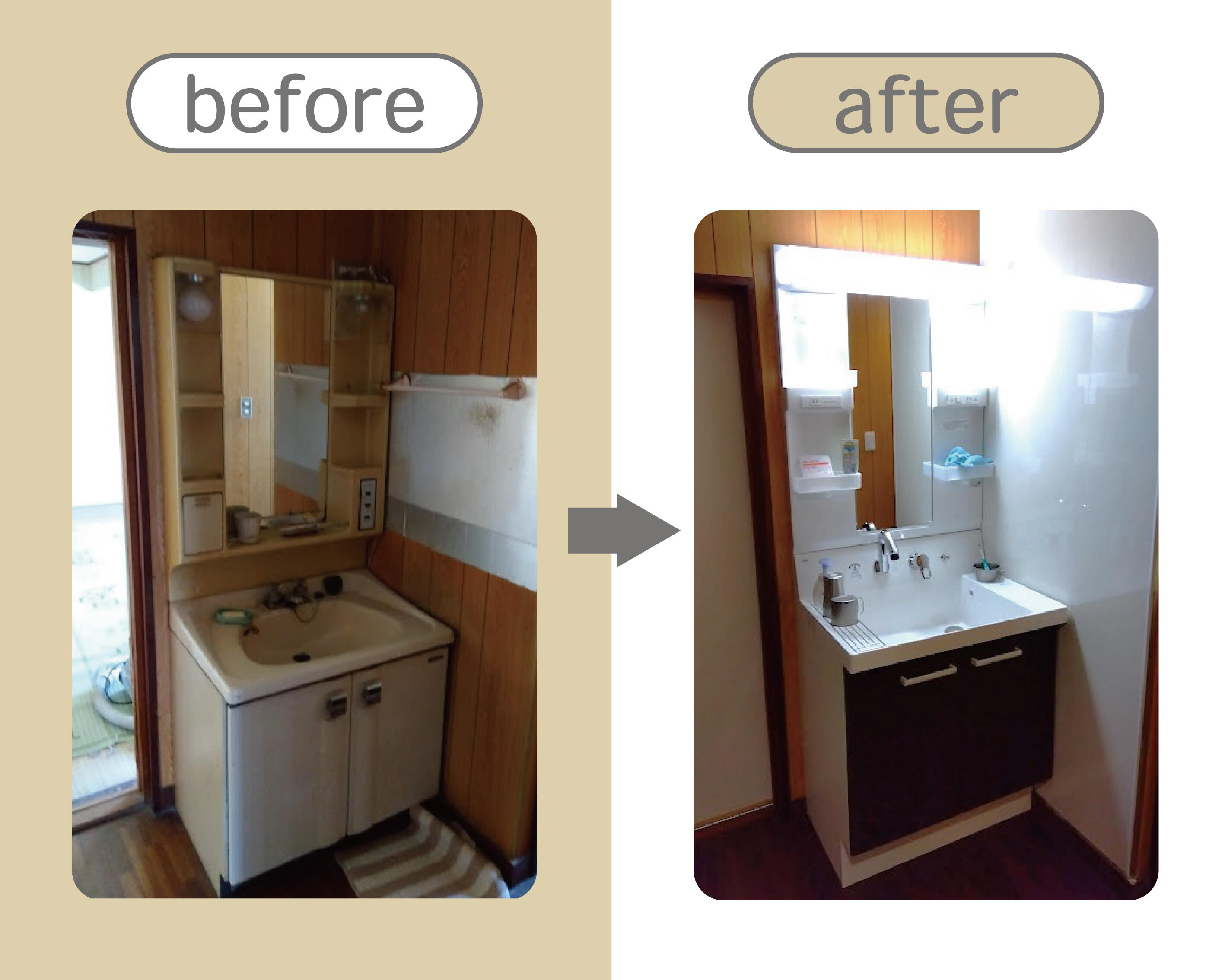 水廻りのリフォームと建具取替、クロス貼替で明るく快適にすごしたい。