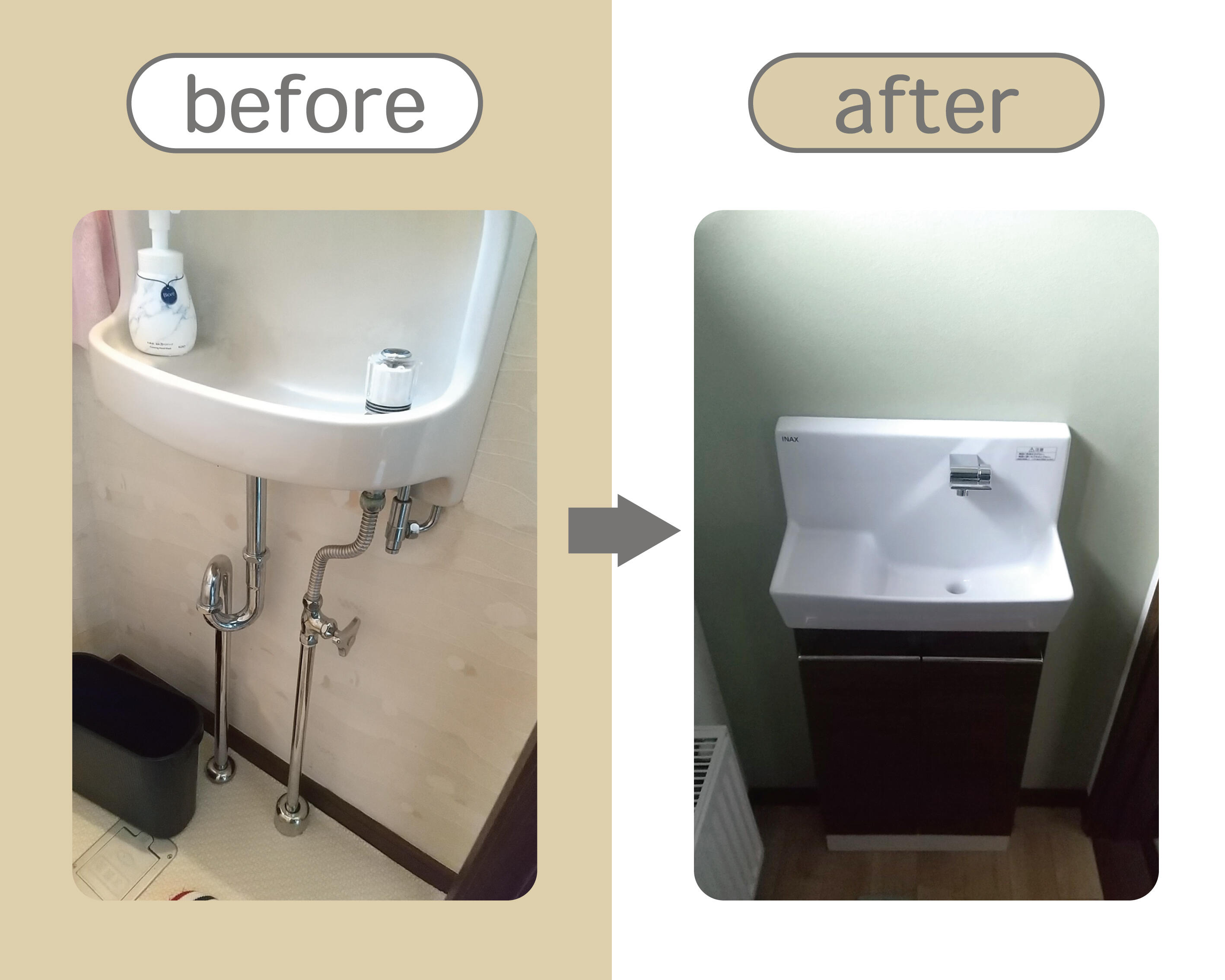 ■リフォームポイント パネルヒーターや手洗いも一緒にお取替えしてリフレッシュしました。