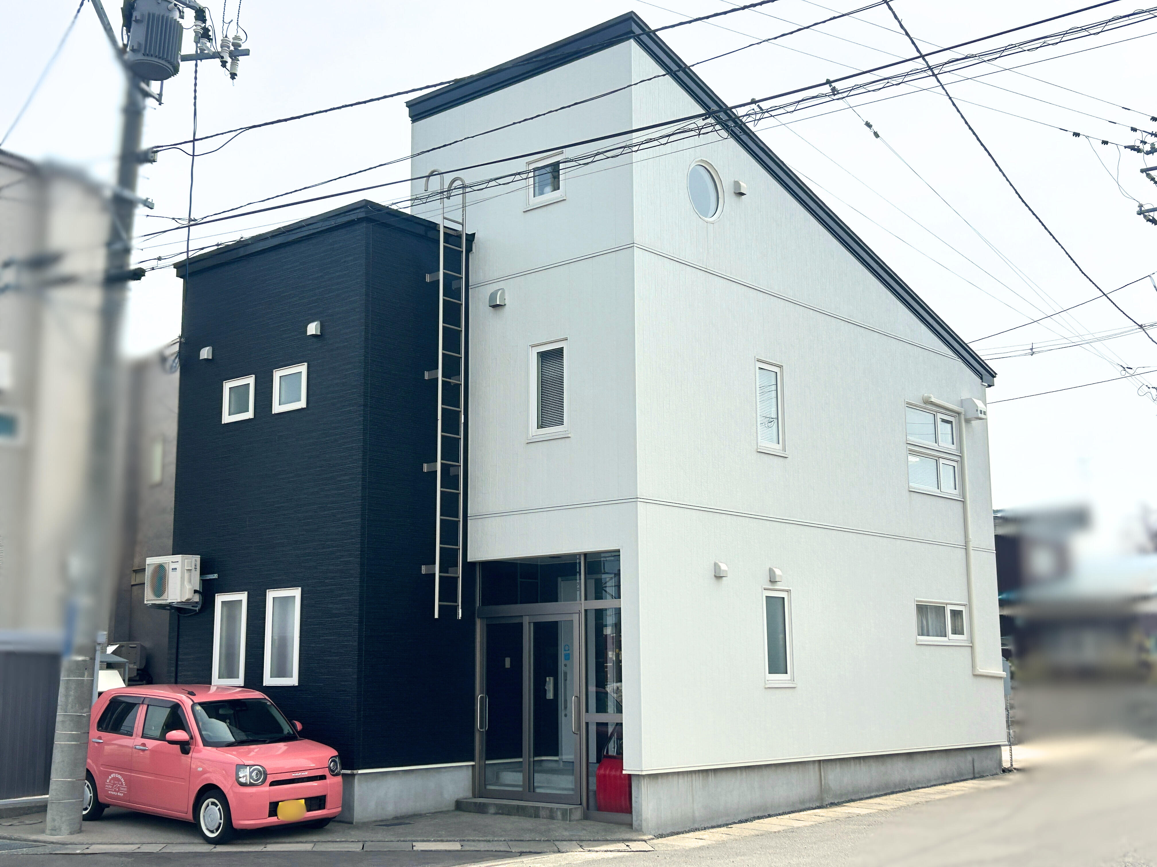 一部のサッシまわりから雨漏れがあったため、まずは原因をしっかり確認し、補修・防水処理を行ったうえでDANサイディングを施工しました。 外壁は白黒のツートンデザイン。 もともとは白と黒の配置が逆でしたが、お打ち合わせの中で“ちょっと変えてみようか”という話になり、あえて白黒を入れ替えた配色に変更しました。