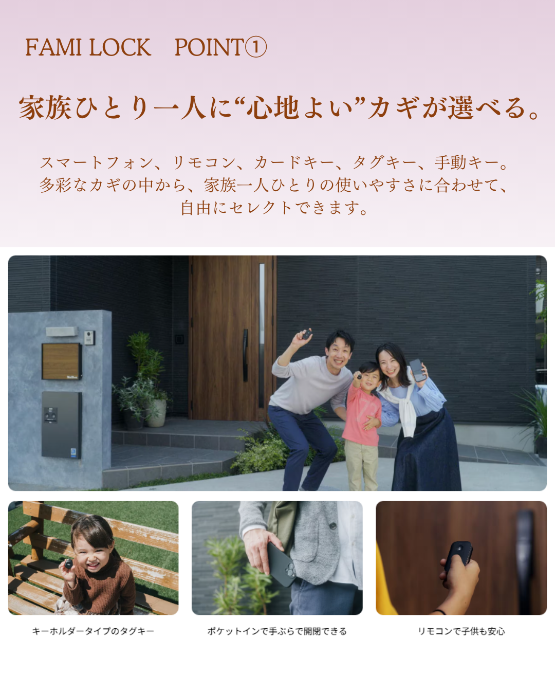 お子様だけでなく、荷物で両手がふさがっている方やカバンの中から鍵を見つけ出せなくて玄関でカバンをごそごそしている方(私)にお勧めです!!