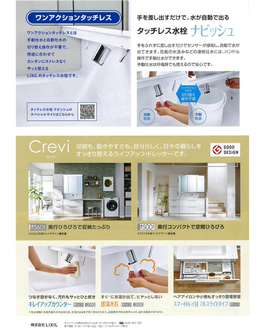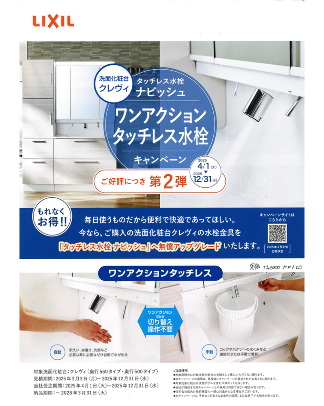 クレヴィの洗面化粧台の水栓を定価30,000のところ¥0でタッチレス水栓へアップグレードいたします!