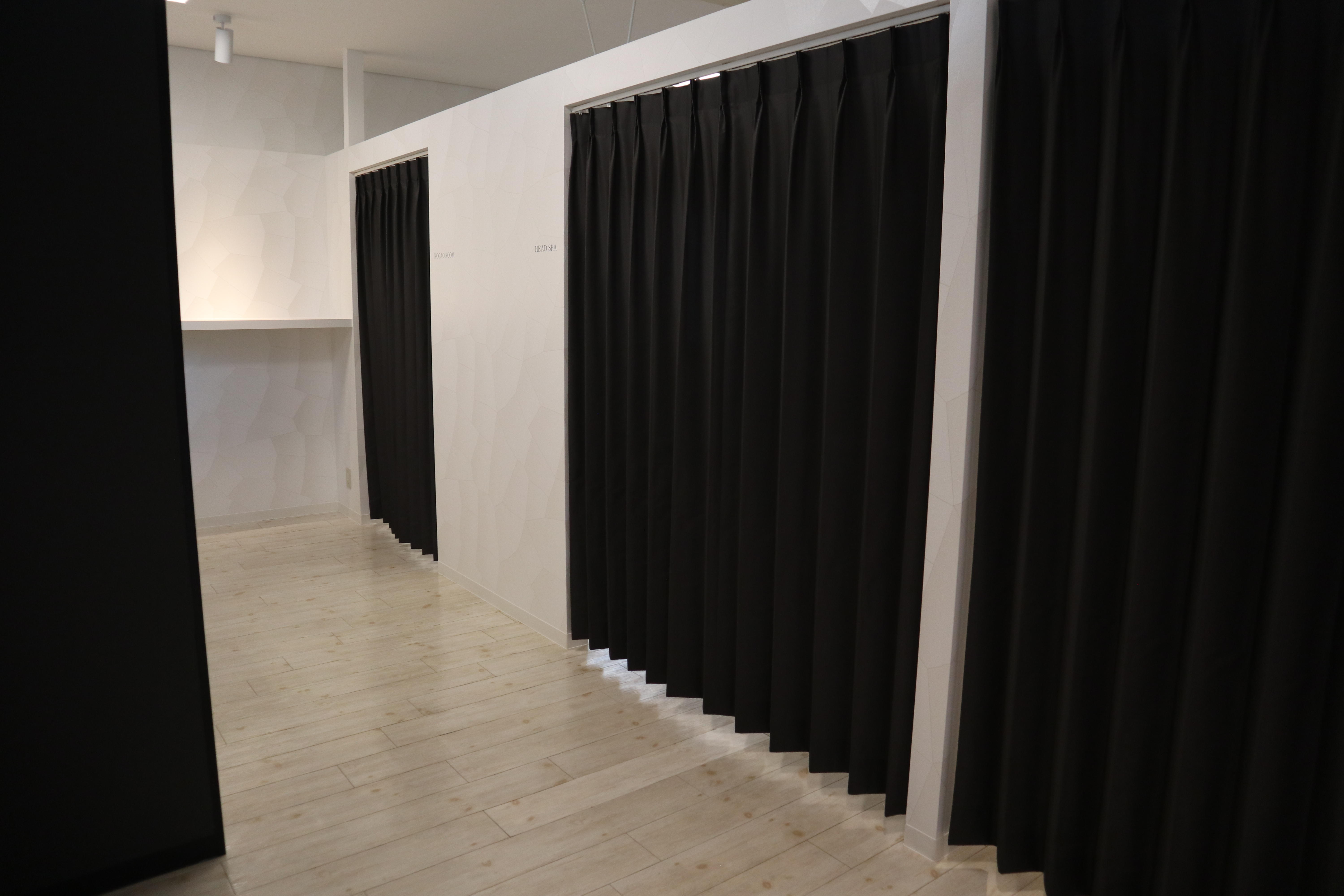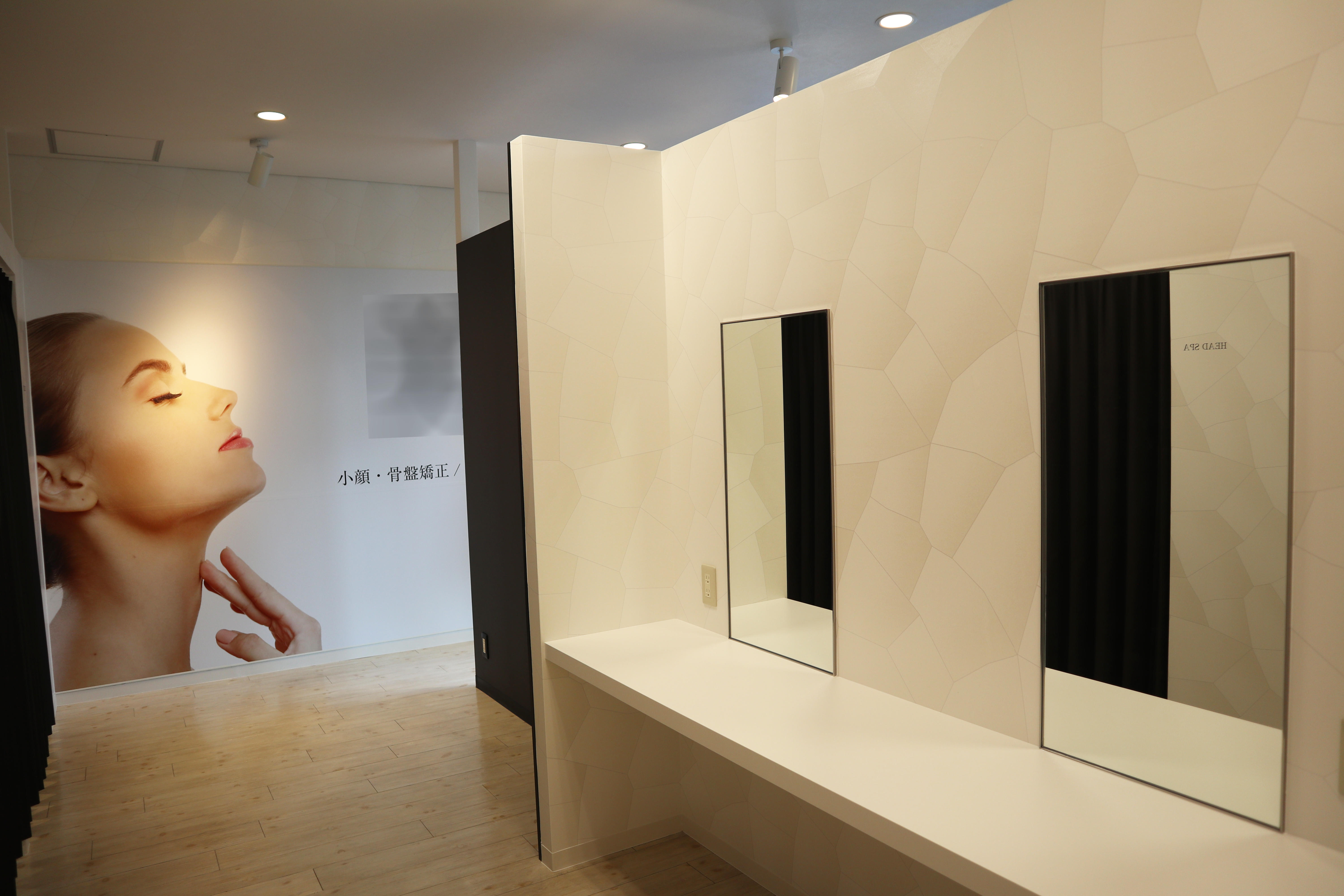 テナントにて新規で立ち上げた美容整骨サロン様の内装をリフォームしました。 お客様がリラックスして施術を受けられるよう、トーンダウンしたカラーリングにしています。 女性をメインターゲットとしているため、目隠しのカーテンやメイクルームを設置するなど細かな配慮を心掛けました。