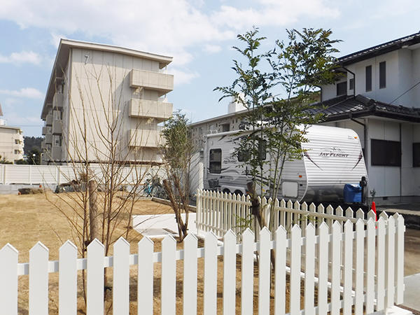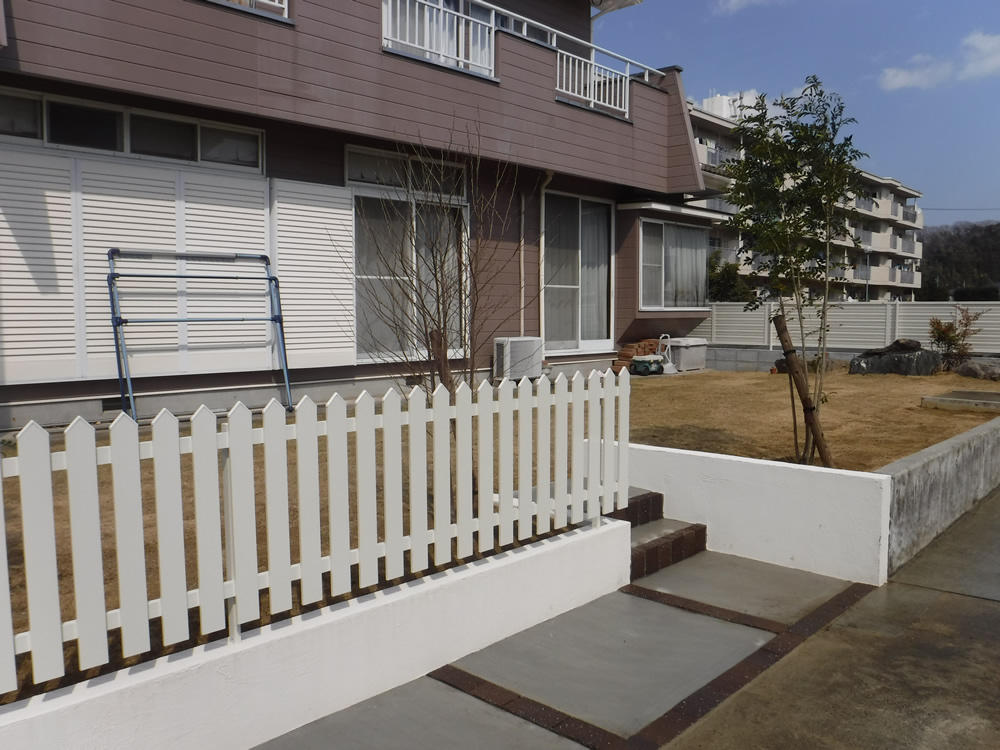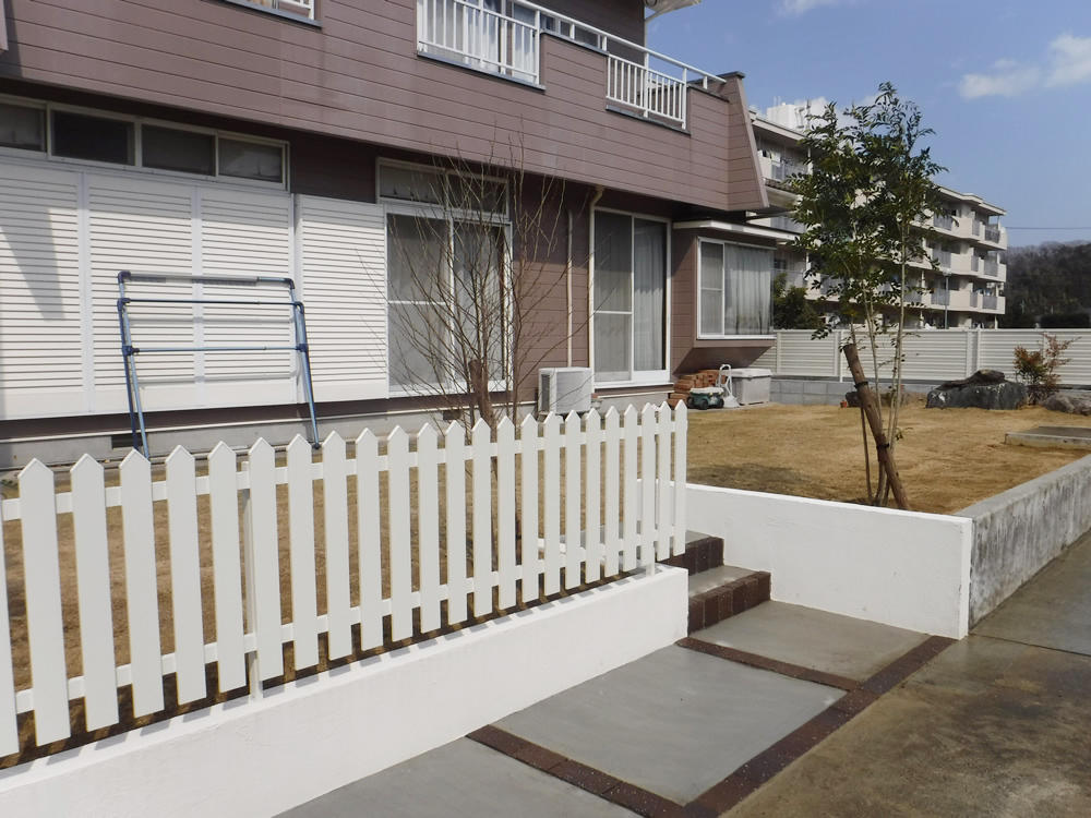 生い茂っていた生垣を思い切って撤去し、新たに白いフェンスを設置しました。 見通しが良くなり、自慢のキャンピングカーが映えるカジュアルスタイルに変わりました!