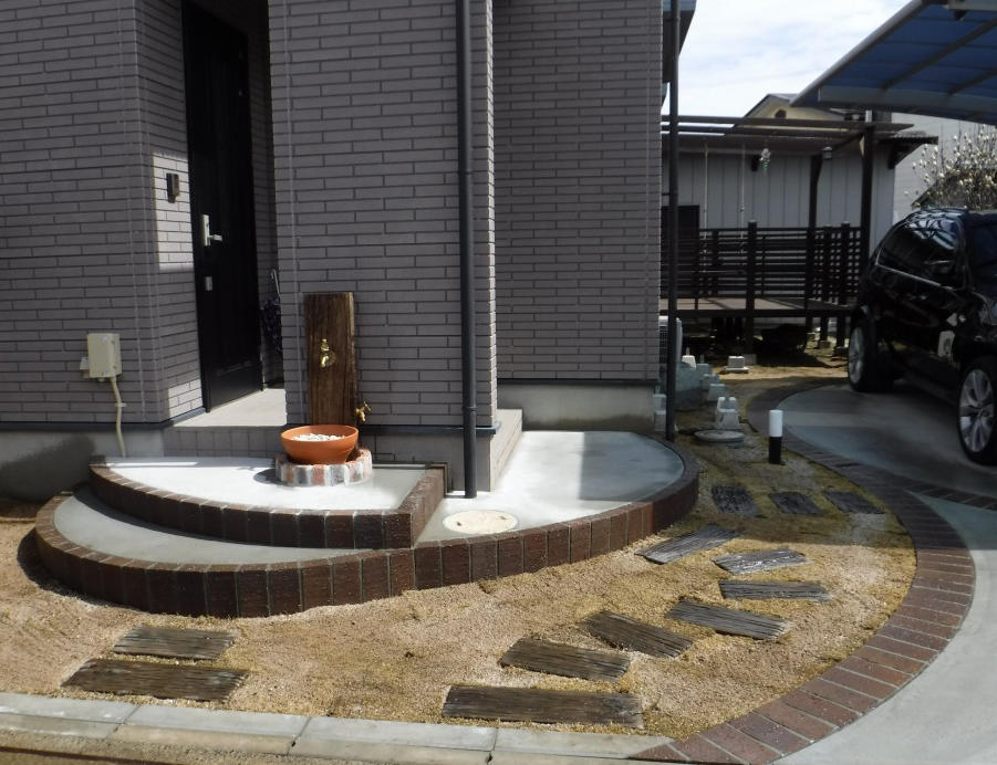 駐車場からアプローチまでのプチリフォームで心機一転! 家族の笑顔が水面の波紋のように広がるサークルガーデンに。
