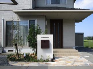 雄大な自然に包まれる開放的な立地でありながら、無機質で殺風景だったお庭… 周辺環境に馴染むアイテムとして、植栽や白い塗壁の門壁を加えました。 さらにカーポートやサンルームを設置したことで機能的にも使いやすく変わりました。