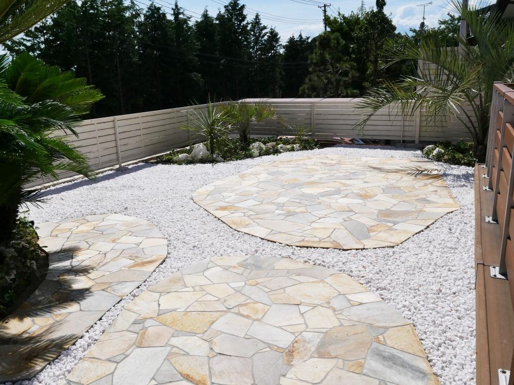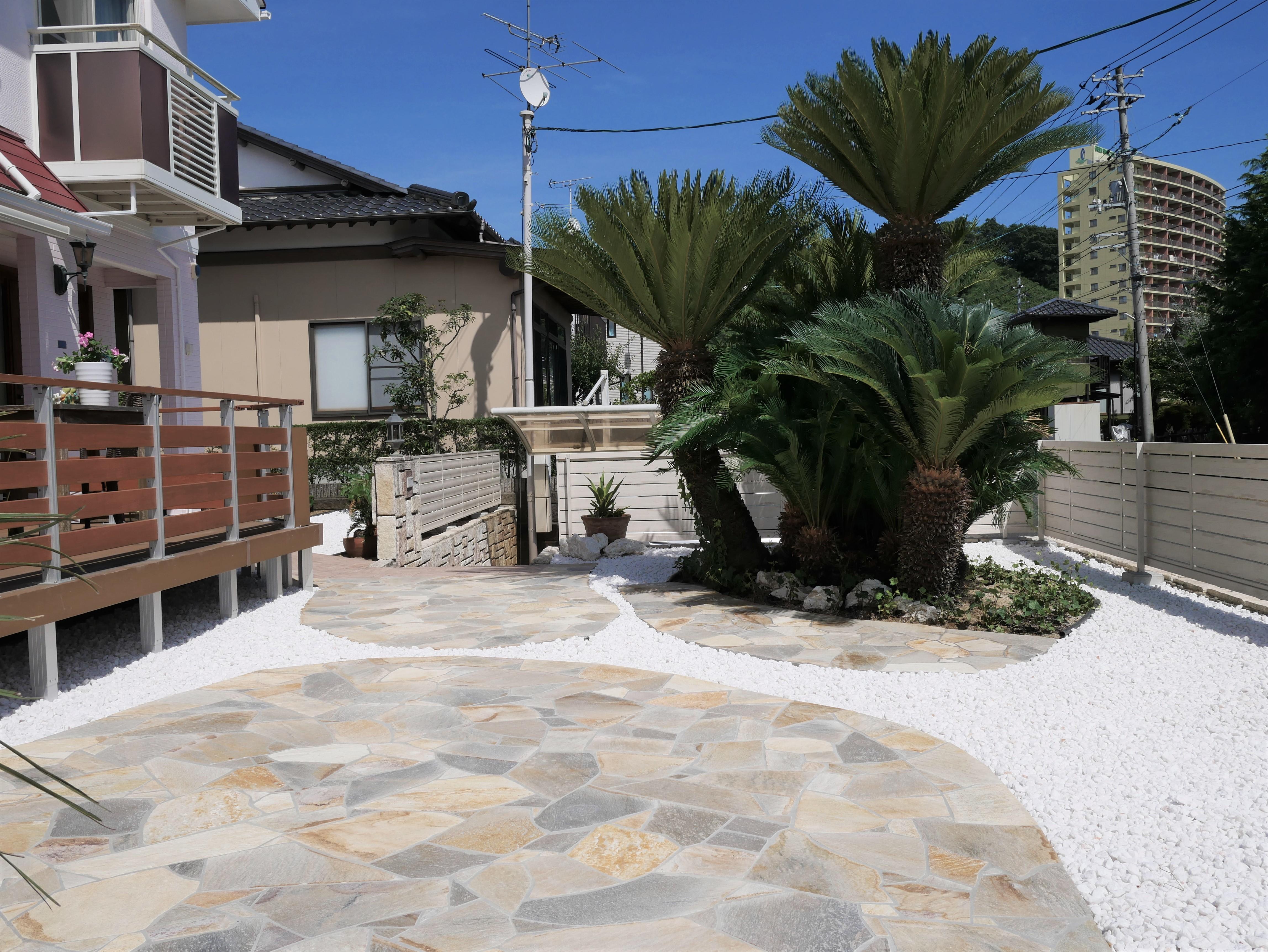 広々とした空間に緑が映えるリゾートガーデンにイメージチェンジしました。 生垣だった部分も白いフェンスに変え、全体的にすっきりとした外観に仕上がりました。