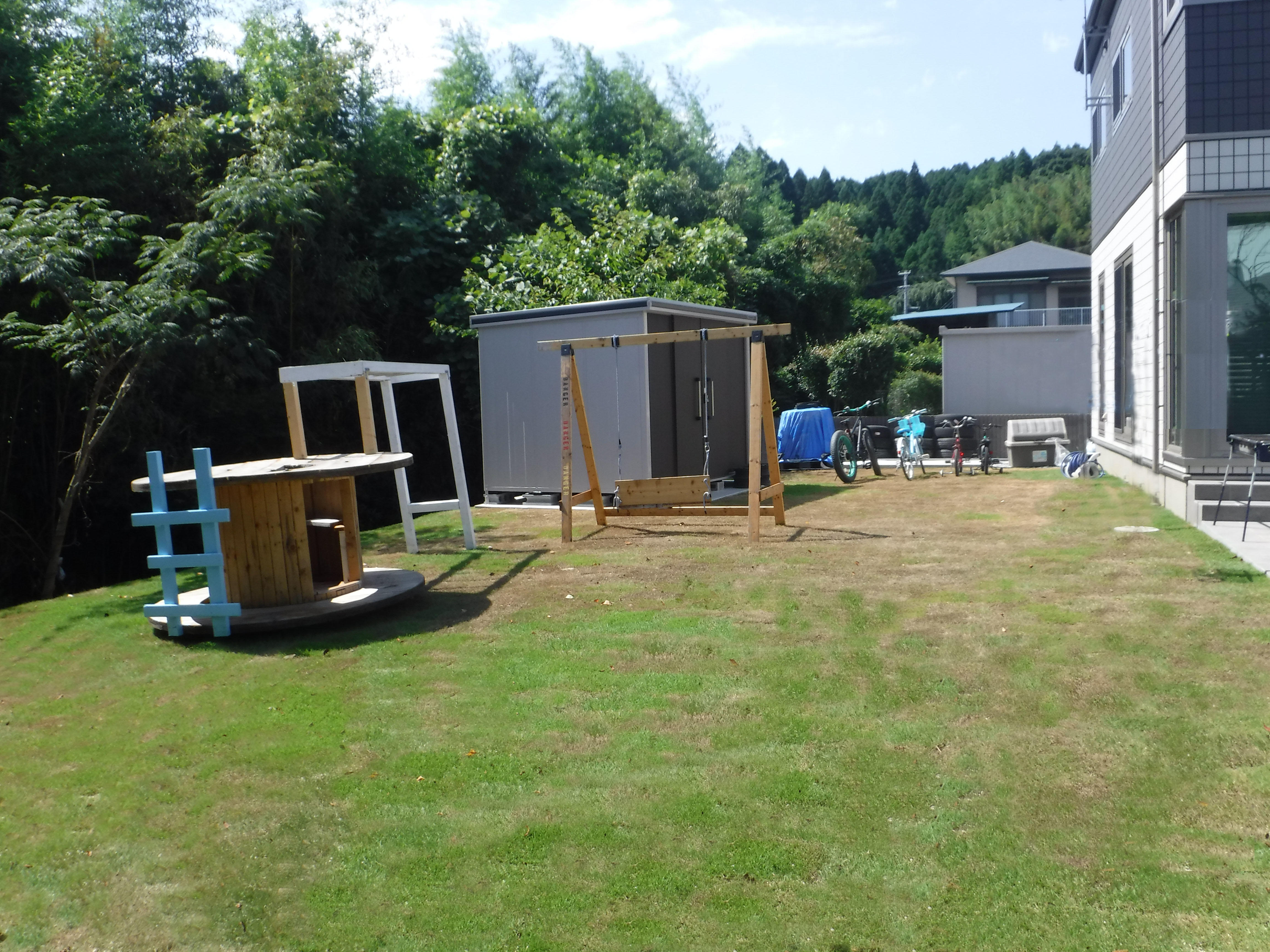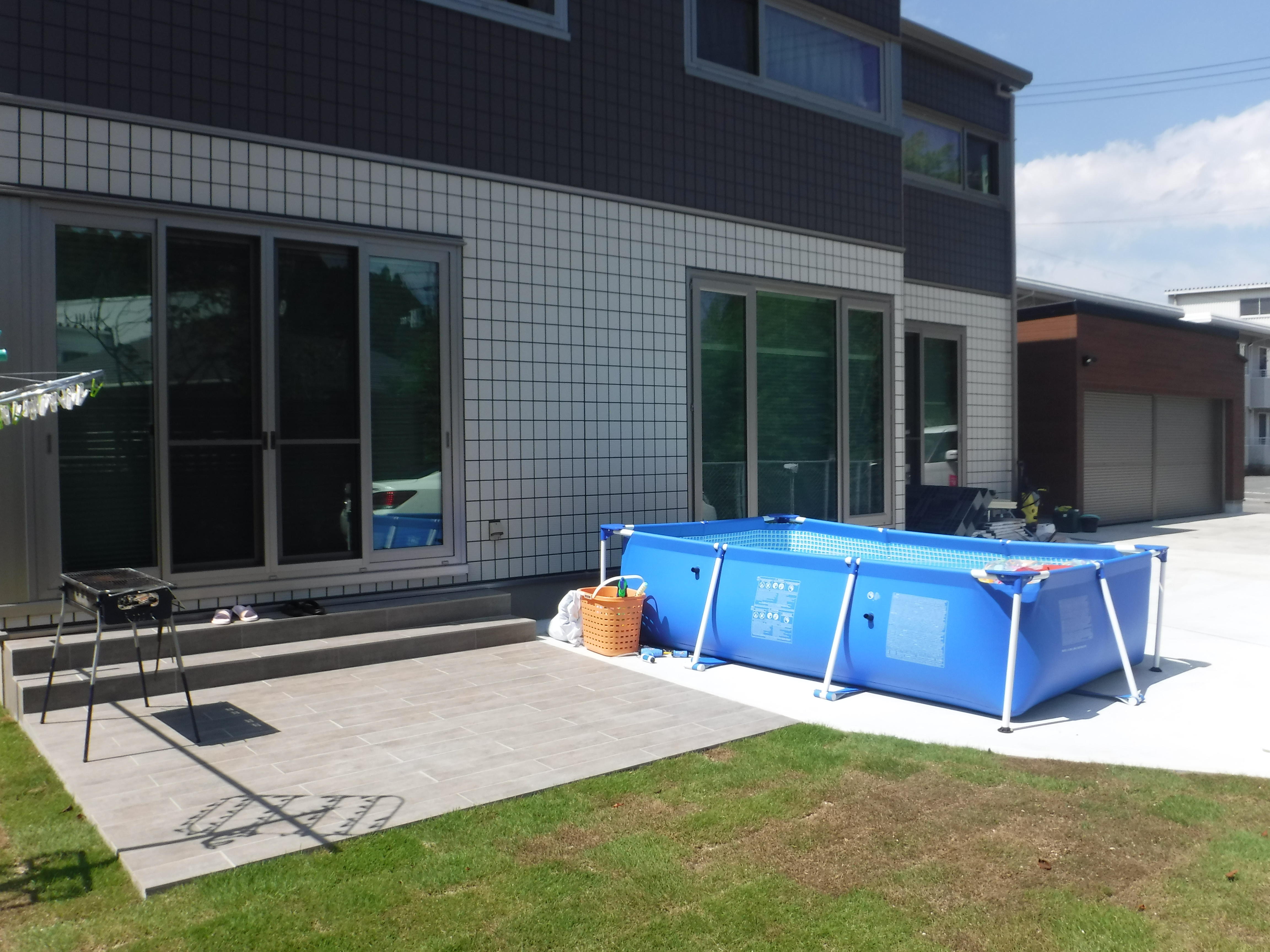 ココスヤシと青々とした芝生で洗練された流行のスタイルに