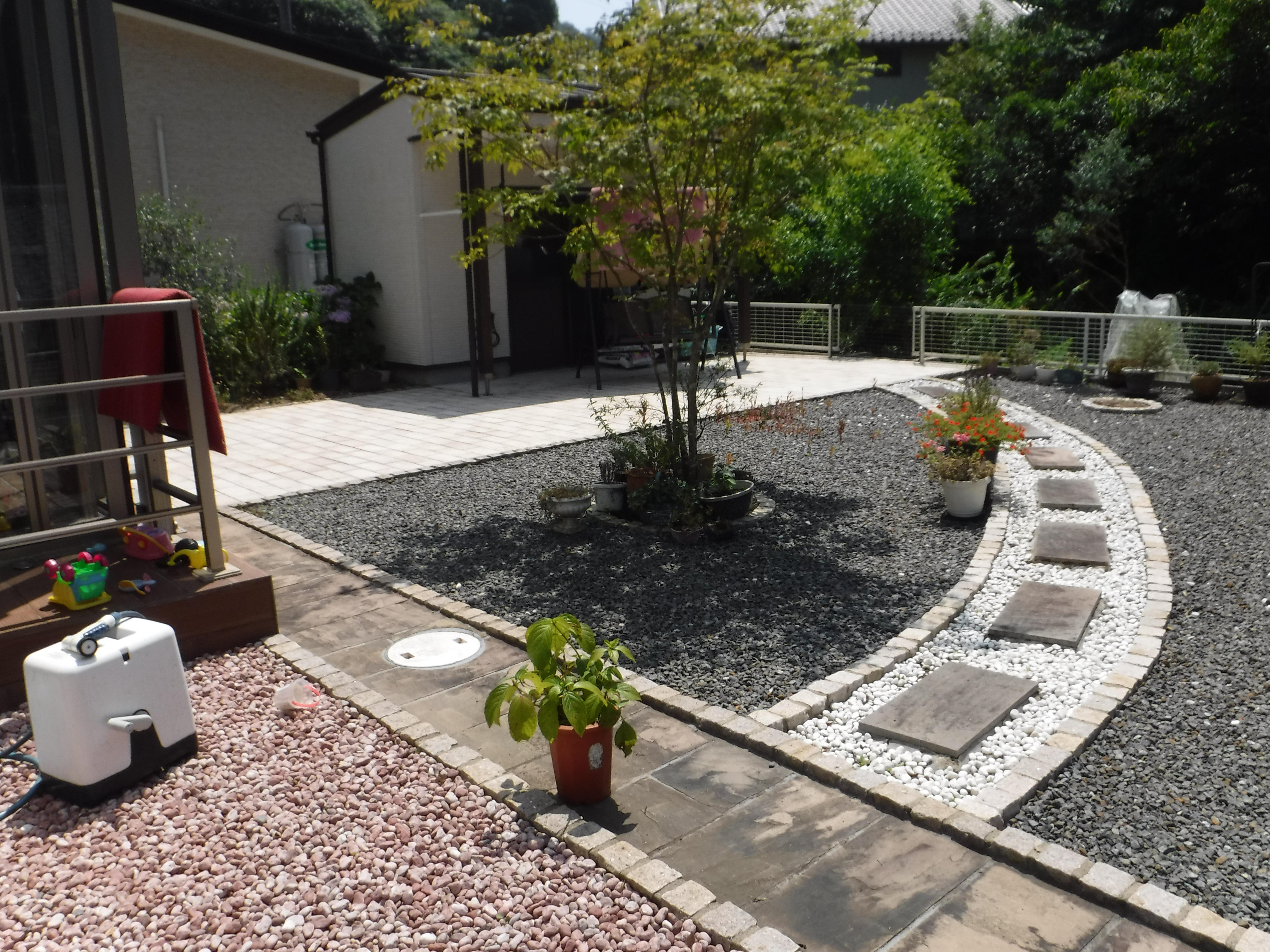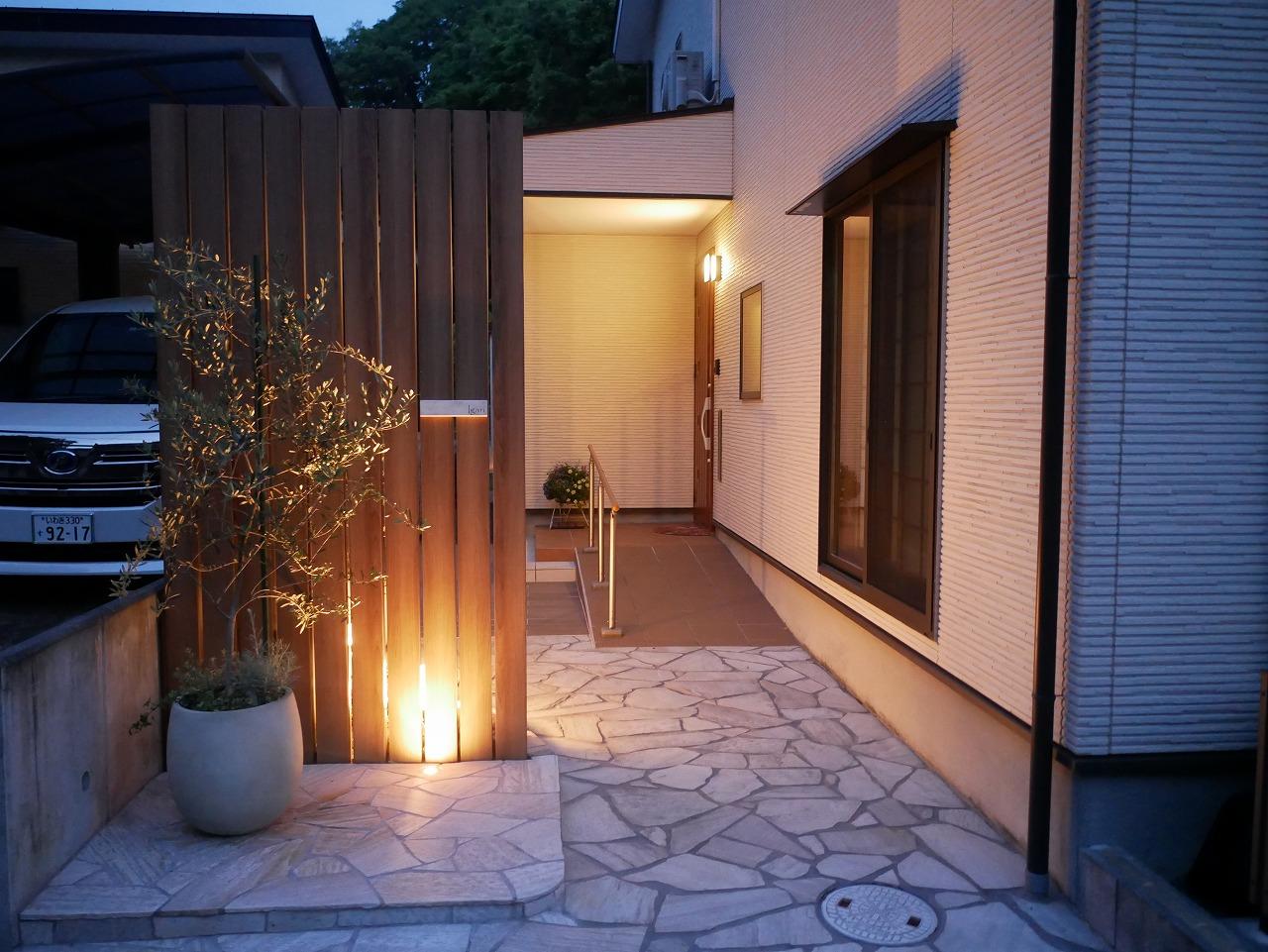 既存のアイテムに合わせてお庭とアプローチをリフォーム。 お庭は芝生に、アプローチには手すりと植物をプラスしました。