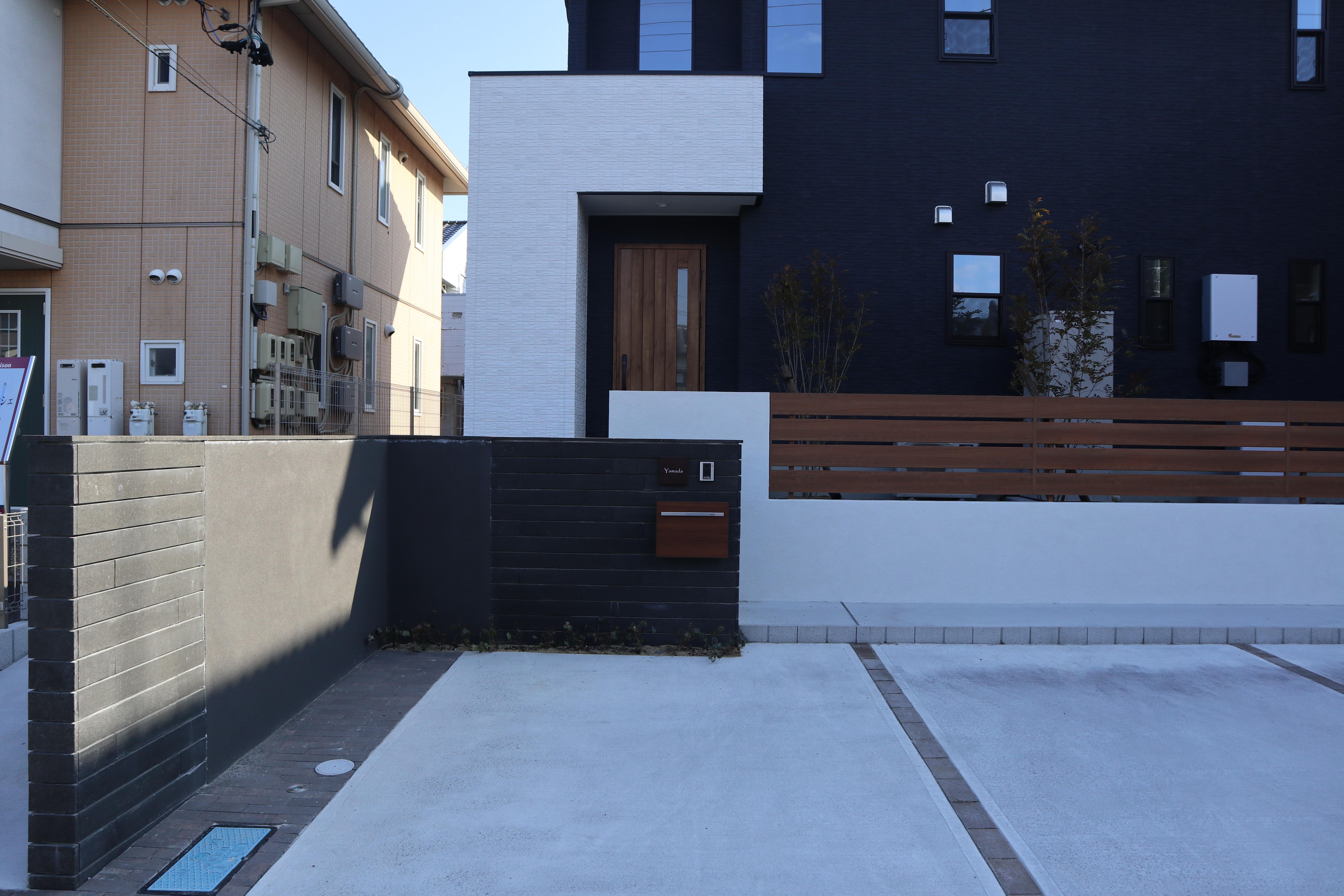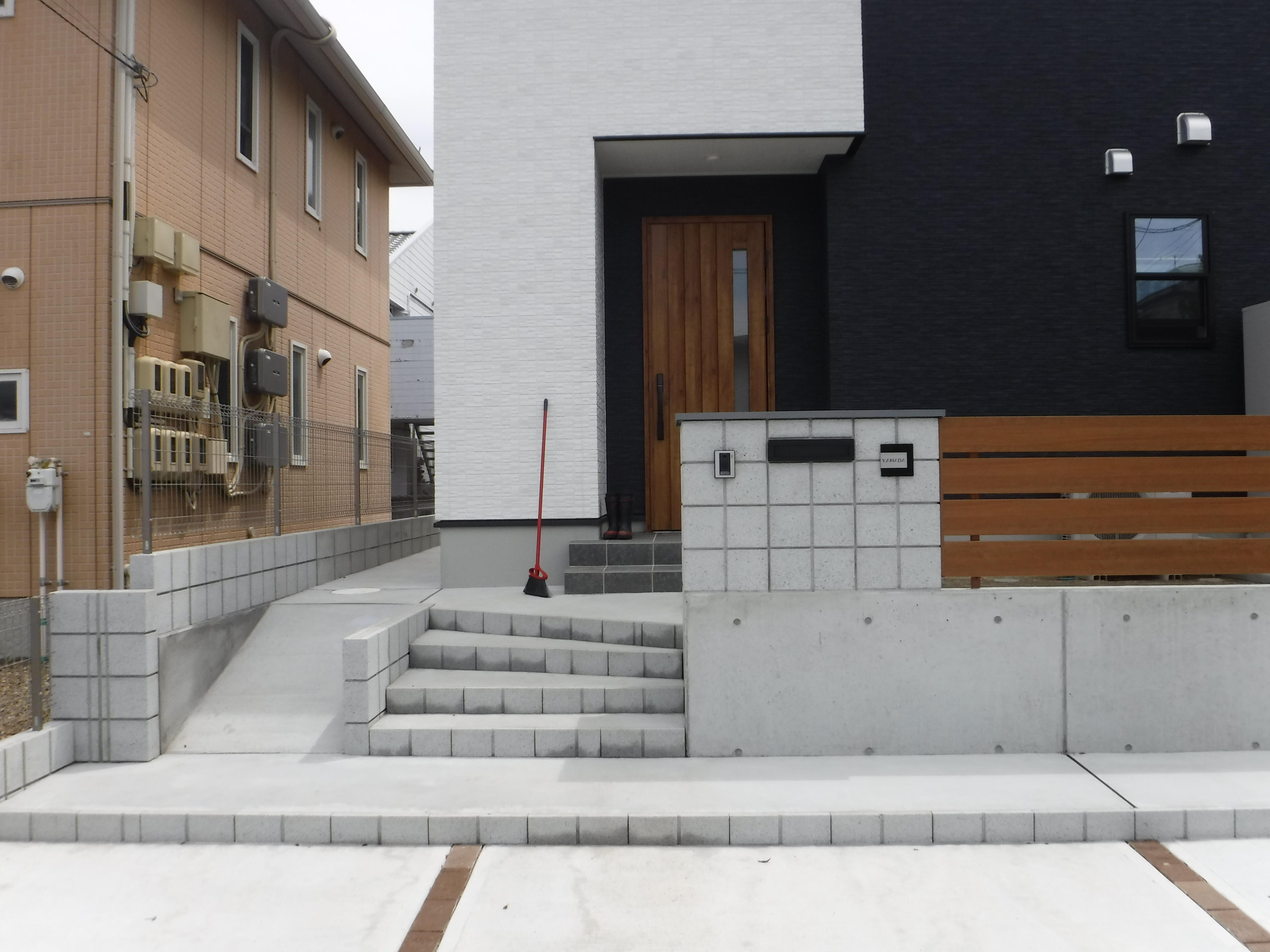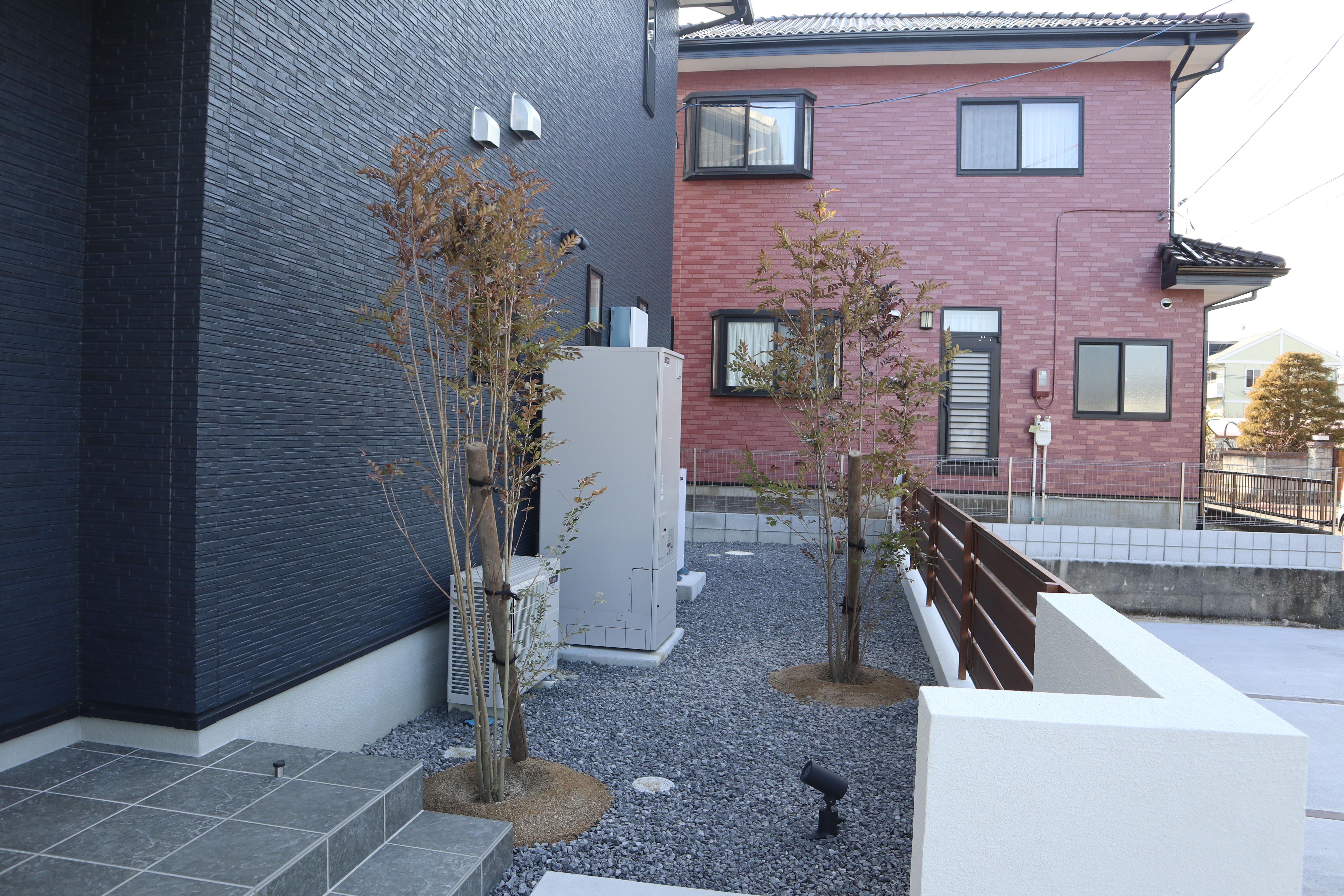 既存のアイテムを活かしながら、建物との調和を図ったデザインにしました。 玄関前には植栽を施し、空間に彩りを添えました。
