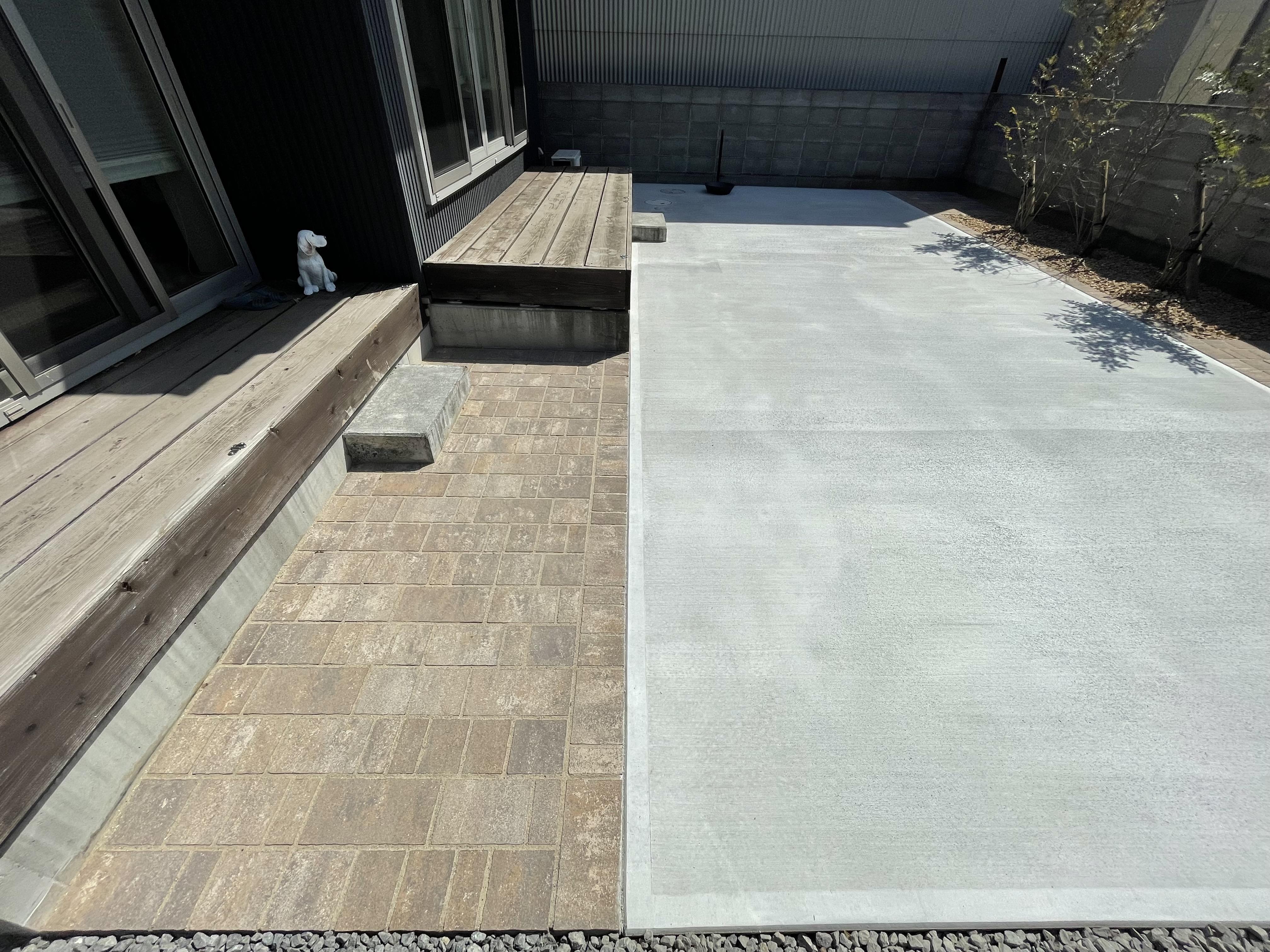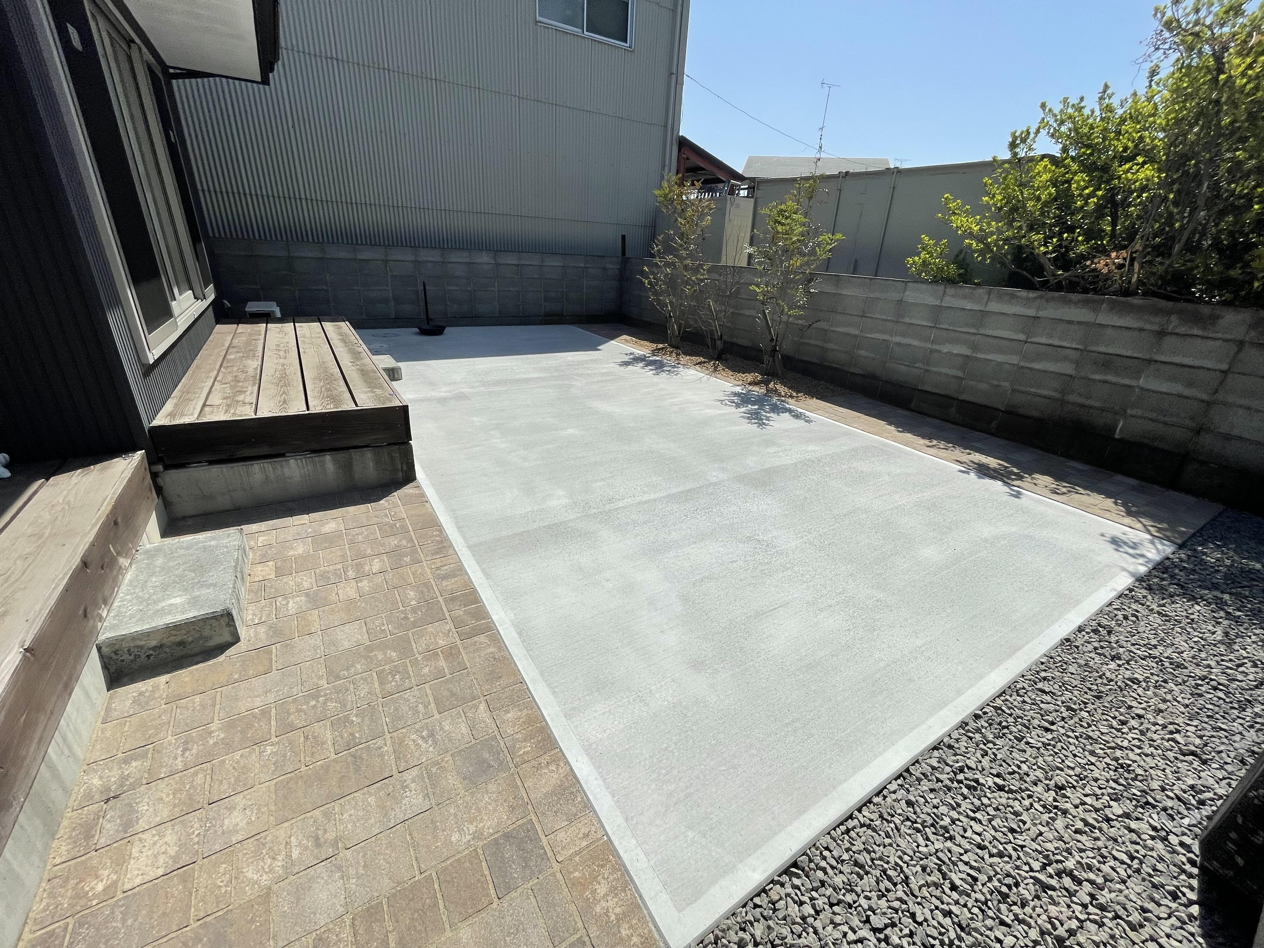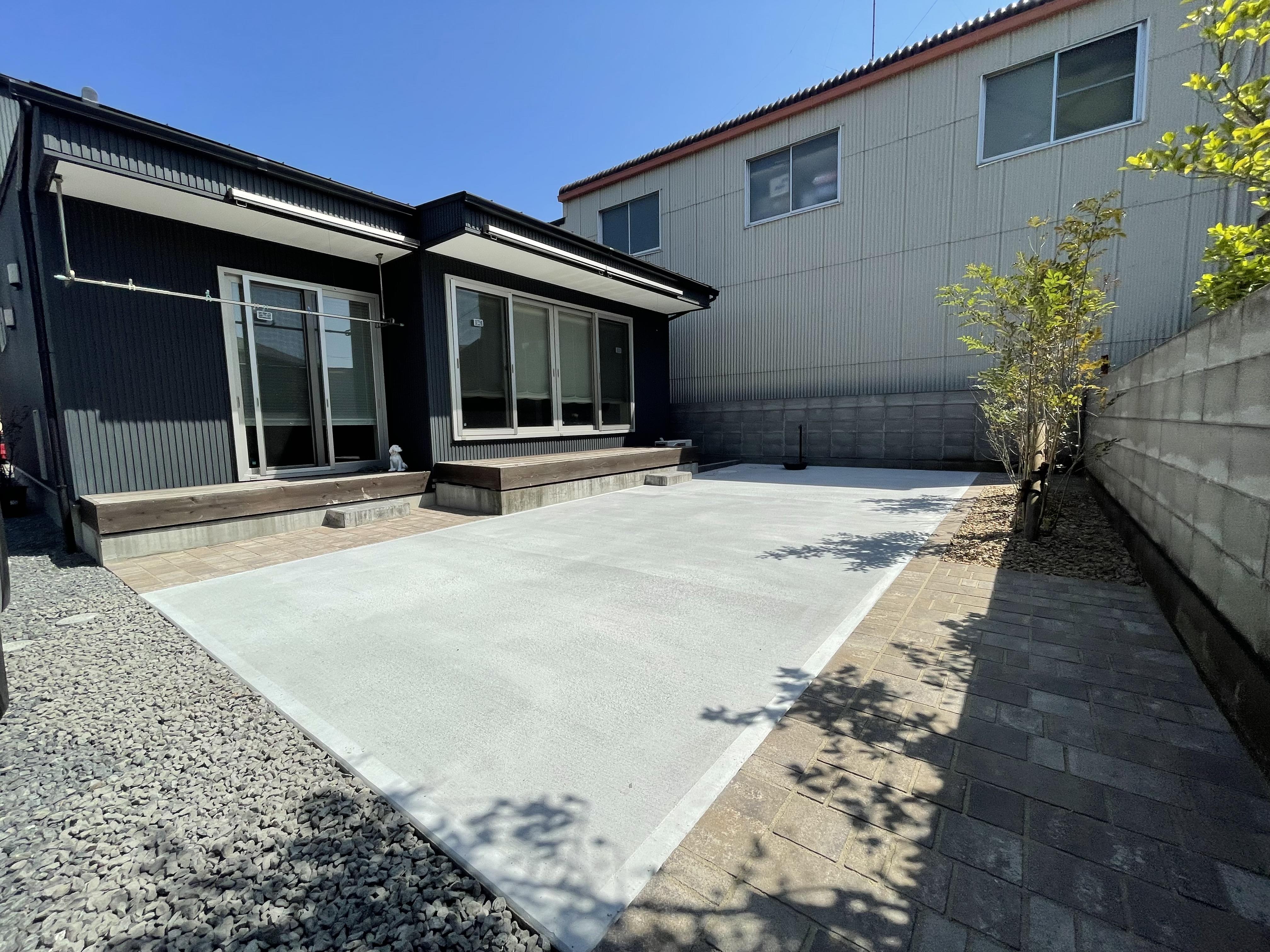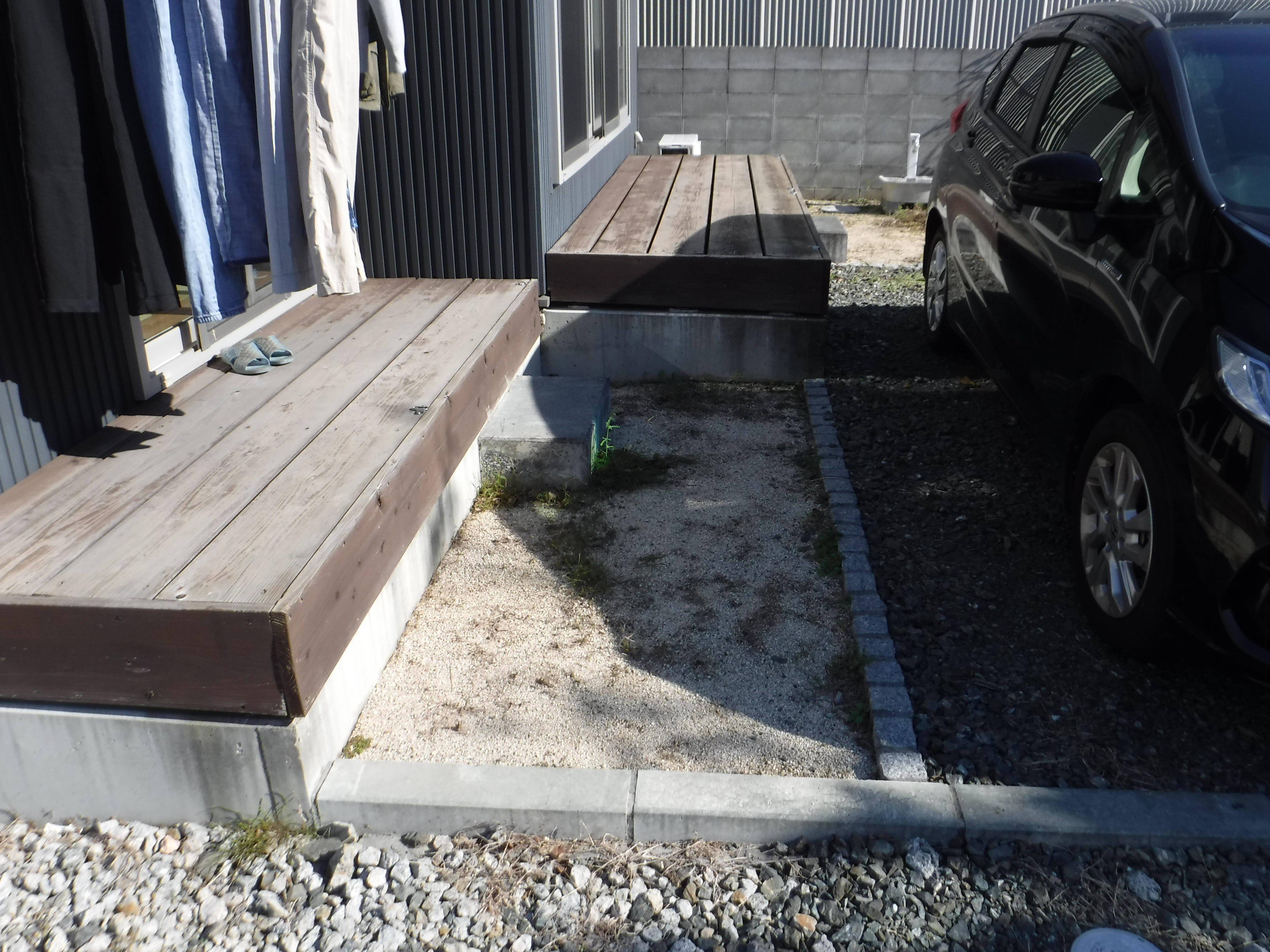 フルフラットにすることで駐車がしやすくなりました。 また植栽スペースを区切って整然とした印象に変わりました。