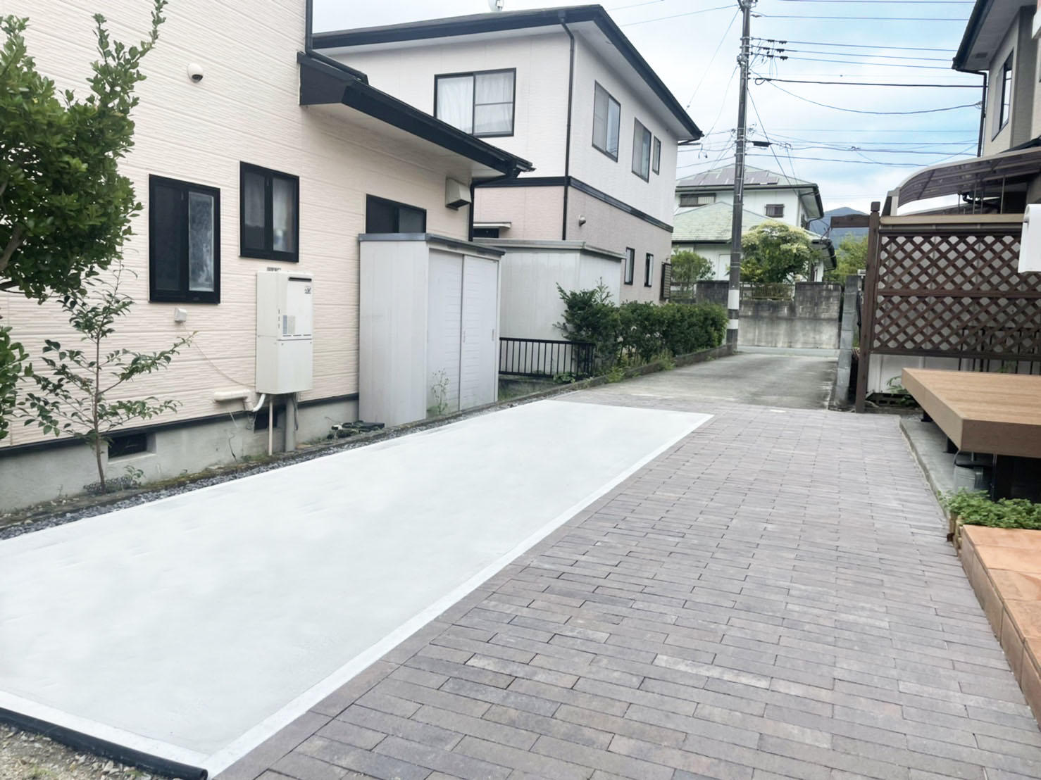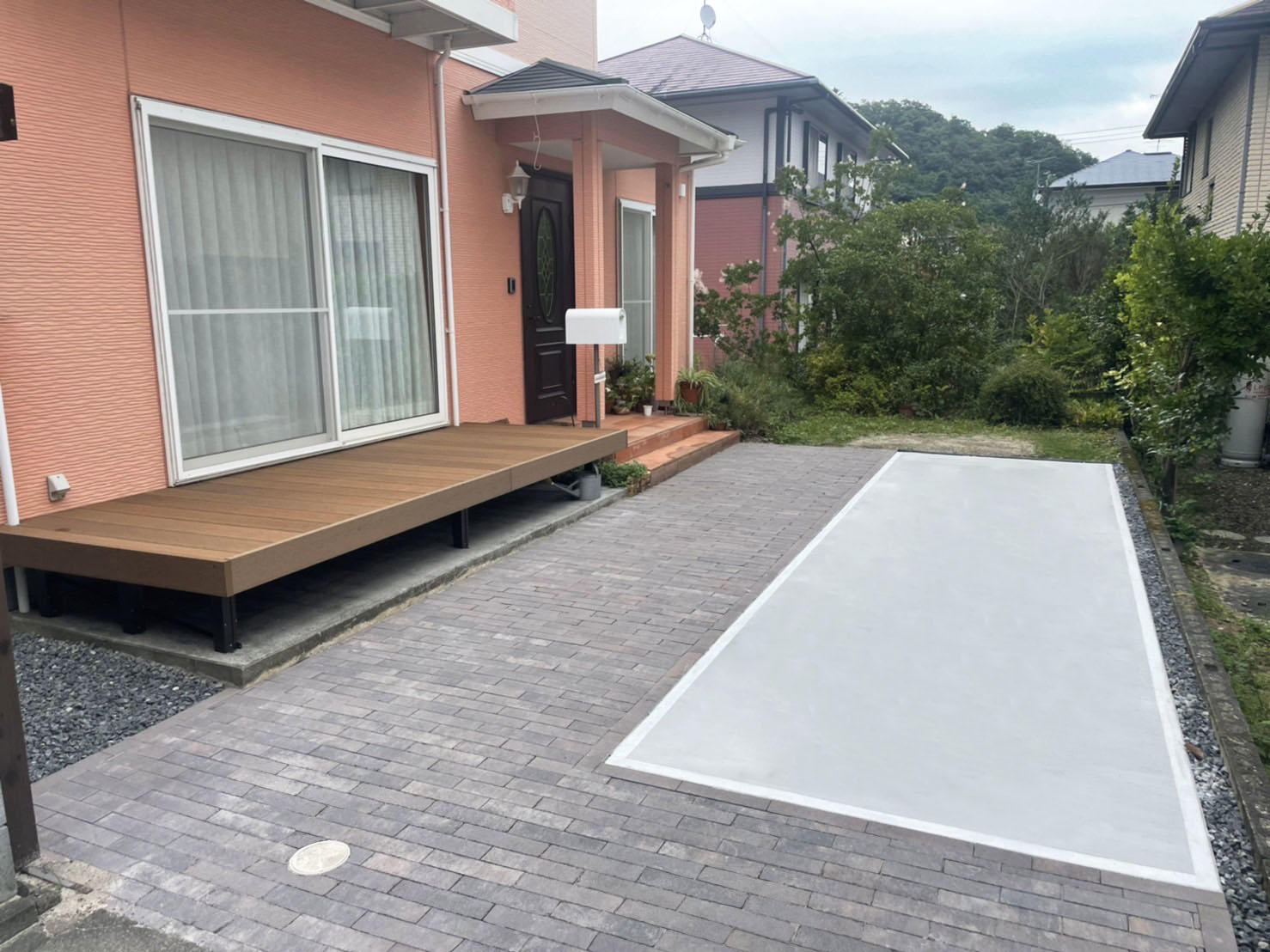 インターロッキング・土間コン・砂利を使い分け、停めやすい整然とした駐車場に。 ウッドデッキも新しいものに変え、お庭に出やすくなりました。