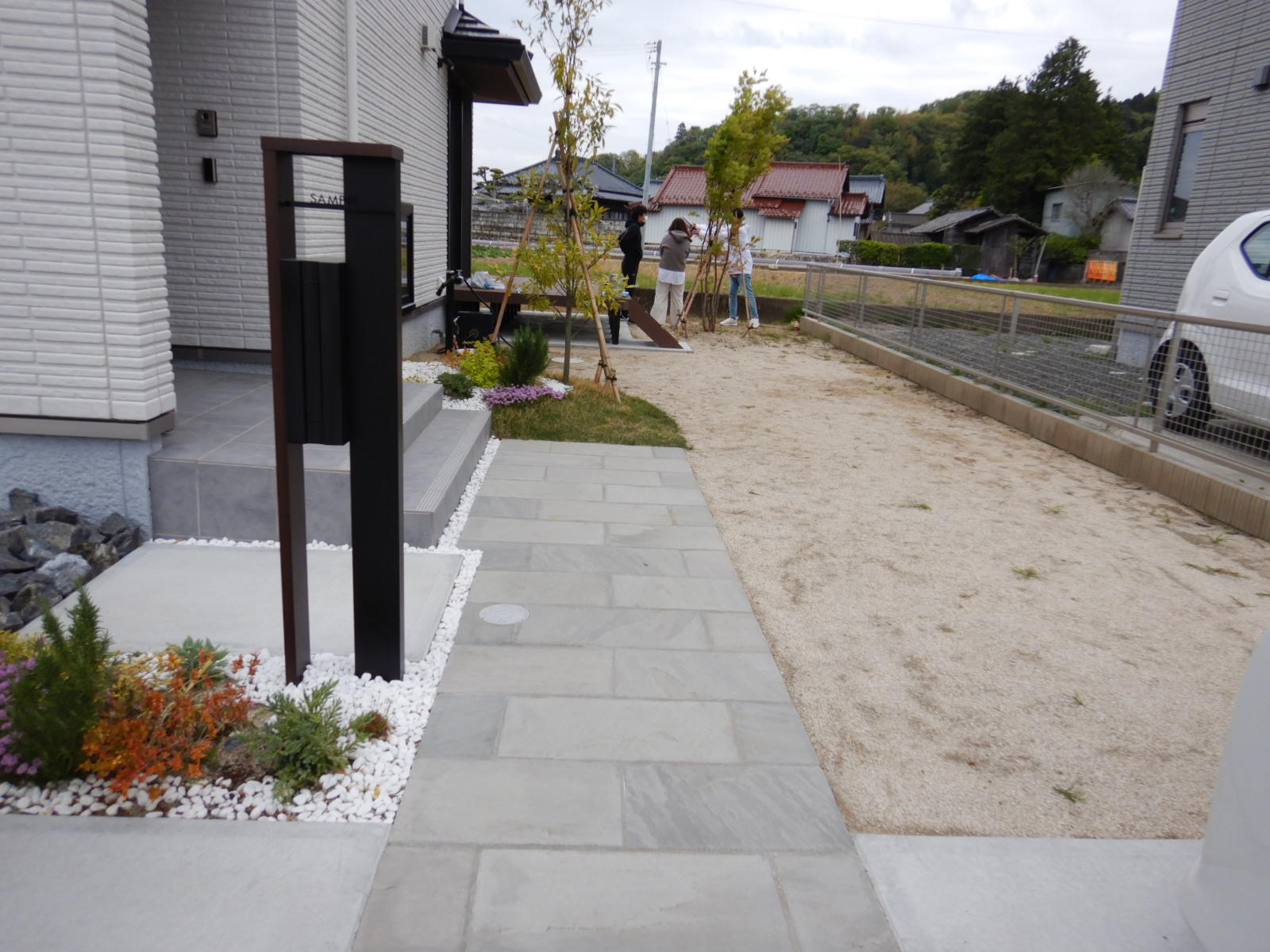 直線で構成したスマートな駐車スペースになりました。