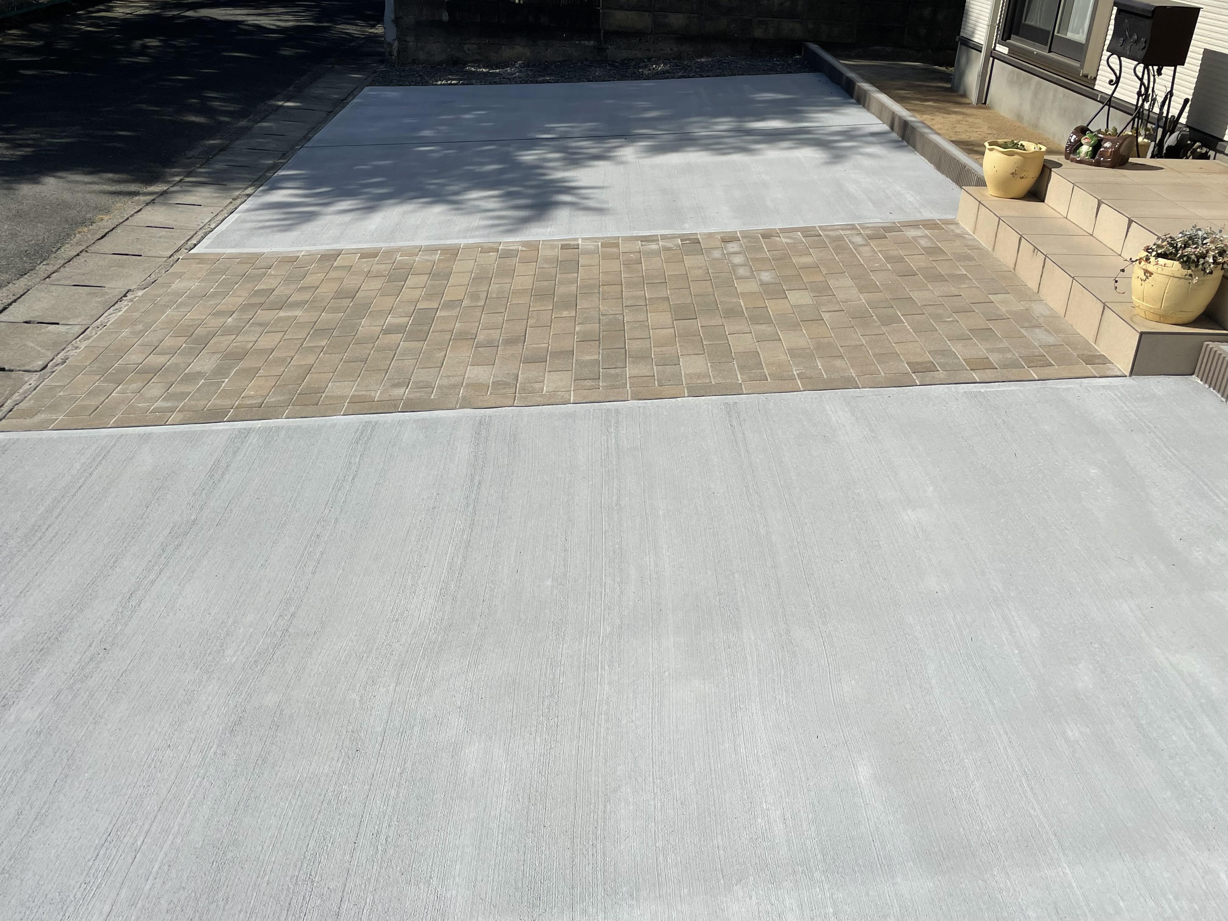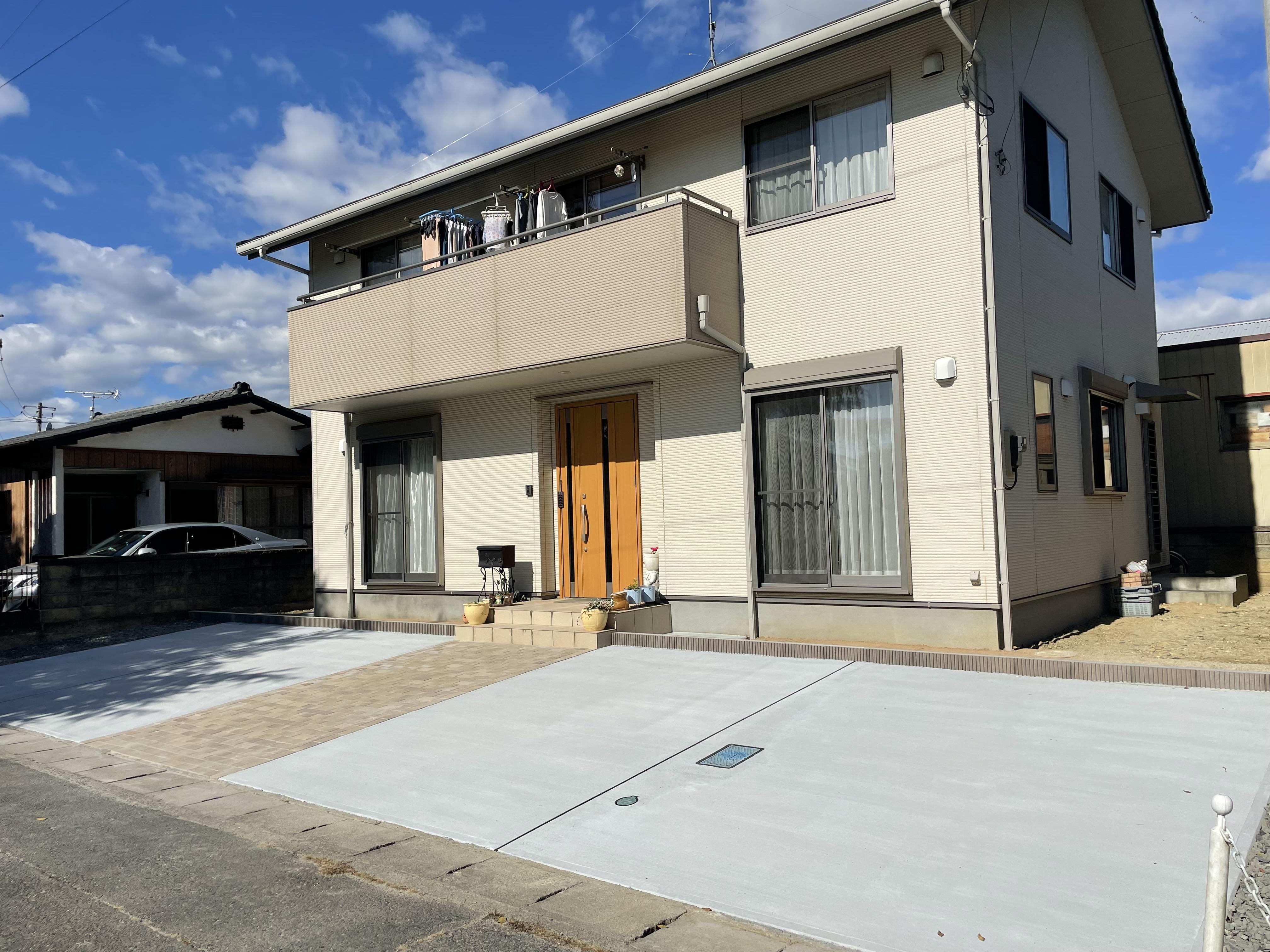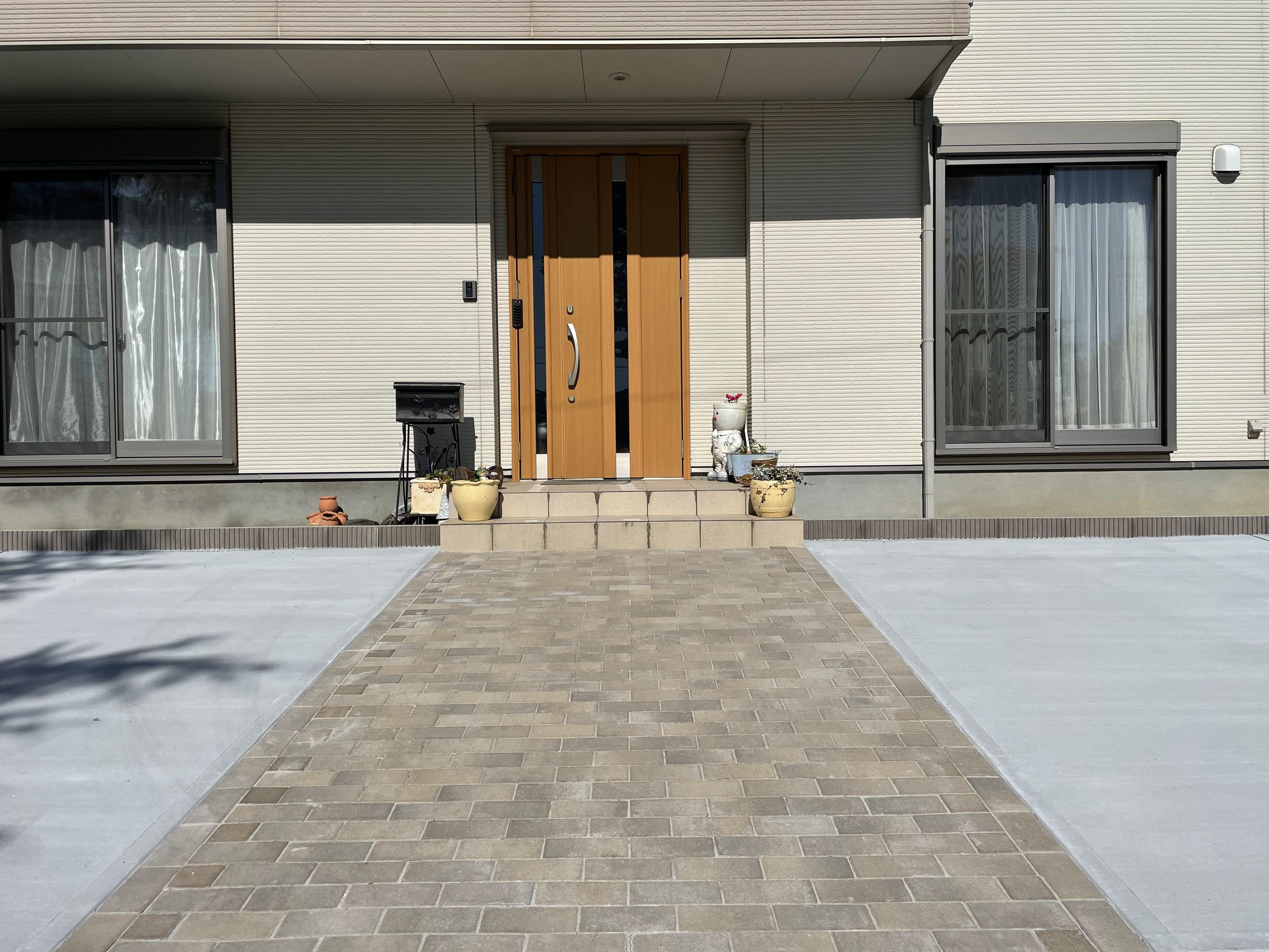 土のままだった駐車スペースをリフォーム。 インターロッキングのアクセントが光る、広々駐車場になりました。