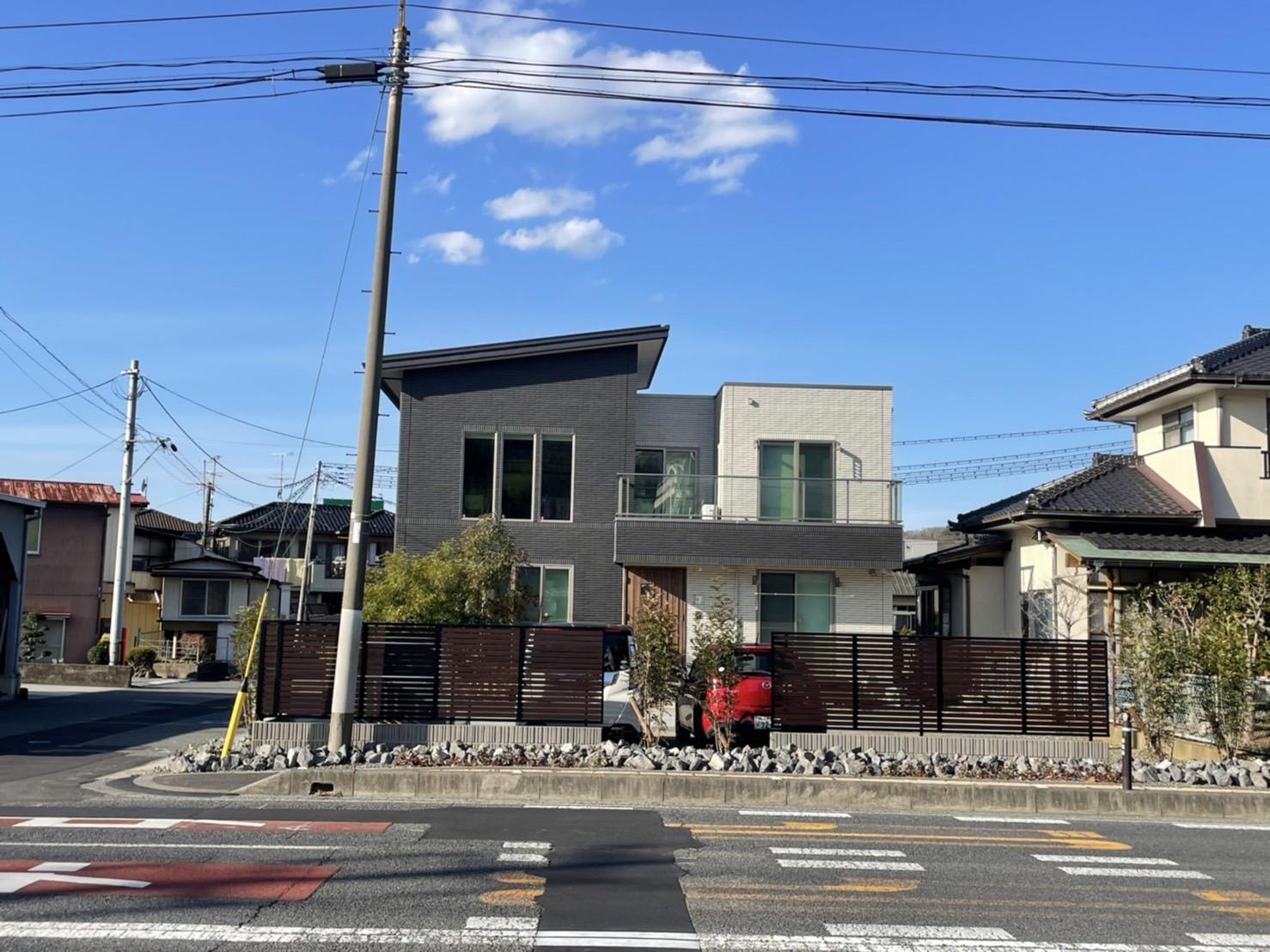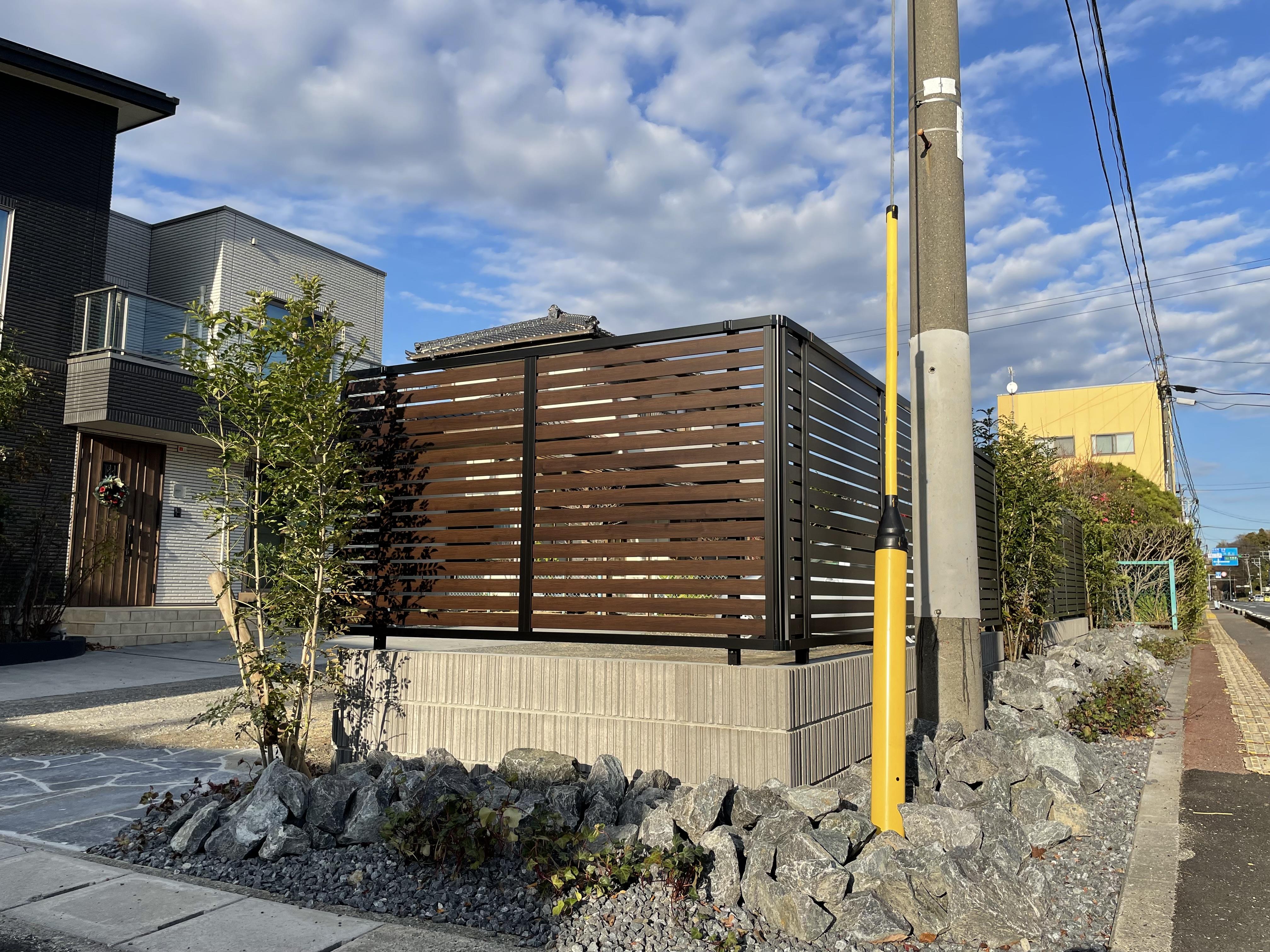 ダークブラウンのフェンスはロックとの相性も抜群です。