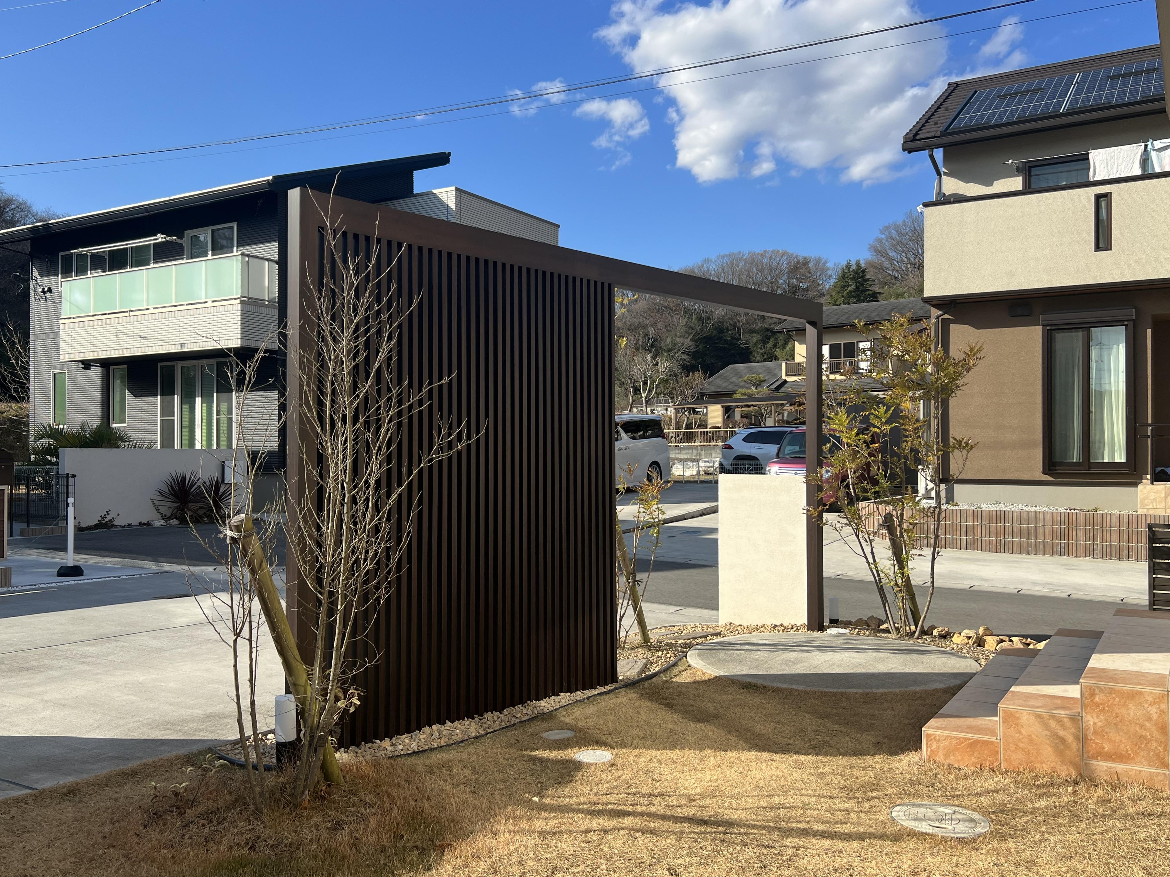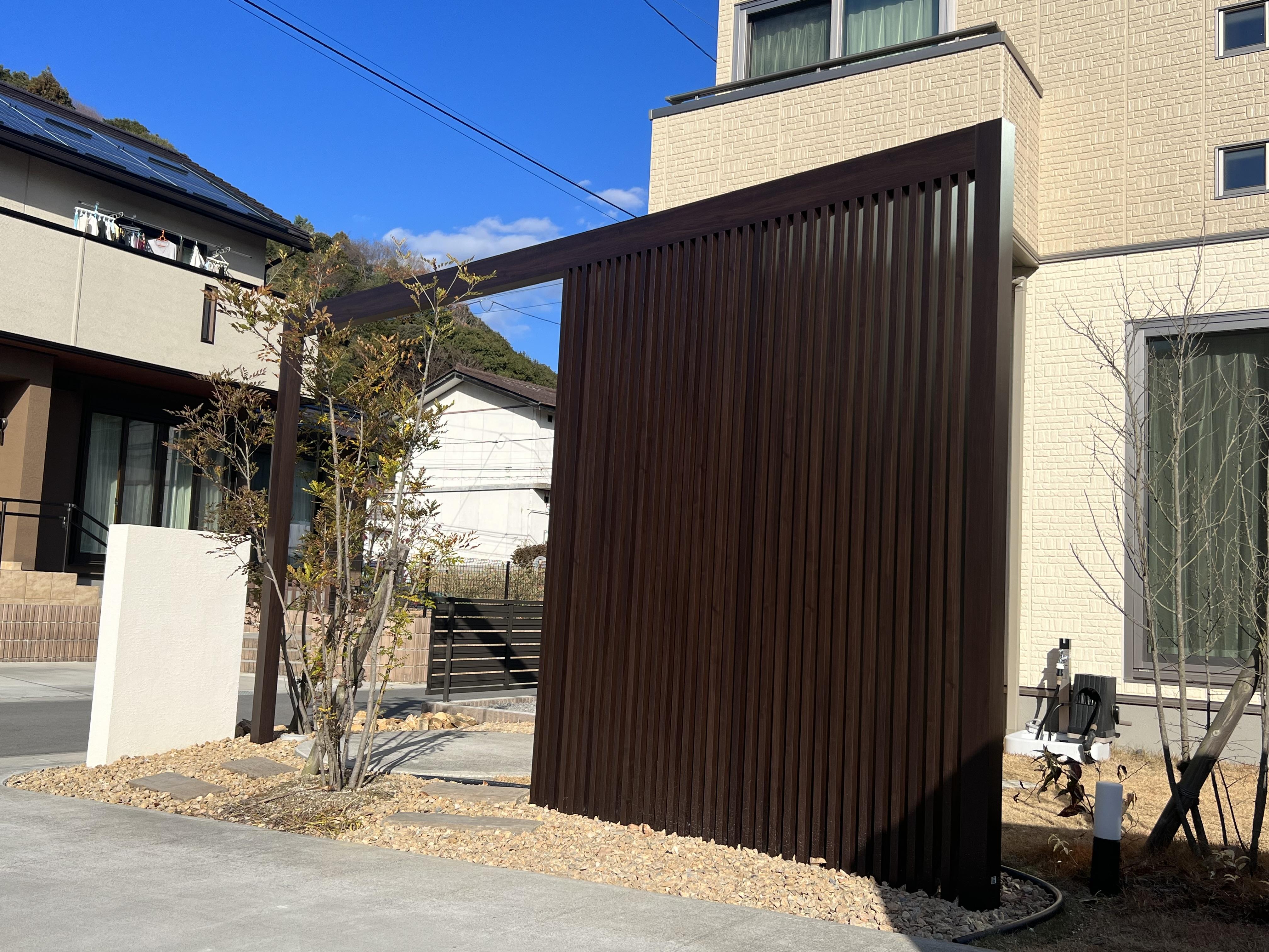 オープンにしていたお庭に目隠しも兼ねたゲートを設置しました。 スリットが入っているため重たくなりすぎず、お庭に厚みをもたらしてくれました。