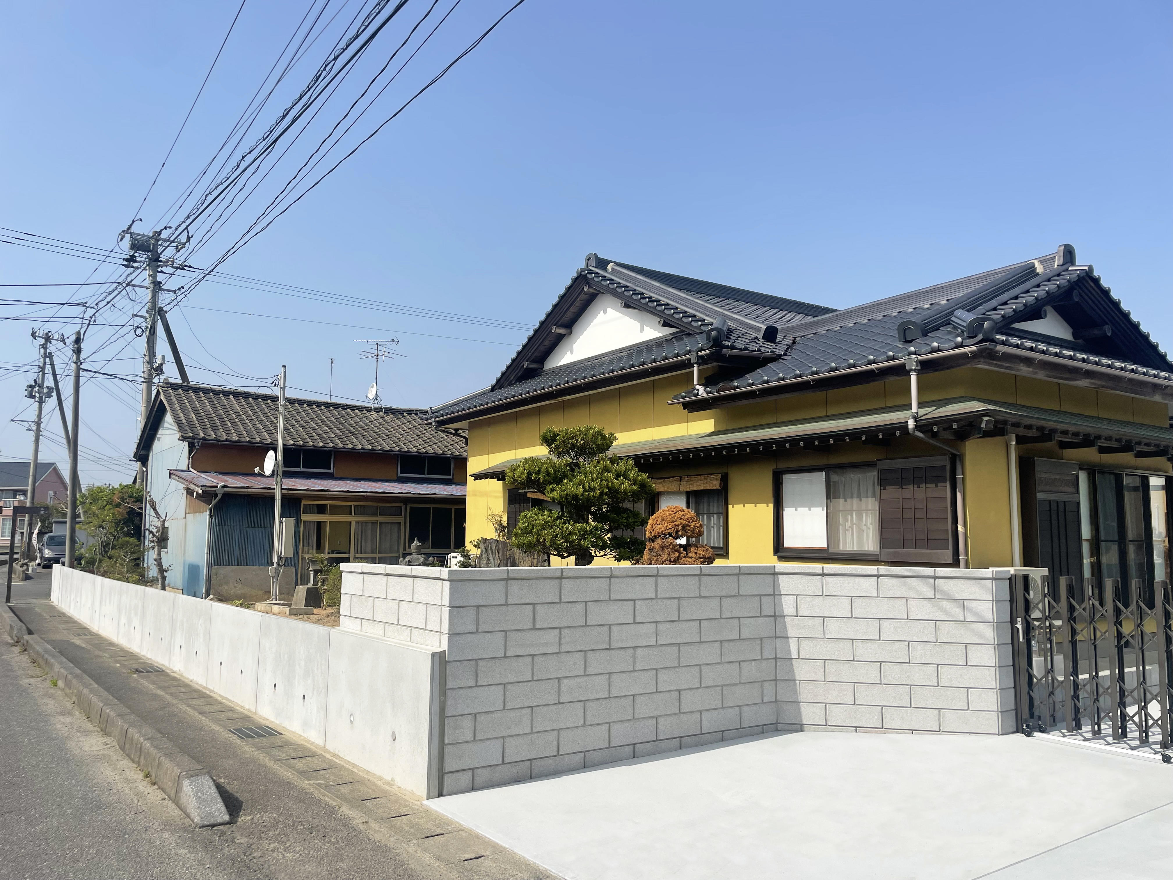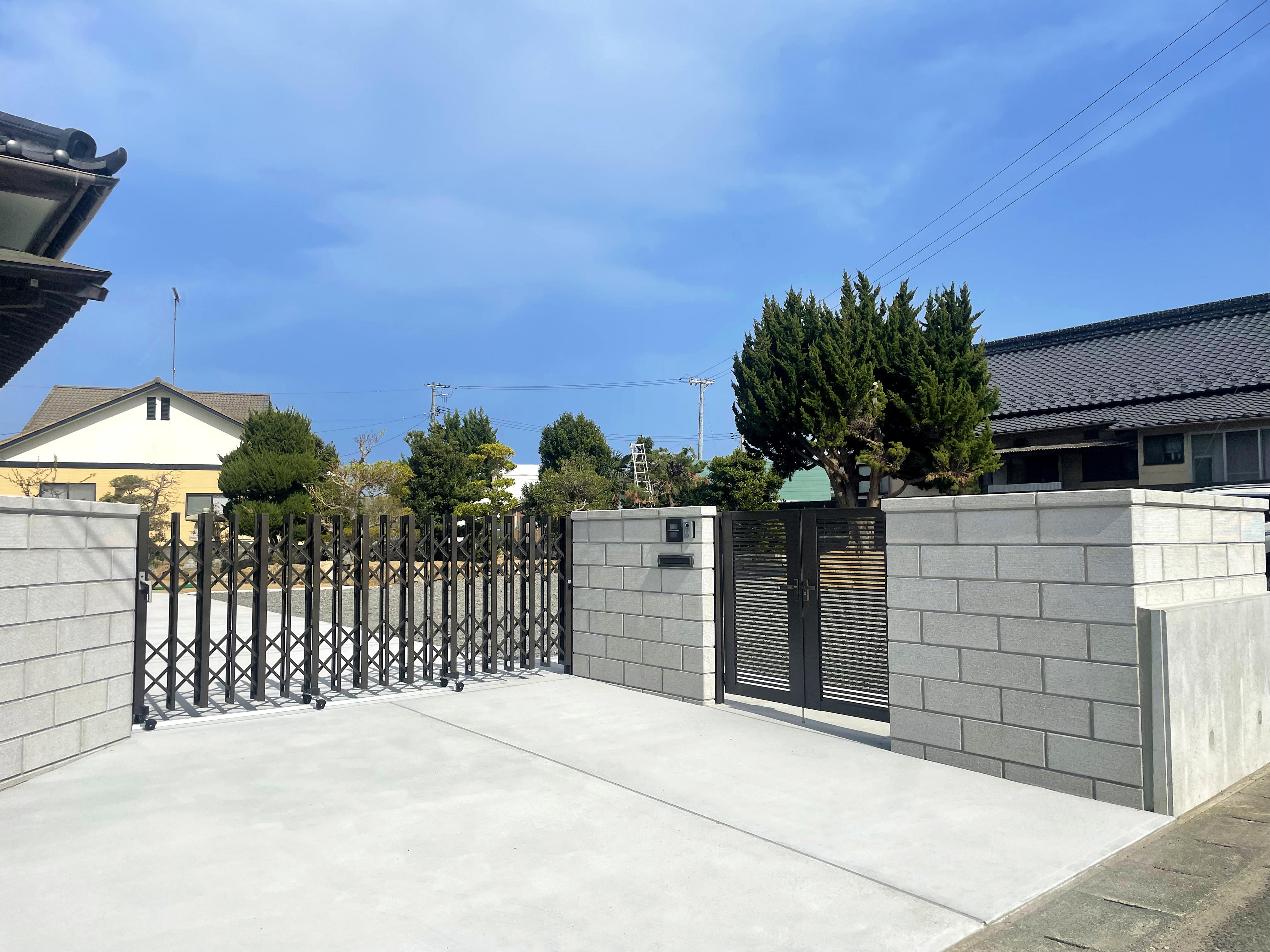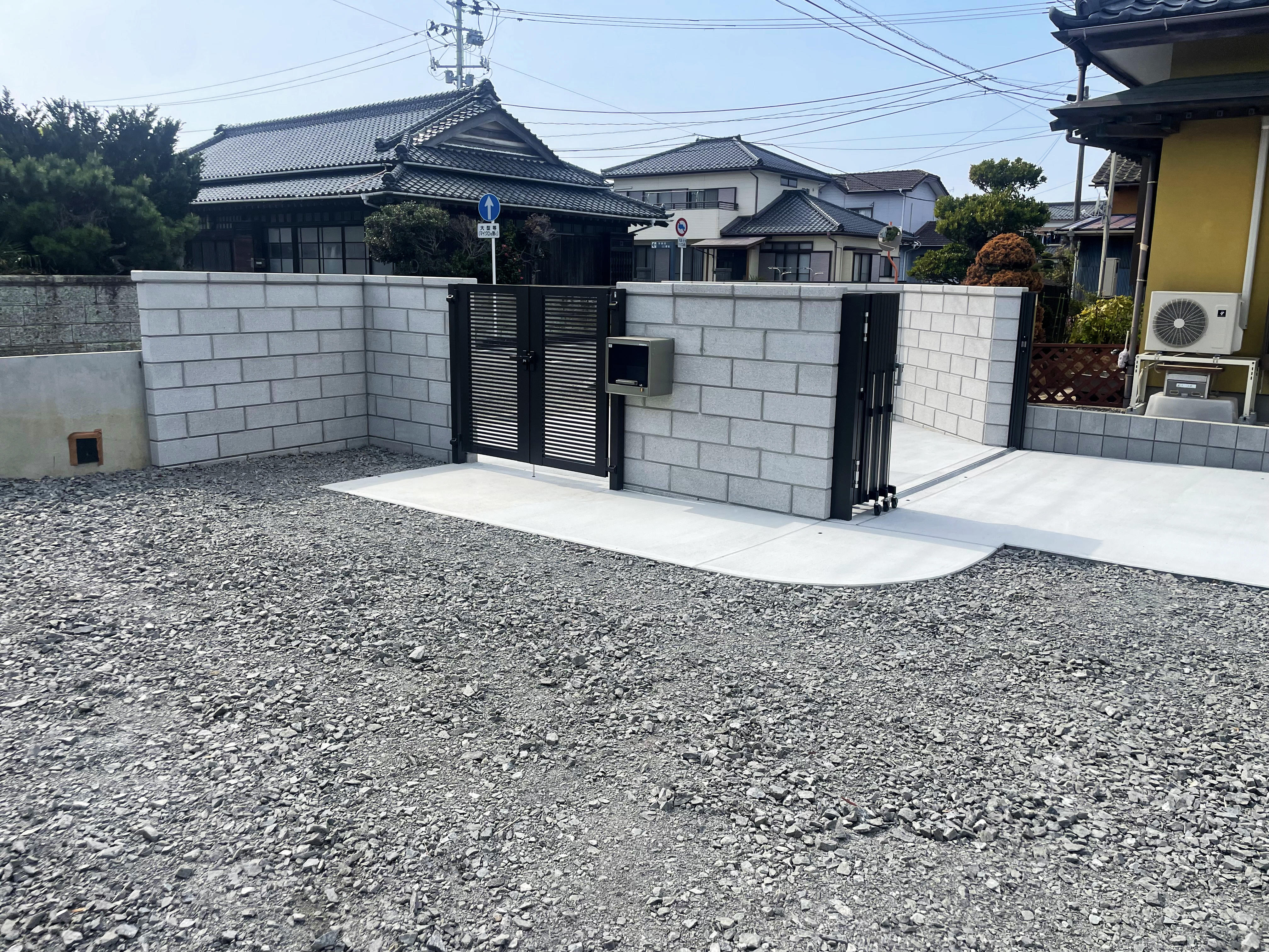 化粧ブロックを用いて門壁を設置し、防犯性を高めました。 また、土のままだったところには砂利と土間を敷き、整備されたお庭に変えています。