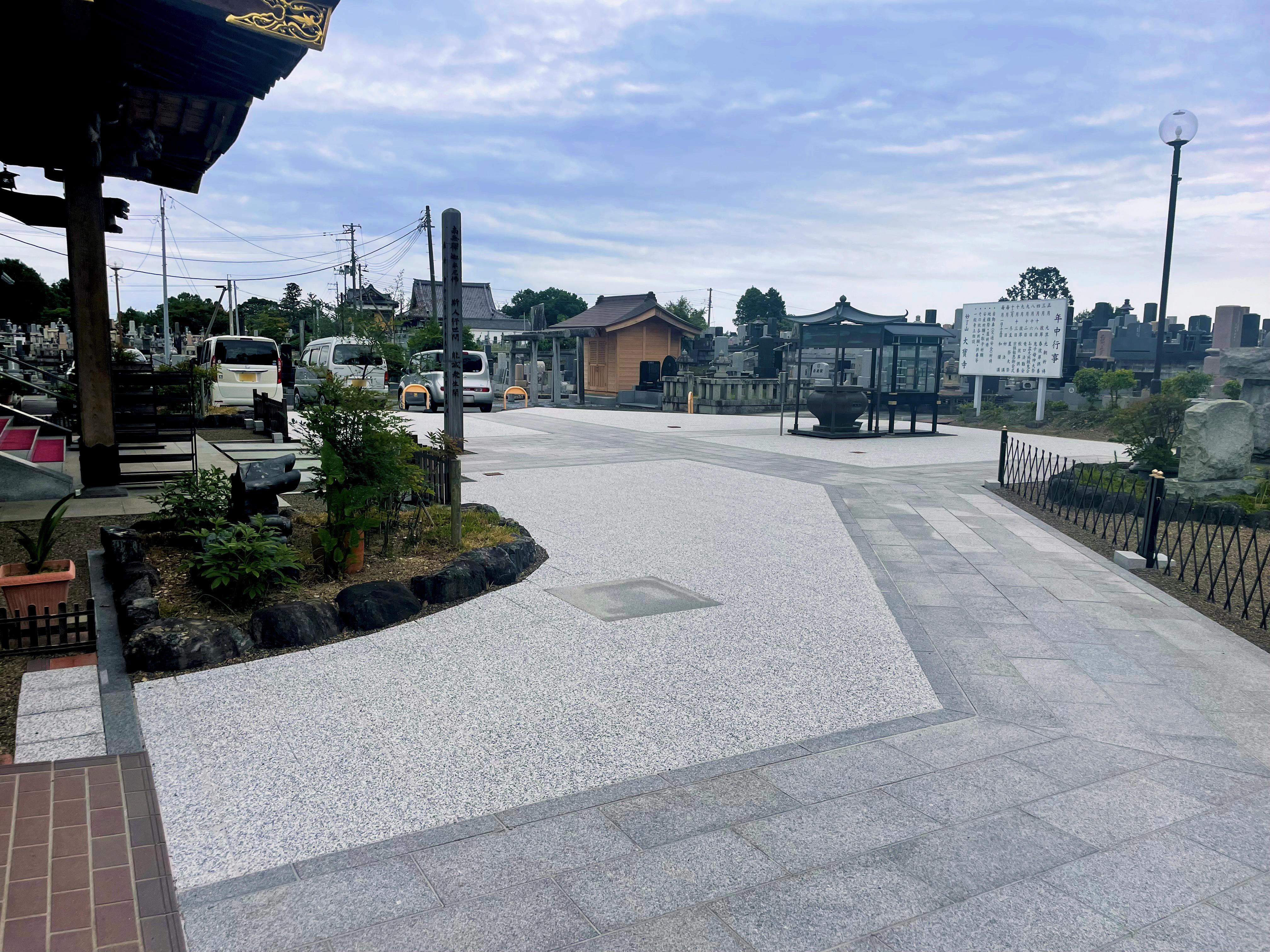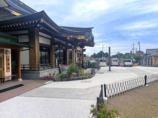 お寺の境内の参道周りをリフォームさせていただきました。 DCファイバーを全体に使用してフルフラットにすることで、広々とした印象になりました。 車椅子の方も安心して参拝に訪れることが出来るようになりました。