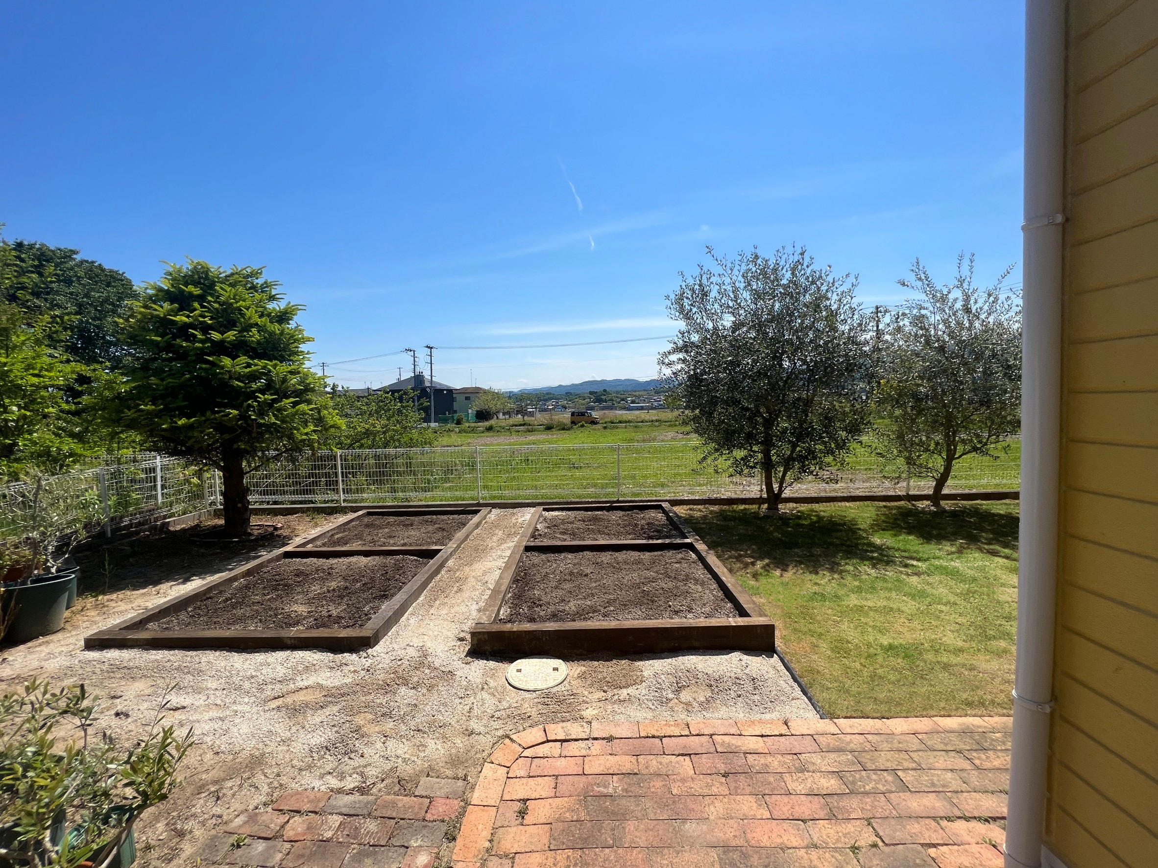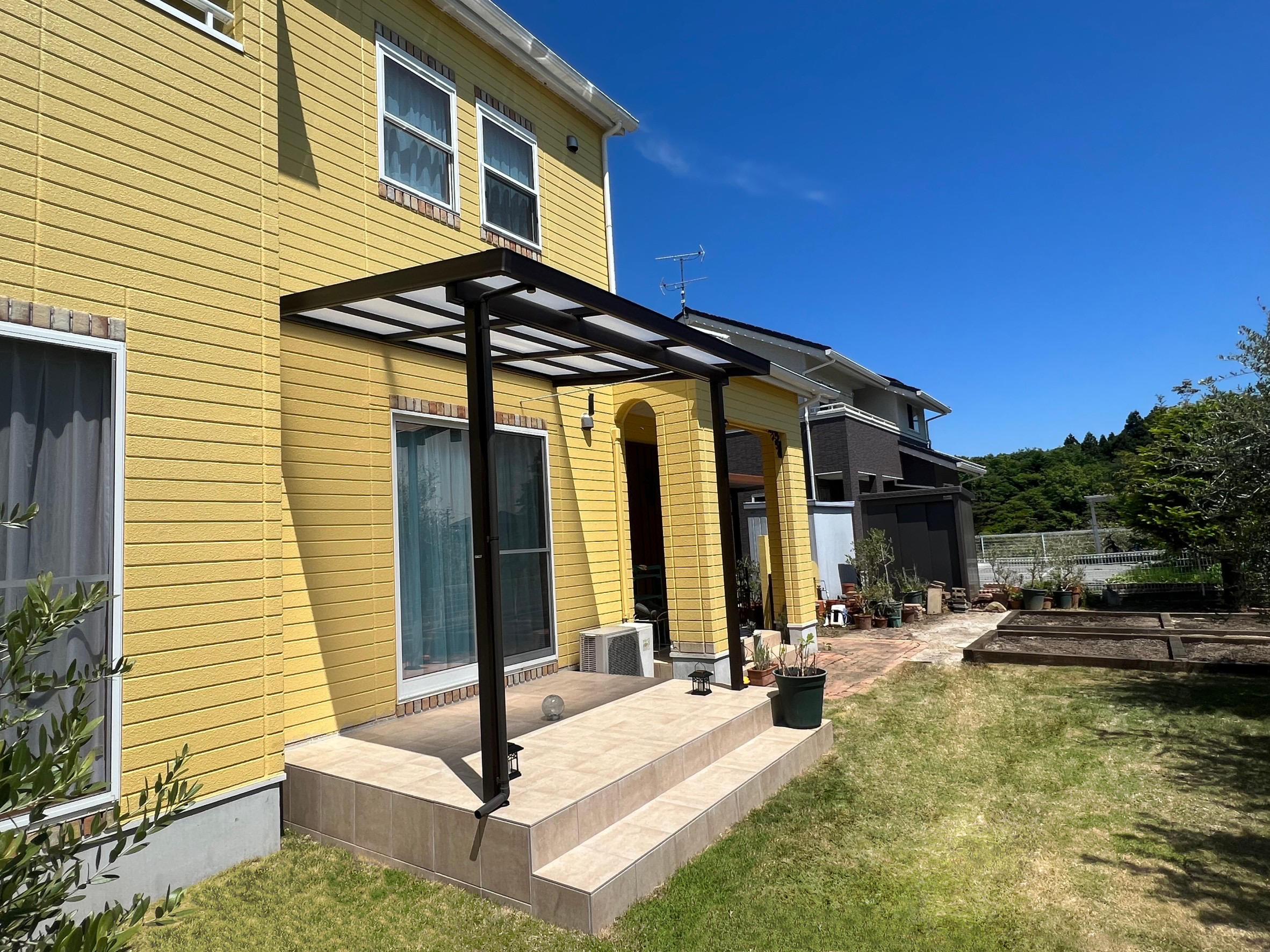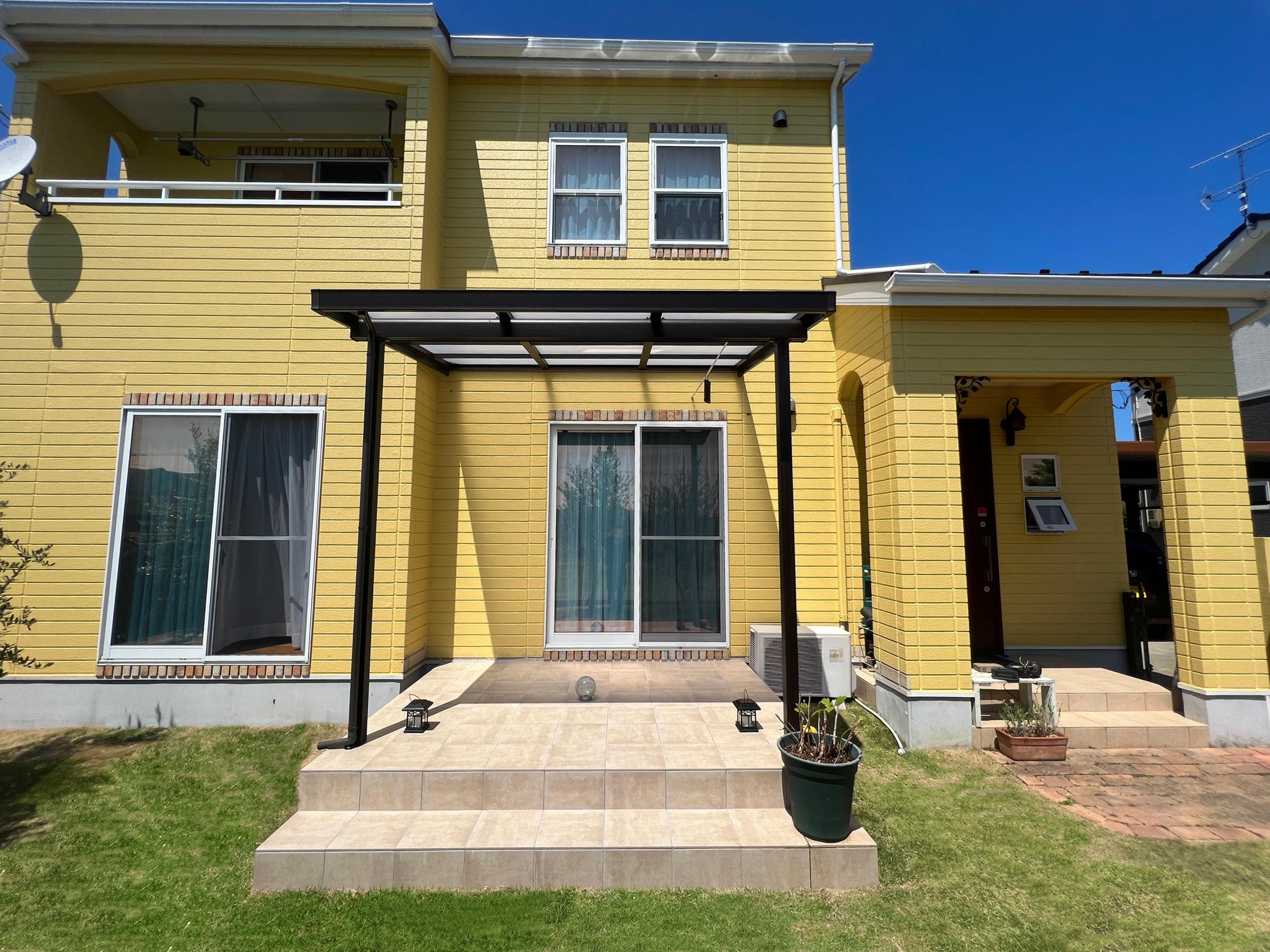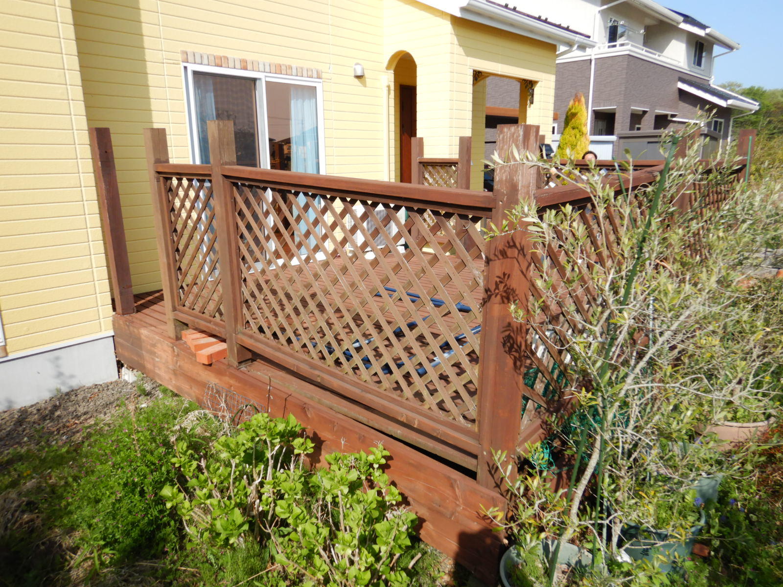 既存のウッドデッキや植栽を撤去し、広々とした敷地を活かせるようお庭をリフォームしました。 タイルデッキ上には熱線をカット出来るテラスを設置し、室内への日差しを和らげています。 芝生を張ったお庭の一角には花壇スペースを新設し、ガーデニングを楽しめる空間に仕上げました。