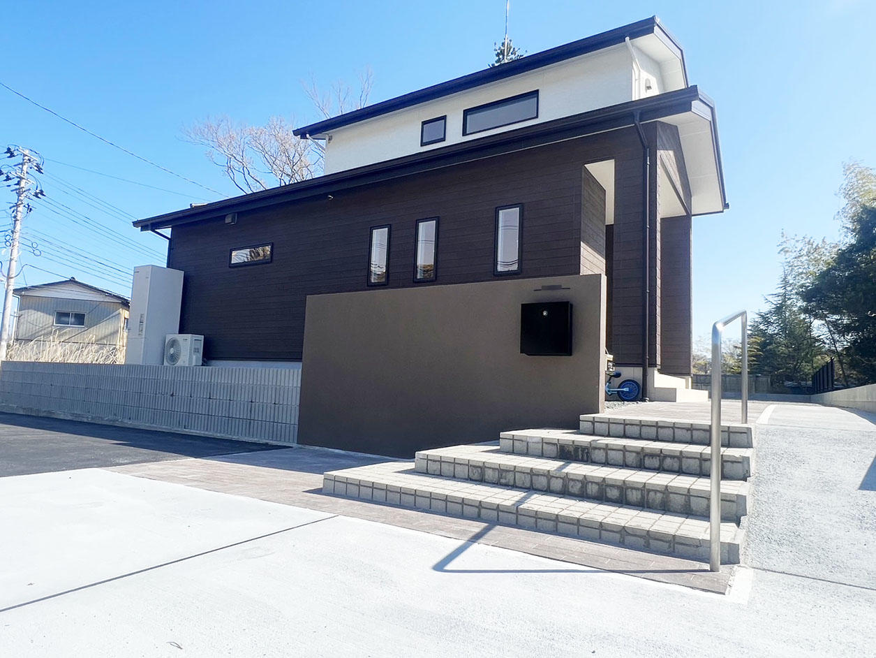 ブロックが崩れていたり、雑草がはびこり管理が大変だったお庭をリフォーム。 広い敷地は砂利を敷きメンテナンスしやすいお庭に。 建物に合わせたブラウンの門壁を設置しモダンな印象の外構に。