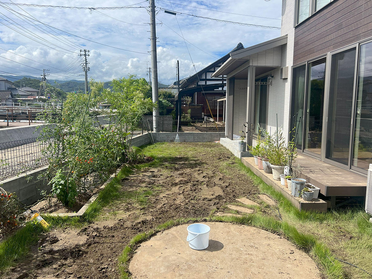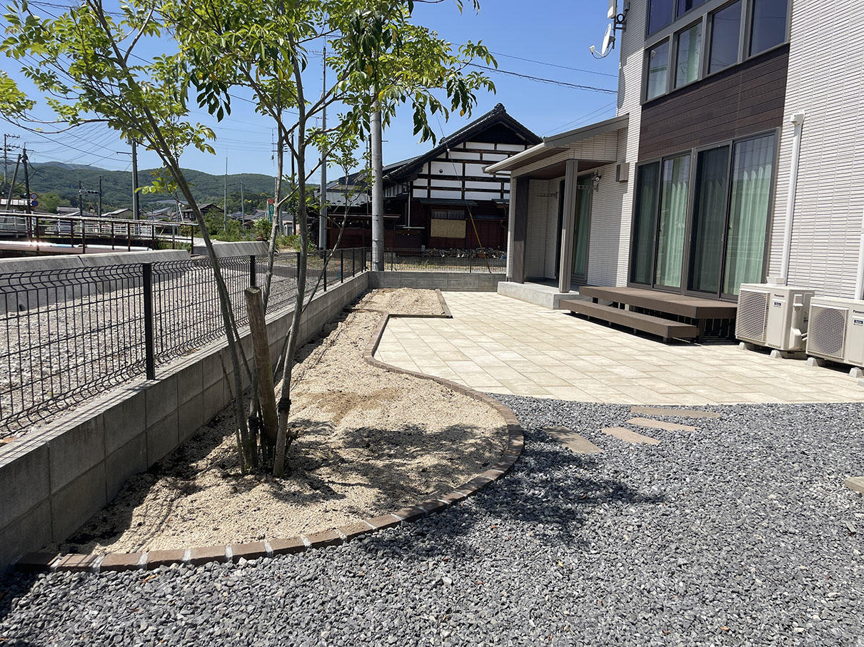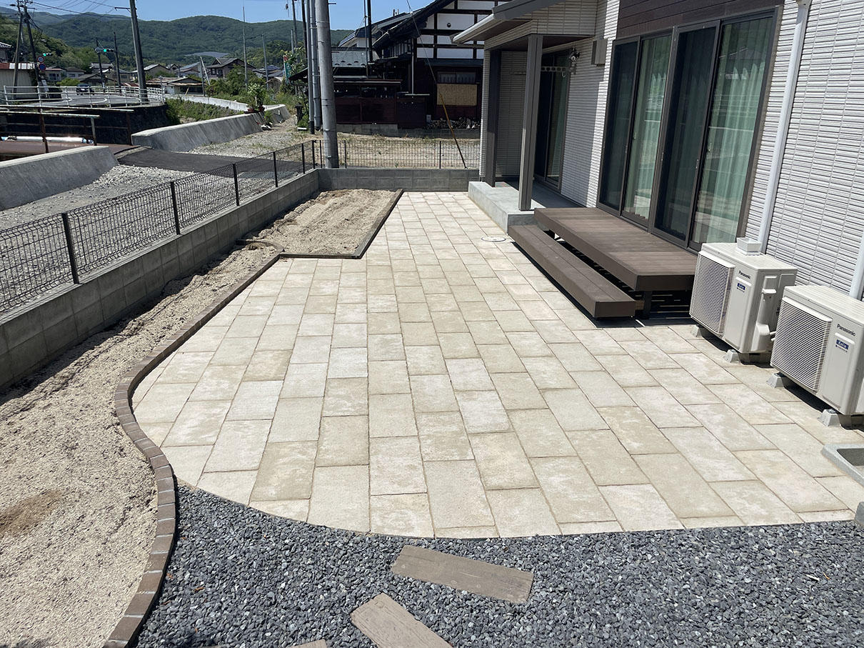 浸水被害をきっかけに以前から希望していたインターロッキングに。 建物の雰囲気に合わせたナチュラルな色で仕上げました。 メンテナンスしやすいお庭に。