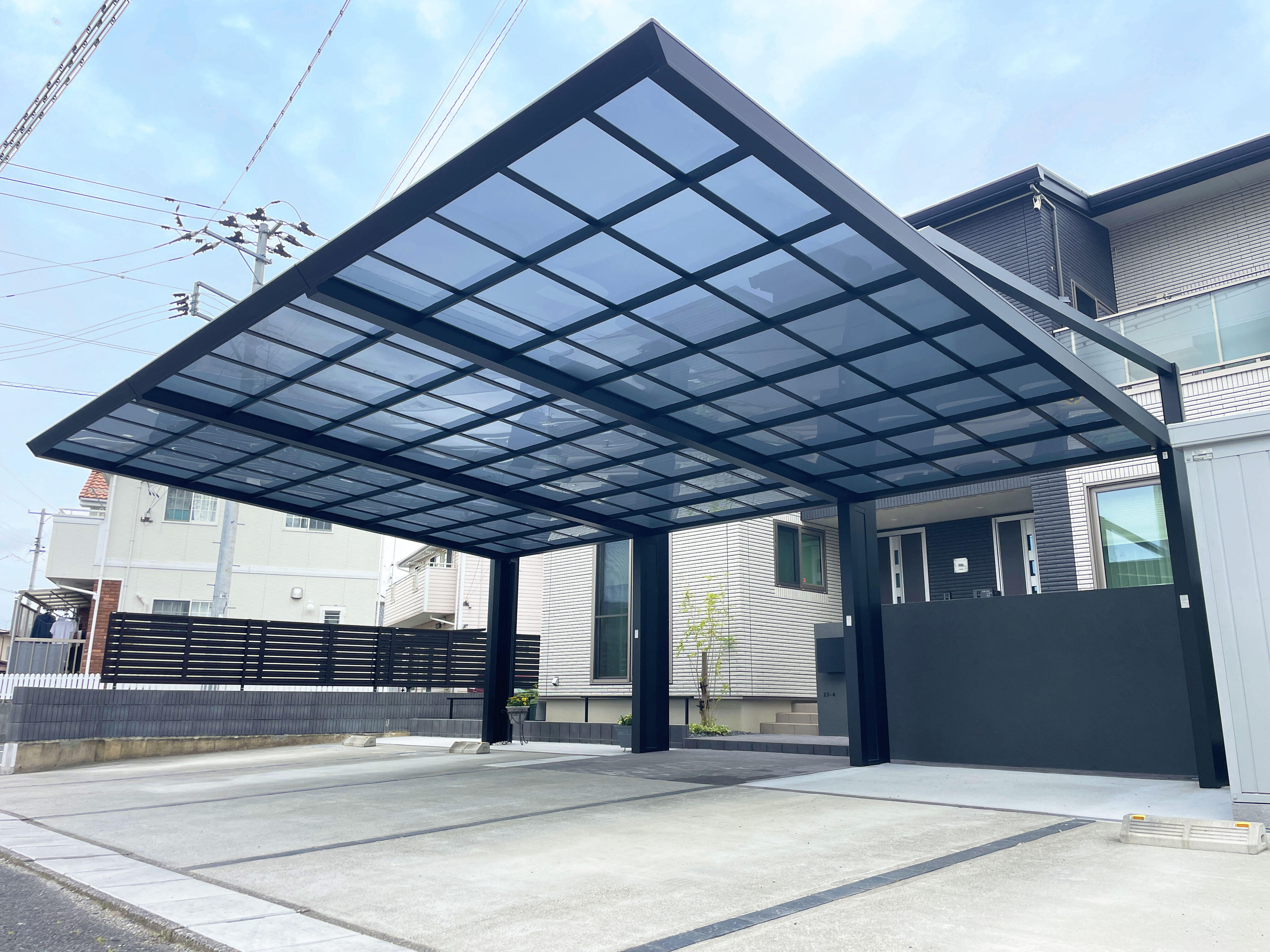 大型のカーポートを新設し、機能性をアップしました。更に新たな門壁を作りファサードに表情をプラスしました。
