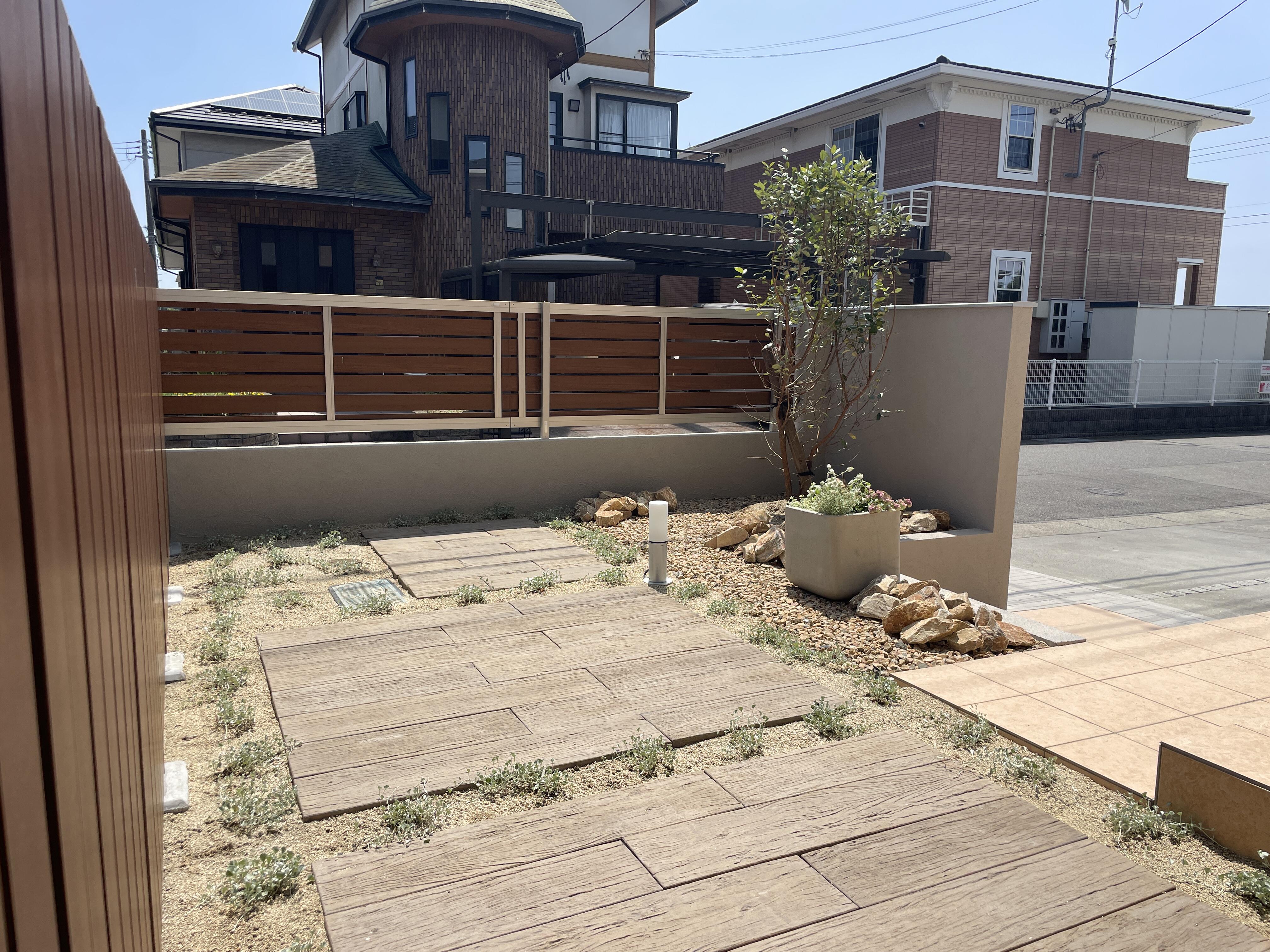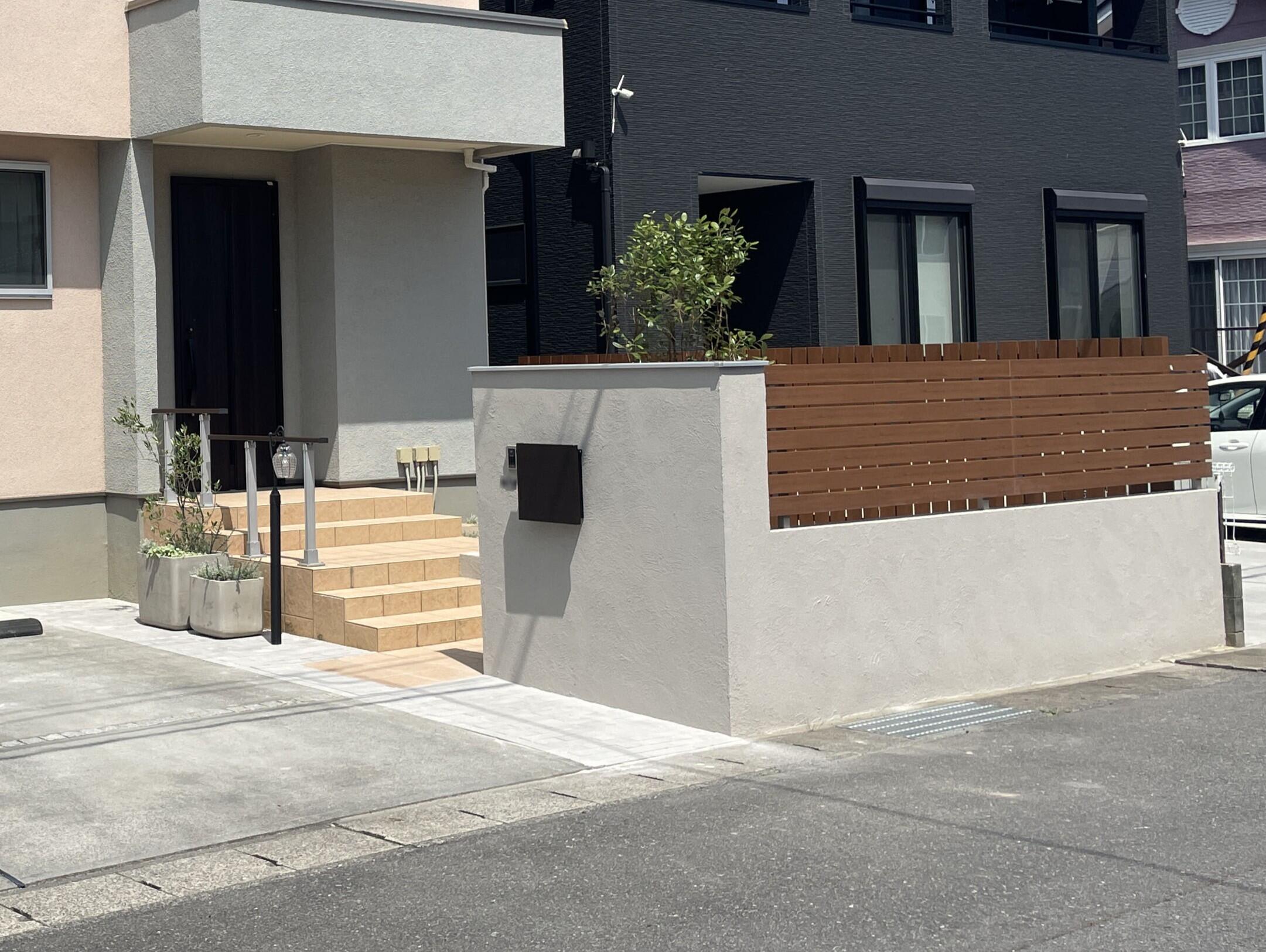 ファサードの塗り壁を新しく塗り直し、ポストや表札も新しくしました。 植栽スペースの植物も数を減らし、手入れのしやすい空間になりました。