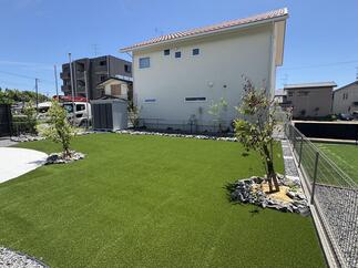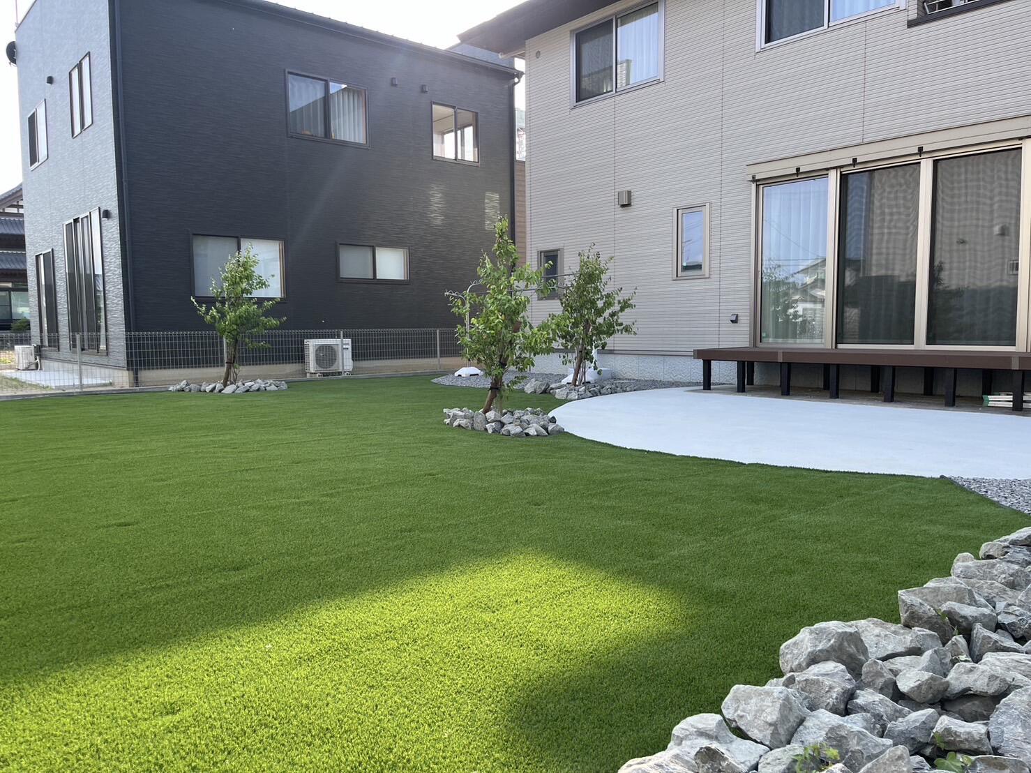 人工芝と樹木の組み合わせでお手入れ最小限に
