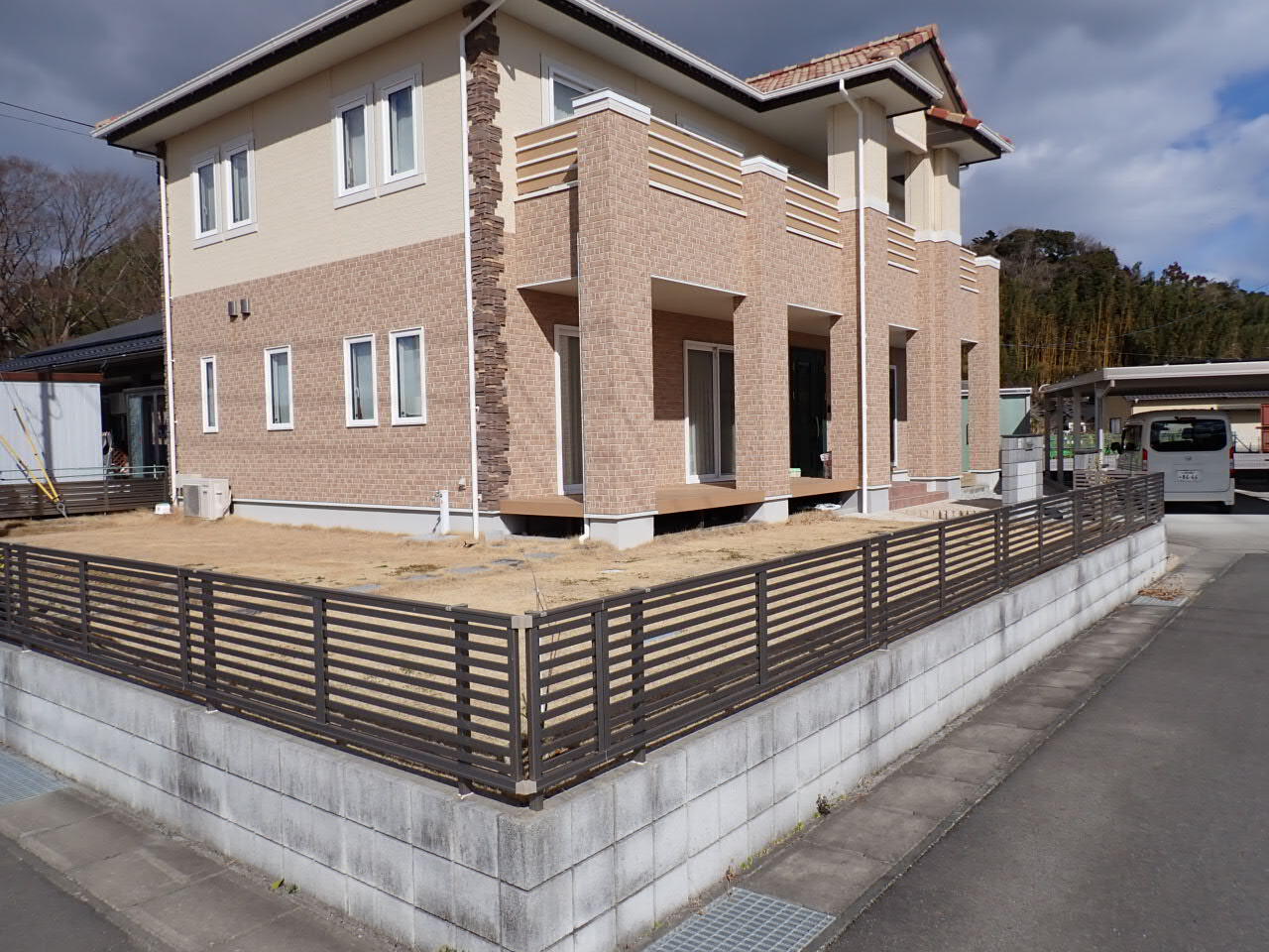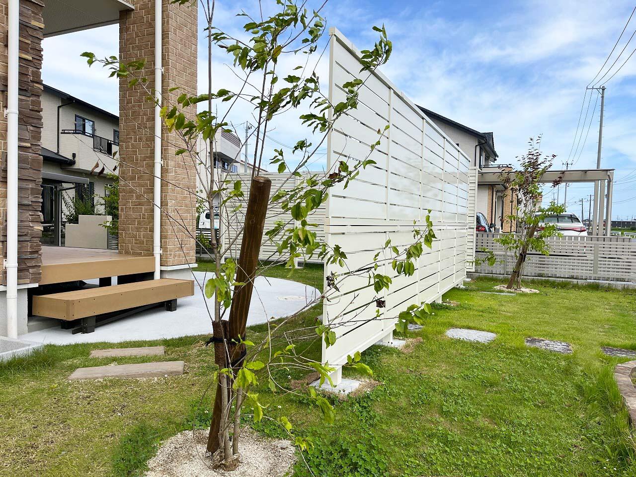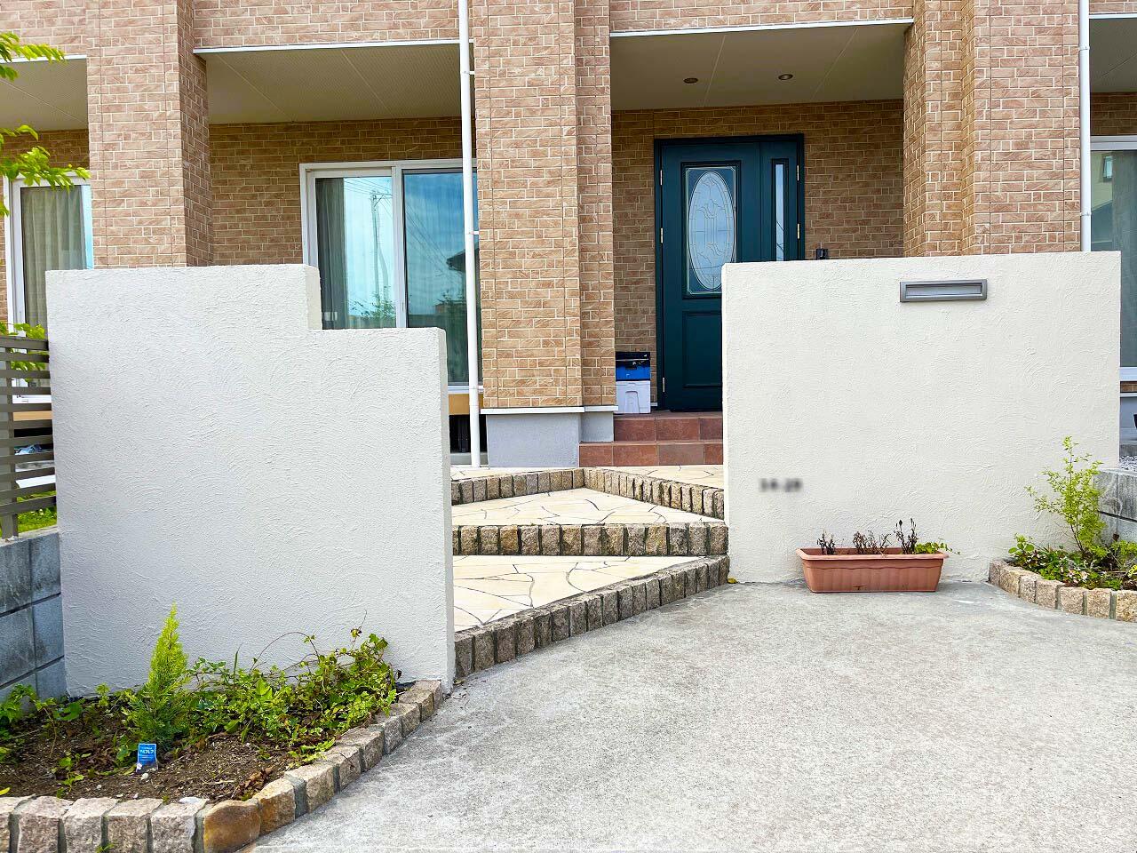 門壁を白く塗り、チグハグだったアプローチに統一感をもたらしました。 また、お庭を囲むように目隠しフェンスを配置し、 視線を気にせず気兼ねなく遊べるお庭にリフォームしました。