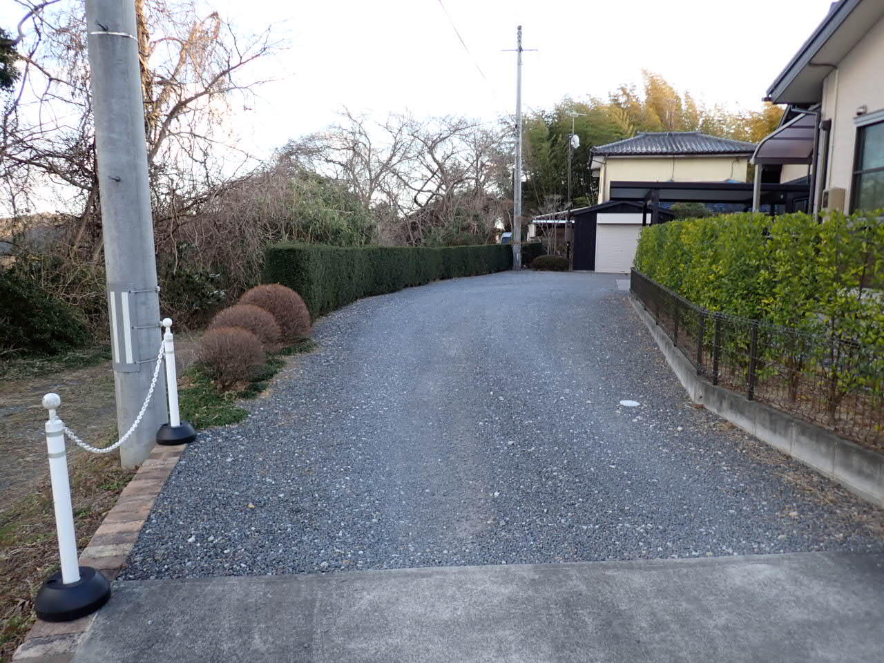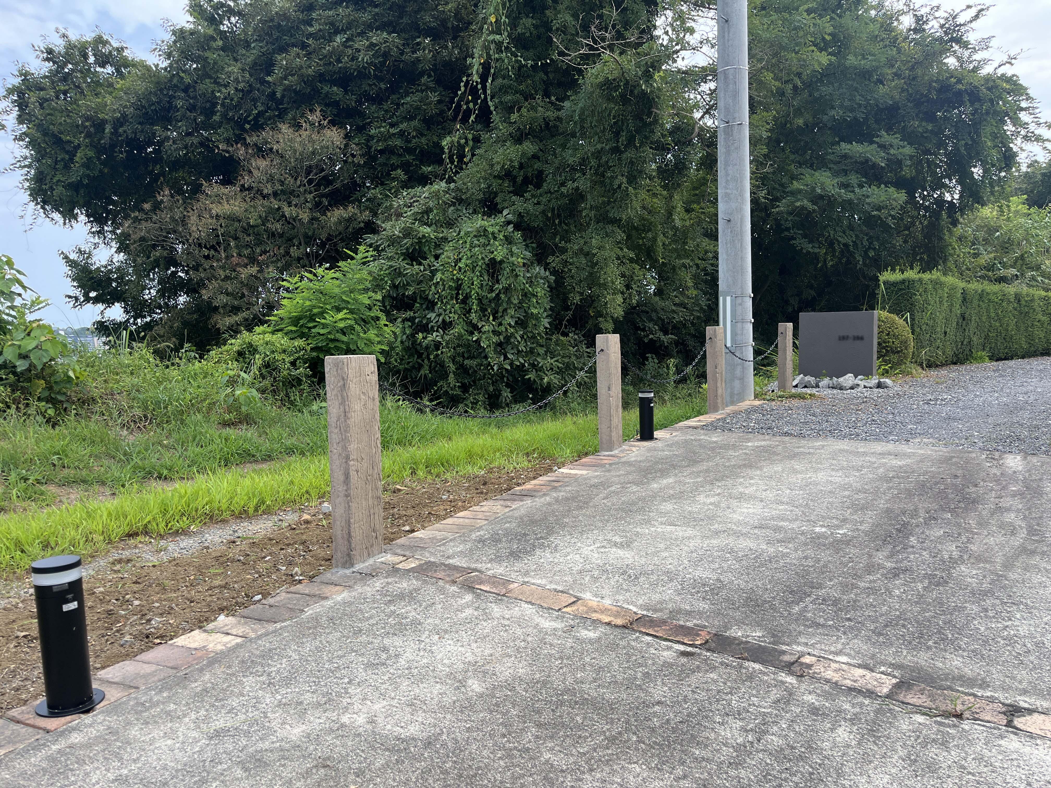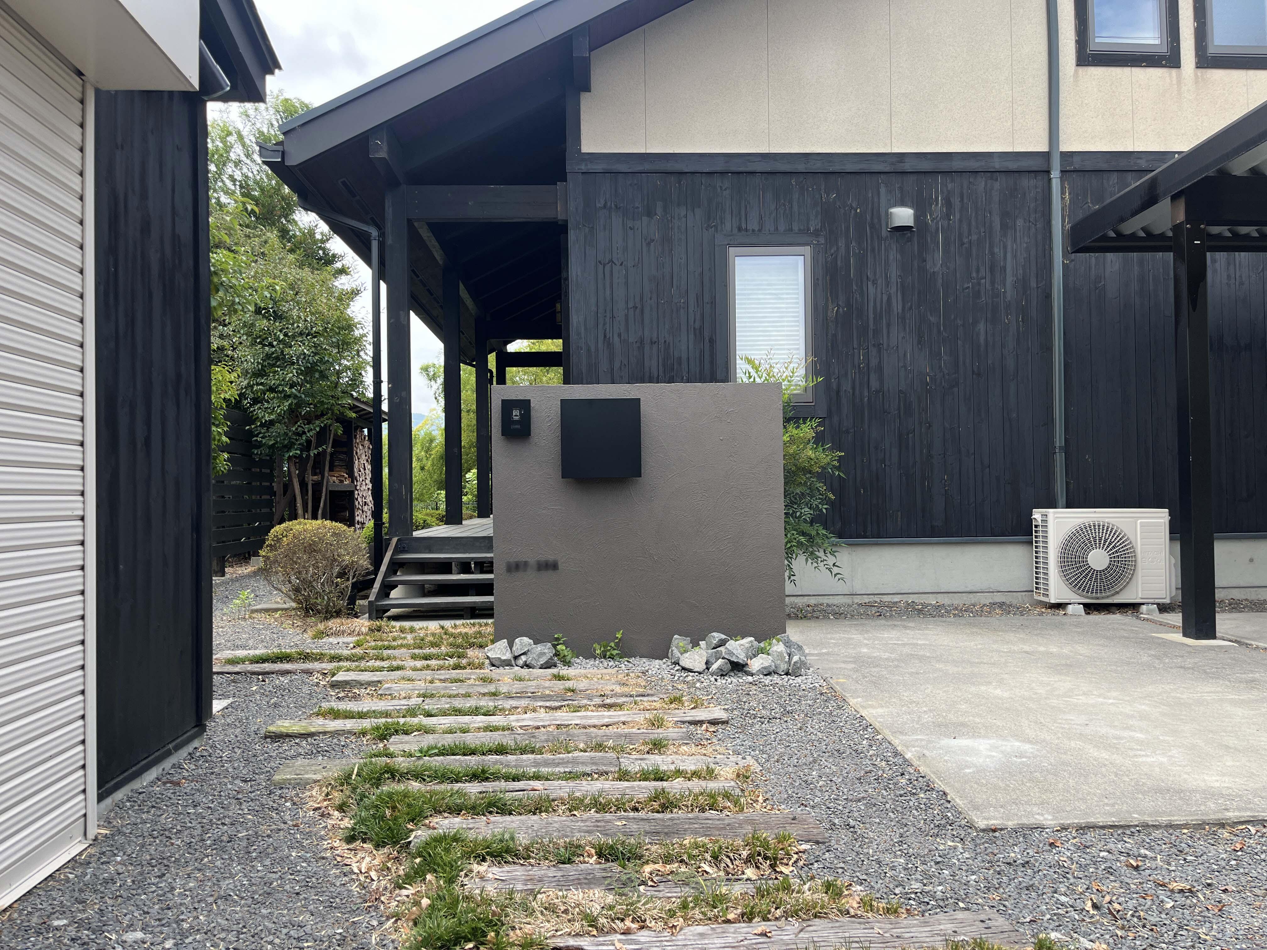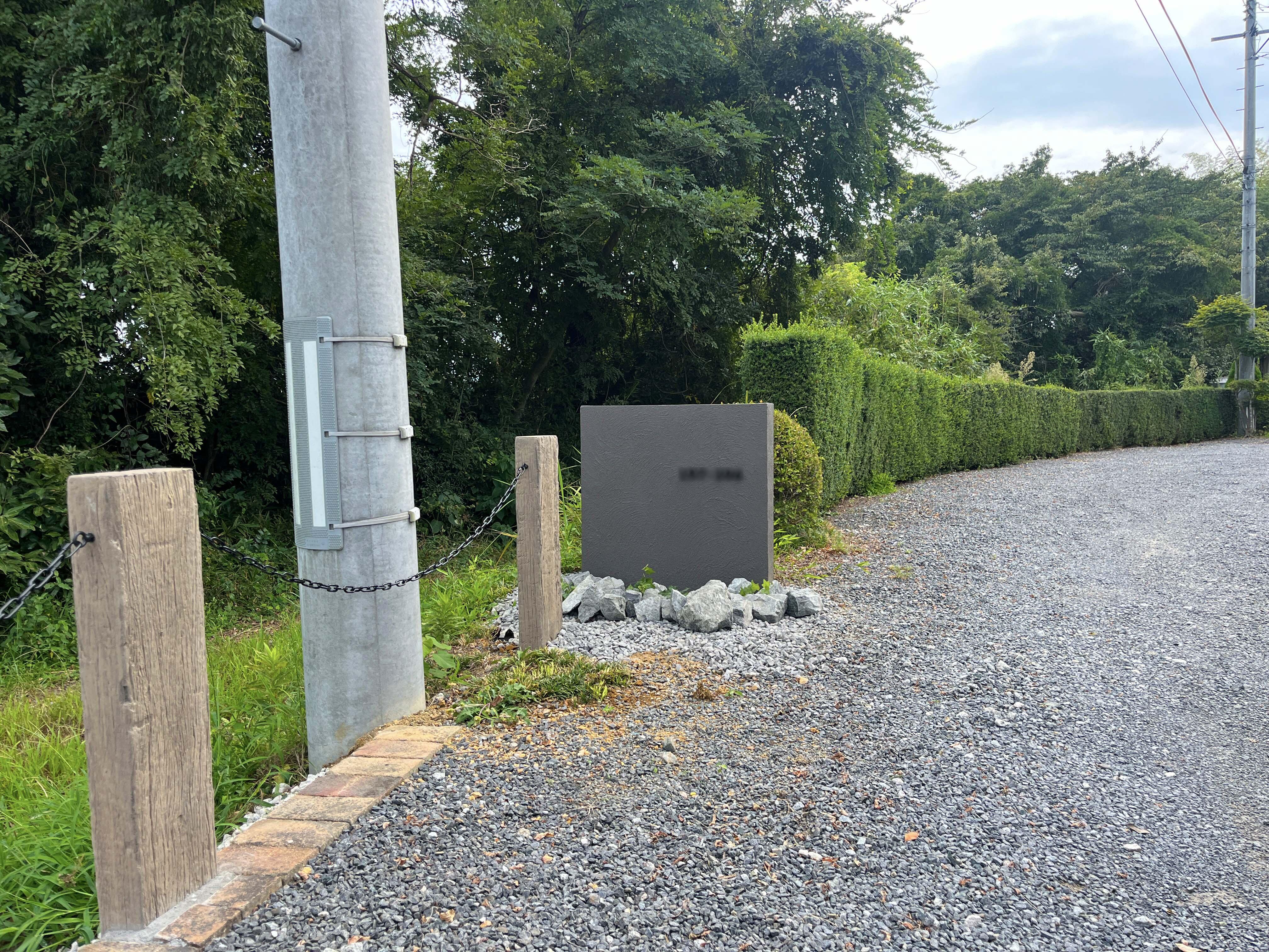 広い敷地の奥に建物がある為、来訪者への配慮として番地サインのついた門壁を新設しました。 古くなった枕木門柱とポストも新しくし、お庭の印象もガラリと変わりました。