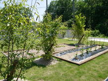壊れかけたフェンスを改修し、 足元にはミニ花壇を配置して彩りをプラス