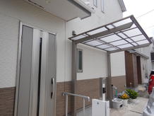 既存のテラスにパーゴラを設置し、非日常を味わえるお庭