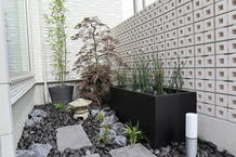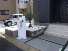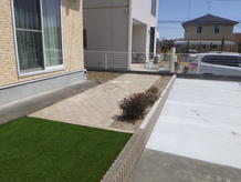 無機質なお庭を芝生で潤いのある雰囲気にチェンジ