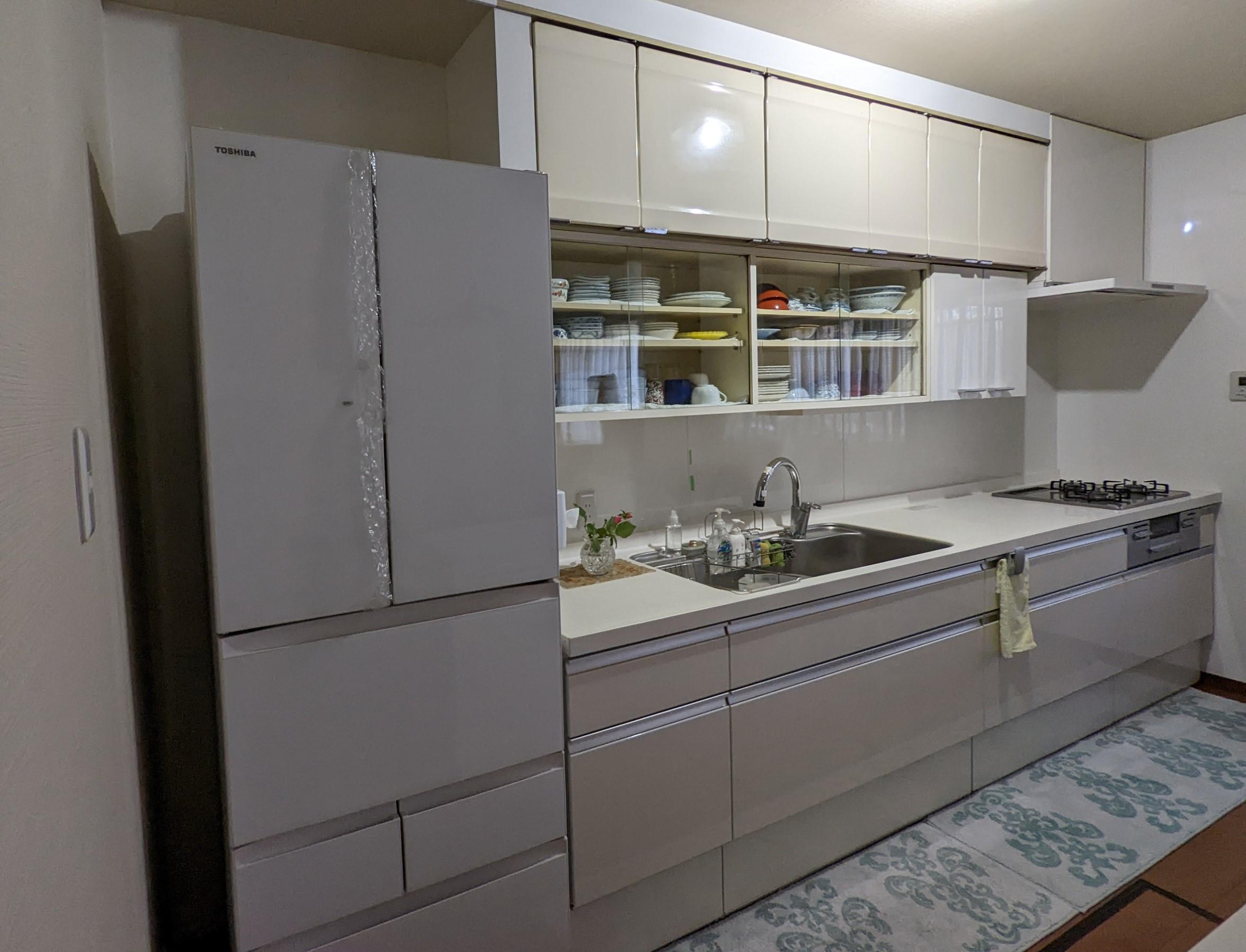 既存の収納棚を生かしながら、リシェルSIをお選びいただきました。キズや汚れに強い人造大理石のトップと広々としたシンクとハンズフリー水栓で以前よりも快適に料理をされています。引出収納もたっぷり入ります。
