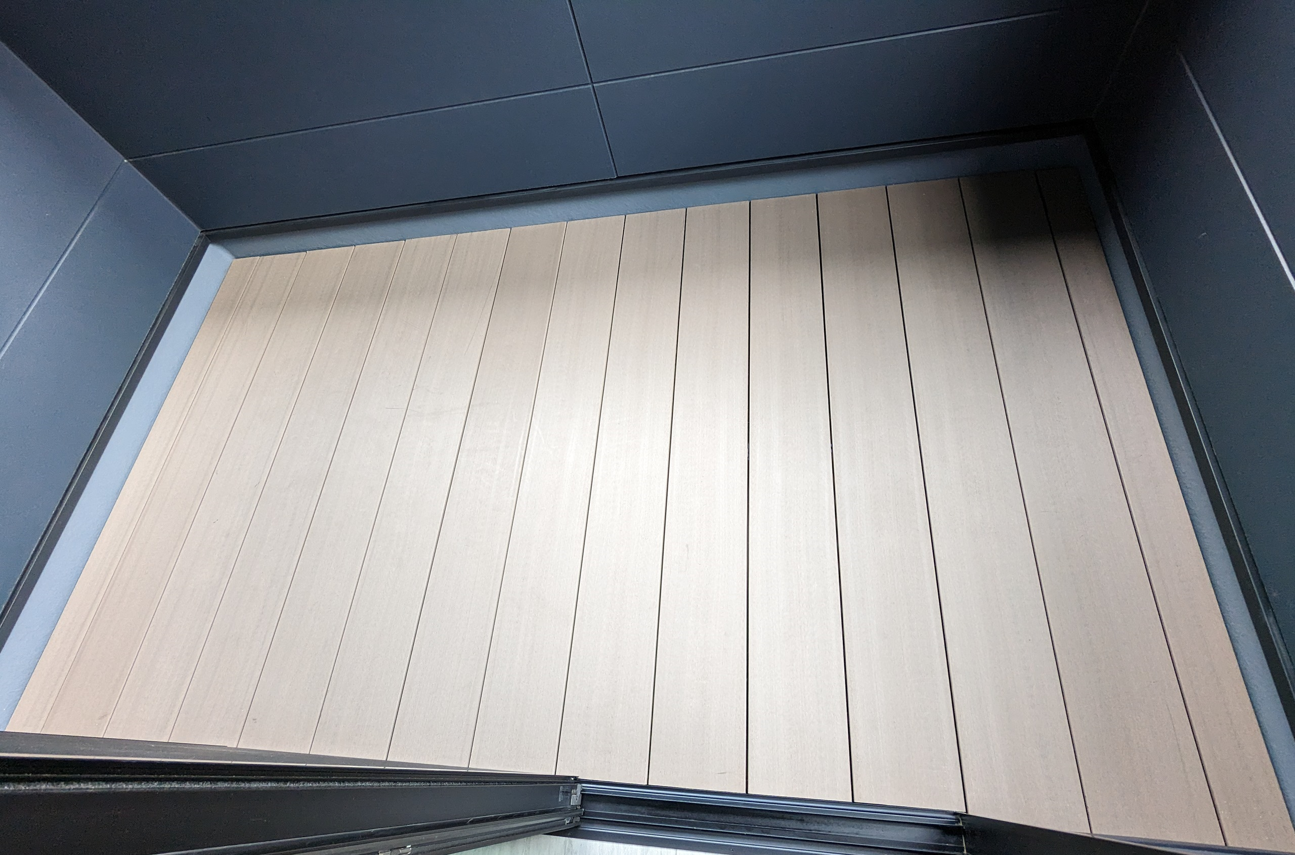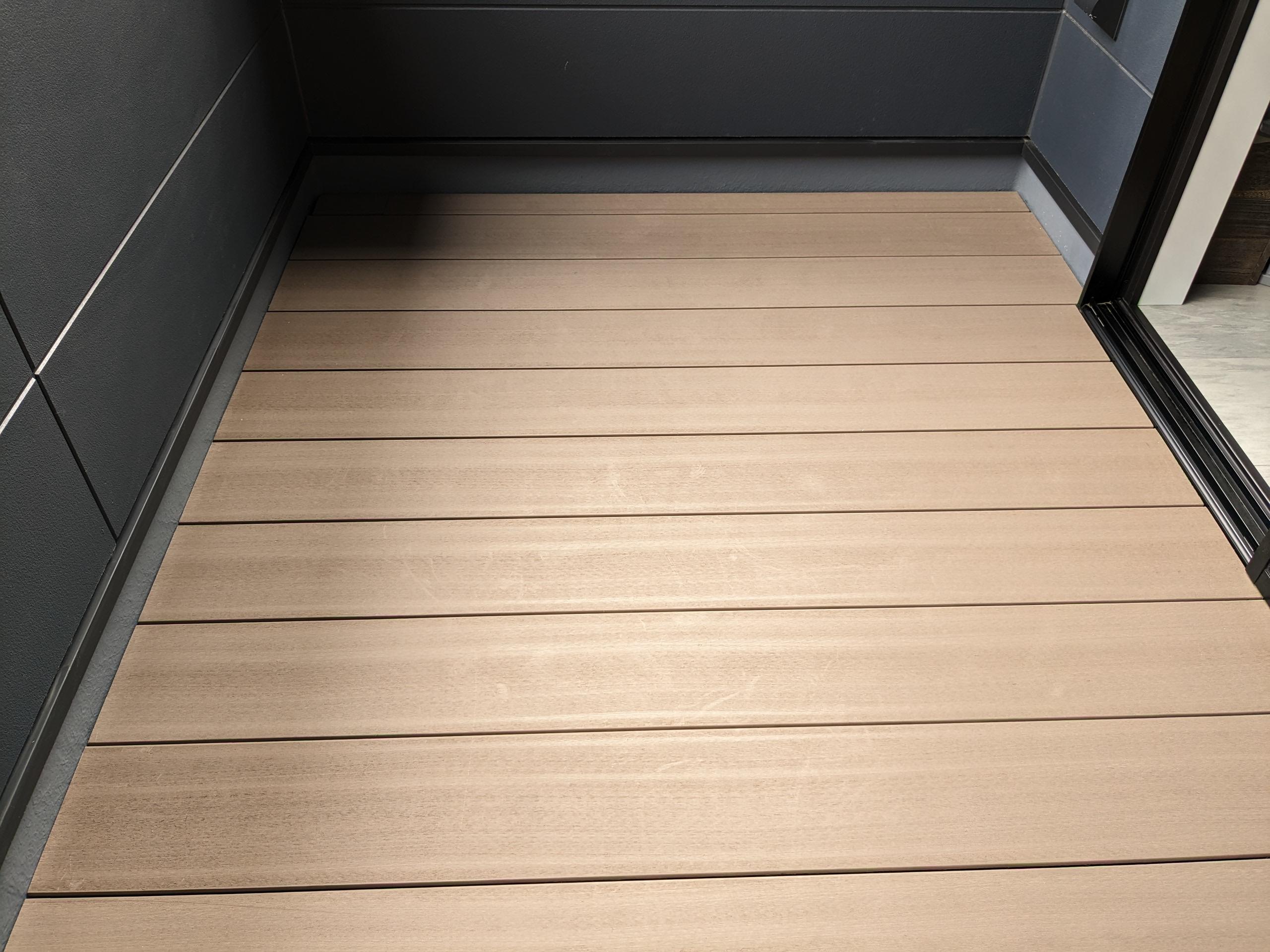 半屋内のバルコニーへLIXIL レストステージ・バルコニー仕様を設置しました。 飼い犬のワンちゃんも楽にバルコニーへ行き来できるようになり、お施主様も満足されています。 高さ調整も簡単に出来、短時間で施工が可能です。