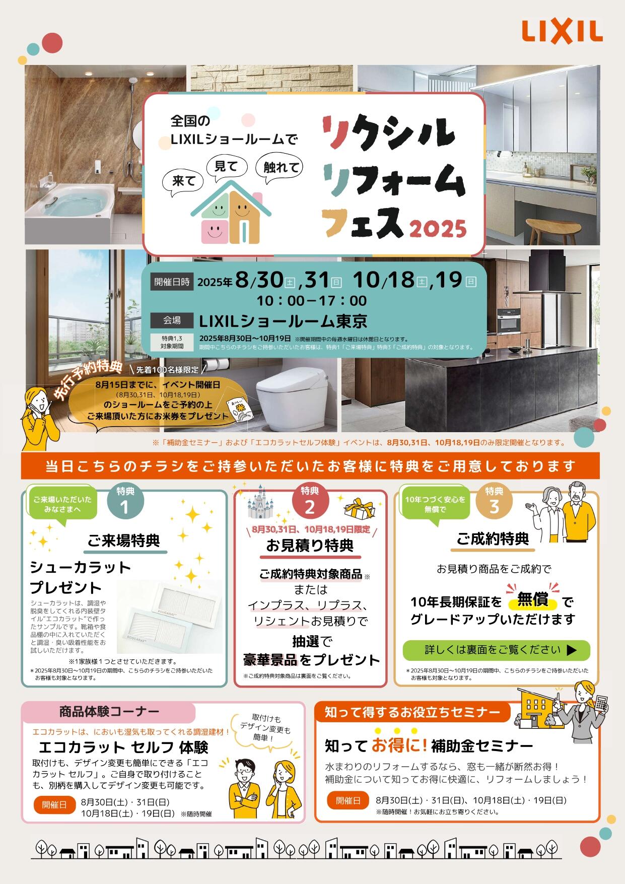またLIXILショールーム東京では10/18(土)・19(日)にも開催いたしますので