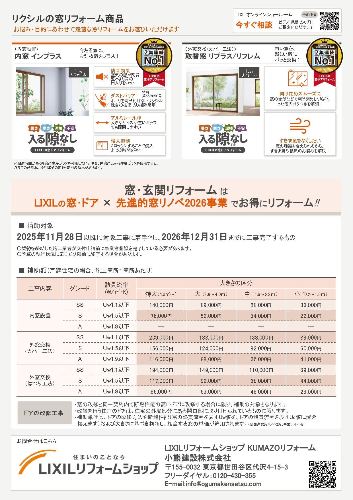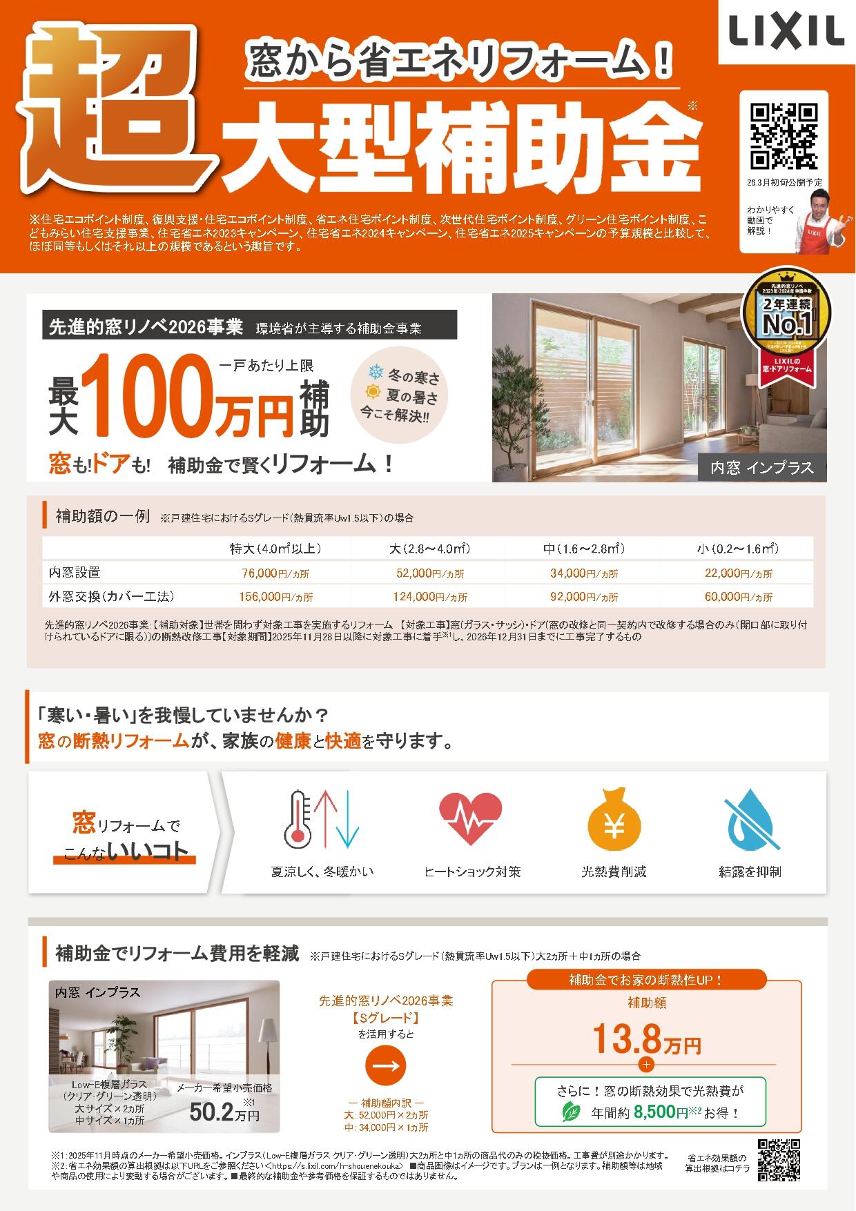 窓の断熱リフォームを検討している方にとってはとても嬉しい制度となっております。