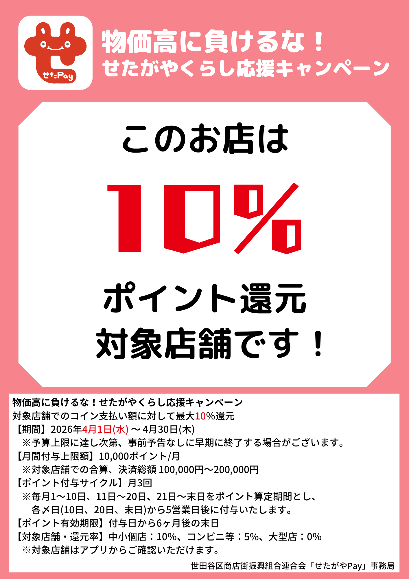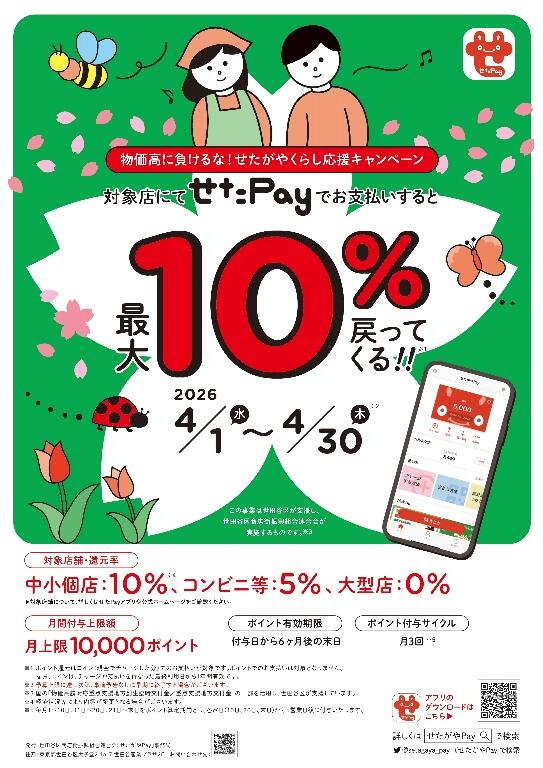 「せたPay」のポイント還元キャンペーンが本日から実施されています!