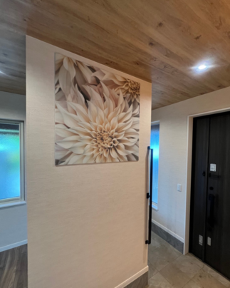カーポート取付により暗くなってしまったというご依頼で玄関窓取付工事を行いました。 先進的窓リノベ事業の補助金を活用してお得にリフォーム。 工期は斫り工法でわずか1日! エントランスにはエコカラットセルフを取付け、快適な玄関に。