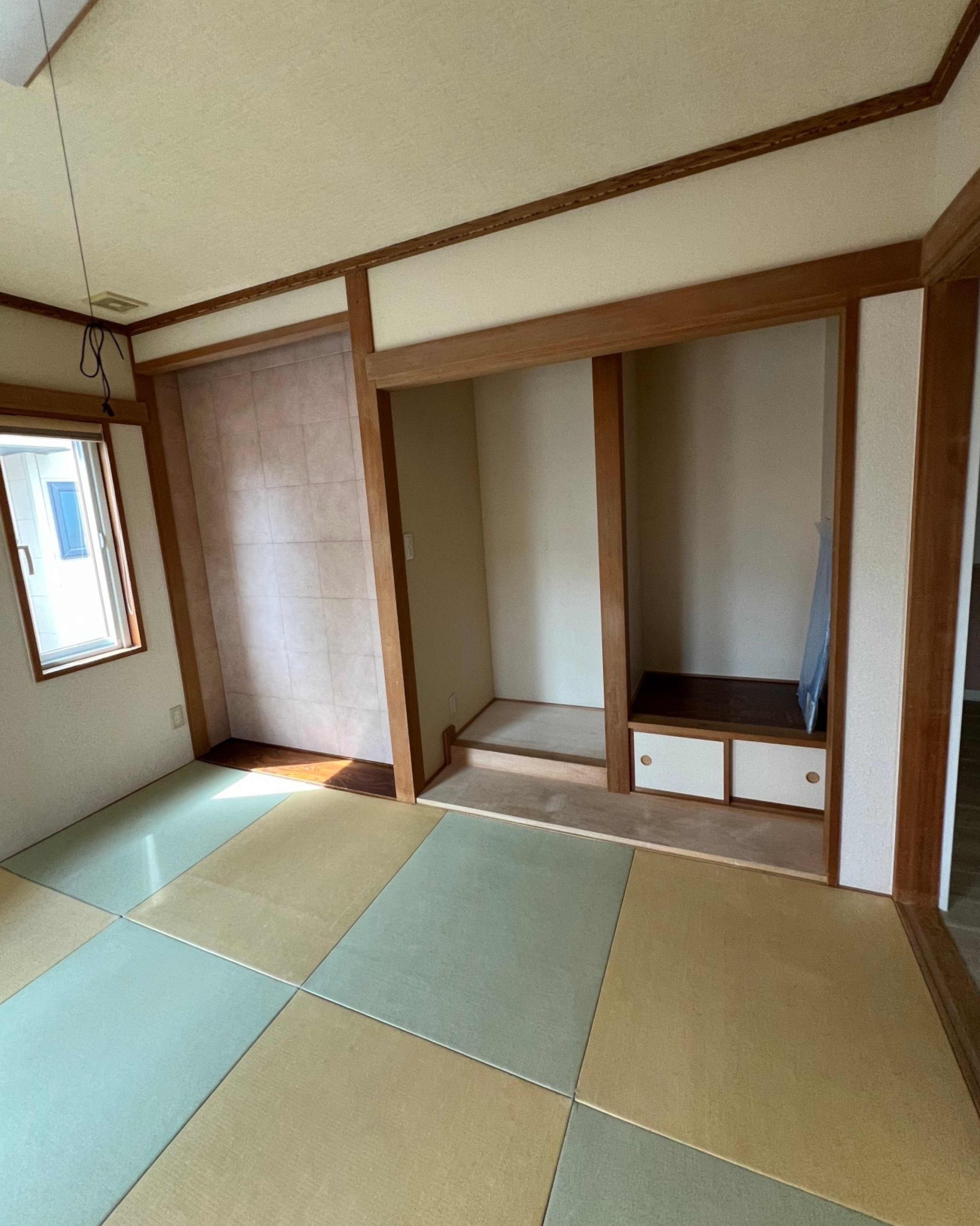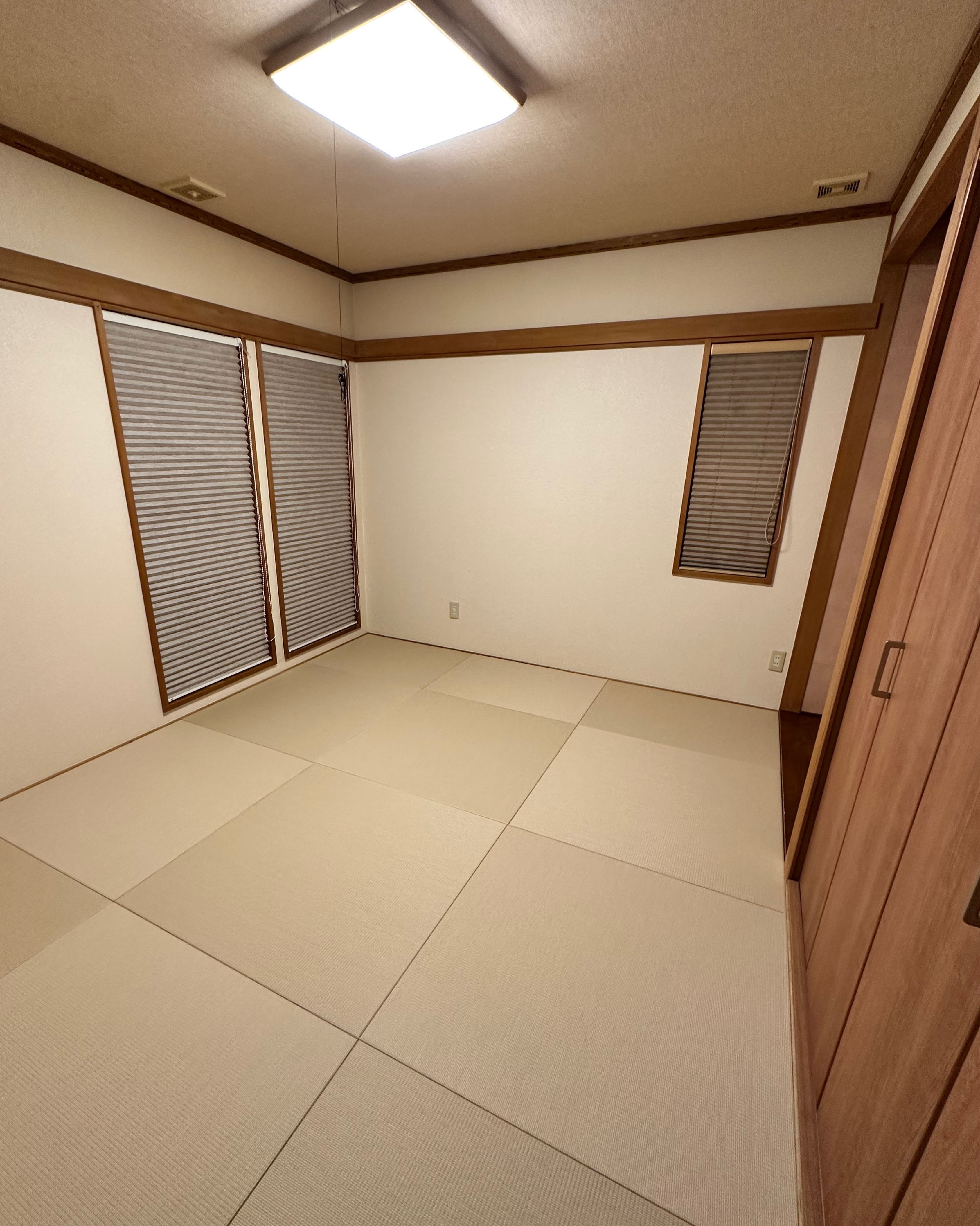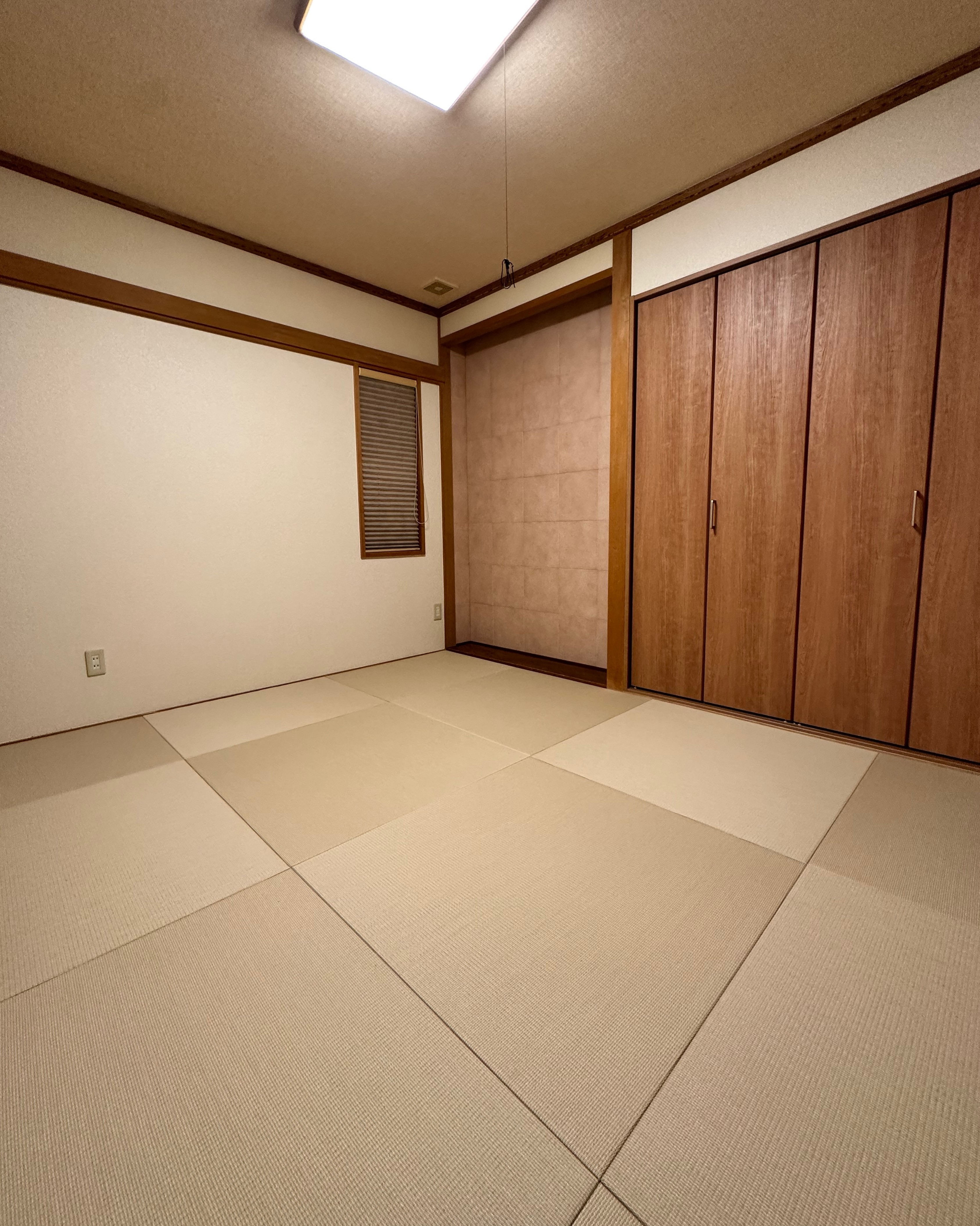 フロア畳と仏壇スペースだった場所をクローゼットに改修。 フロア畳は抗菌仕様なのでカビやダニの発生と増殖を抑えて清潔を保ちます。 落ち着いた雰囲気の和室へと生まれ変わりました。