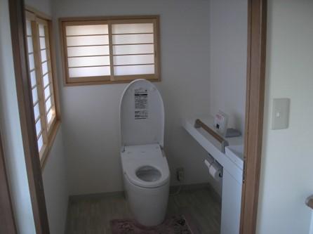 タイル貼りのつめたいイメージのトイレを、お客様のご要望で和のイメージにリフォームしました。サイドの空間も広げ、手すりも設置し、安全にも配慮。全体をホワイトでまとめて、温かみのあるゆったりとした心地よい空間に仕上げました。