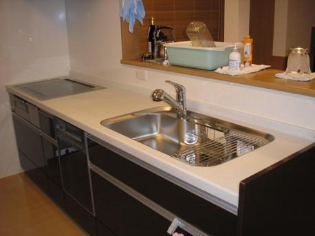 窓際にあったキッチンを対面型にリフォーム。 家族と会話しながらお料理時間を楽しめるようになりました。食洗機も取り付けて家事が楽になり、収納力も上がってキッチンがいつもきれいに!