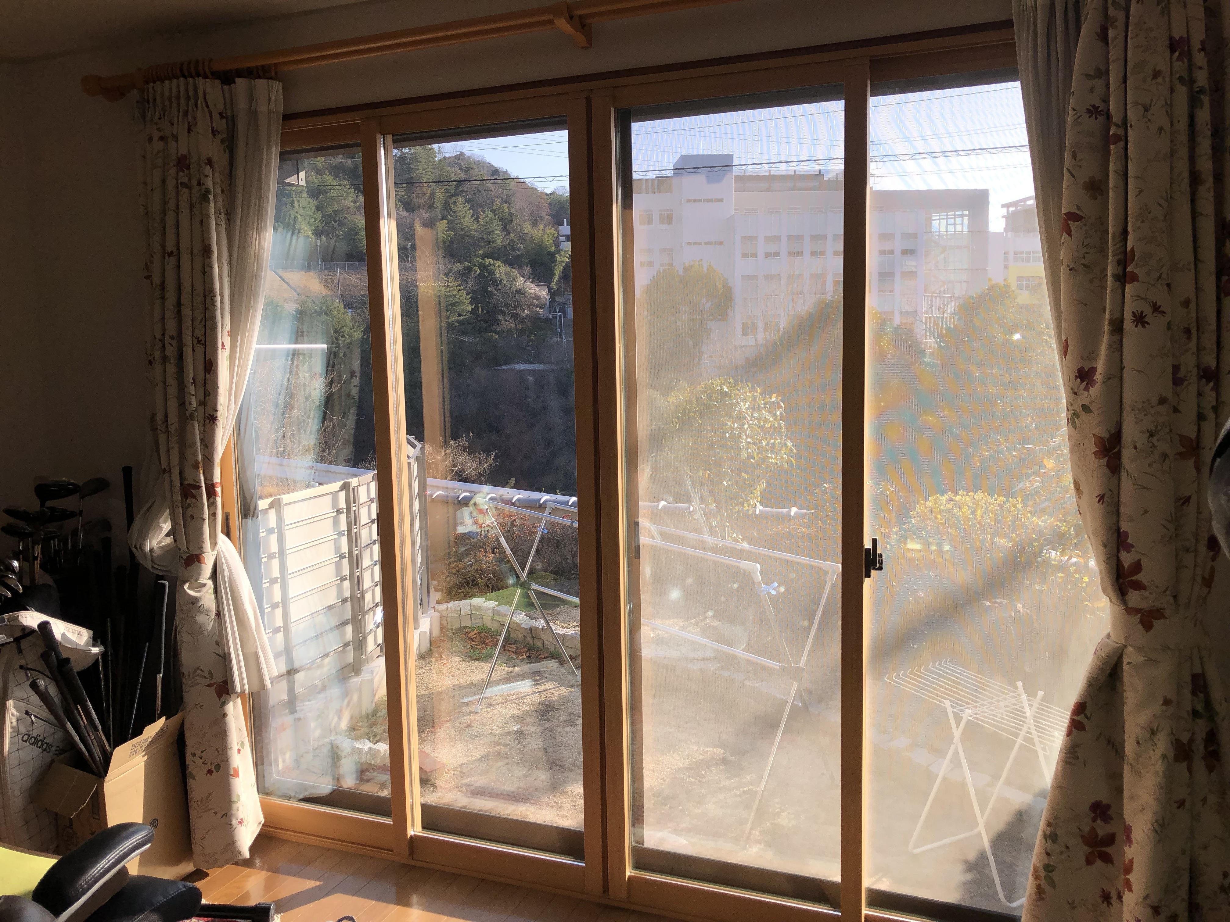 こちらのお客様は、以前にいち早く内窓の設置を(一部)していらっしゃった方です。このたび、【窓から省エネ!今なら国の補助金で最大200万円!】のチラシを見てくださり、補助金が出るこのタイミングで是非ほかの窓にも内窓を、と工事をご依頼いただきました。内窓の効果をすでに暮らしのなかで感じていらっしゃったようで、今回テラス窓(掃き出し窓)を3箇所と中連窓を1箇所の計4箇所をまとめてリフォーム。リビングと和室の広縁の大きな窓に内窓を設置されて、これから迎える夏も快適に過ごしていただけそうです。複数箇所の施工もたったの1日で完成できるお手軽さもあり、オススメのリフォームです。