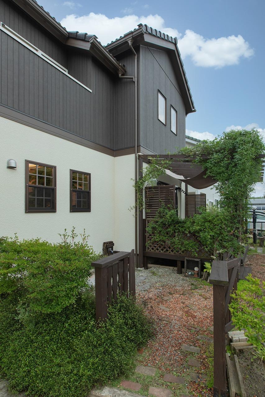 素敵なお庭のある暮らしを愉しまれているS様。以前、パーゴラを造作させて頂いたご縁があり、今回外壁のヒビや劣化が気になってきたことが、リフォームのご相談を頂いたきっかけでした。事前の外部点検から、壁材を張り替える外壁工事、追加で屋根の塗装工事を行うことに。こうして、大切なお庭づくりの歴史はそのままに、屋根外壁が新しく、かつお好みのデザインに一新しました。パーゴラなどの外構やお庭の植栽はこれまで育ててきた姿をそのままに、新しいS様邸の顔として外観が美しく生まれ変わりました。