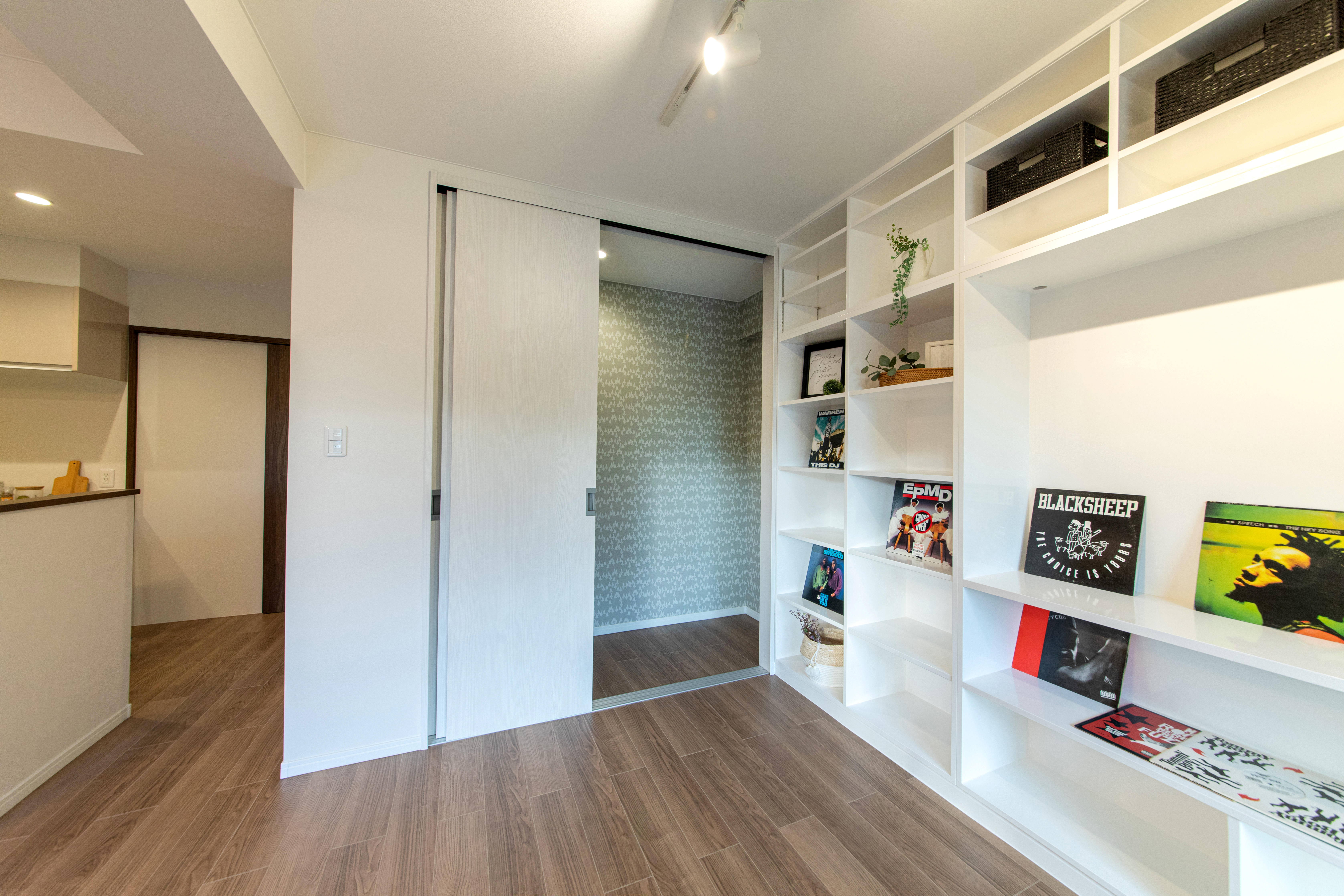 基本的に私たちの希望していたものを超えるものができたというのが感想です。また、当初考えていたよりも広く感じています。リビングの入口ドアを引き戸として頂いたことで、引き戸を開けた場合に、玄関からリビングが一つながりとなる感覚でかなりの解放感を感じるからでしょう。この引き戸は打ち合わせ時に設計担当の方からご提案いただきました。 また、今回3LDKのうち2部屋は工事していないのですが、従来の古い部分と今回の工事個所も違和感なく調和していることに正直驚いています。これは壁紙や床の色を丁寧に吟味できたことによると感じています。インテリアコーディネーターの方にアドバイスをいただけたお陰です。 趣味のレコードルームが充実したので、次の段階として、オーディオ機器をグレードアップしていい音でレコード聞ける環境を整えようと夢は広がっています。