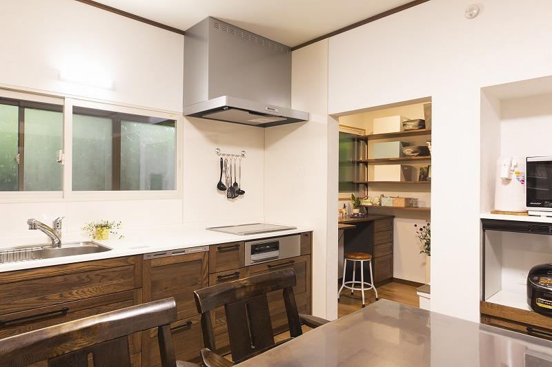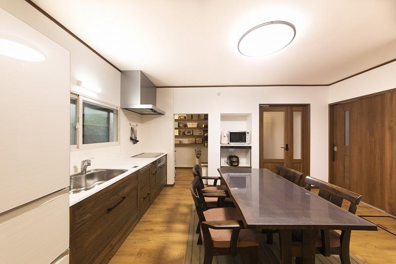 築部分に加え、そこから続くキッチン&パントリー、玄関周りの設備・内装の一新と、内窓、床下断熱工事、床暖房による断熱性能の向上も追求した。